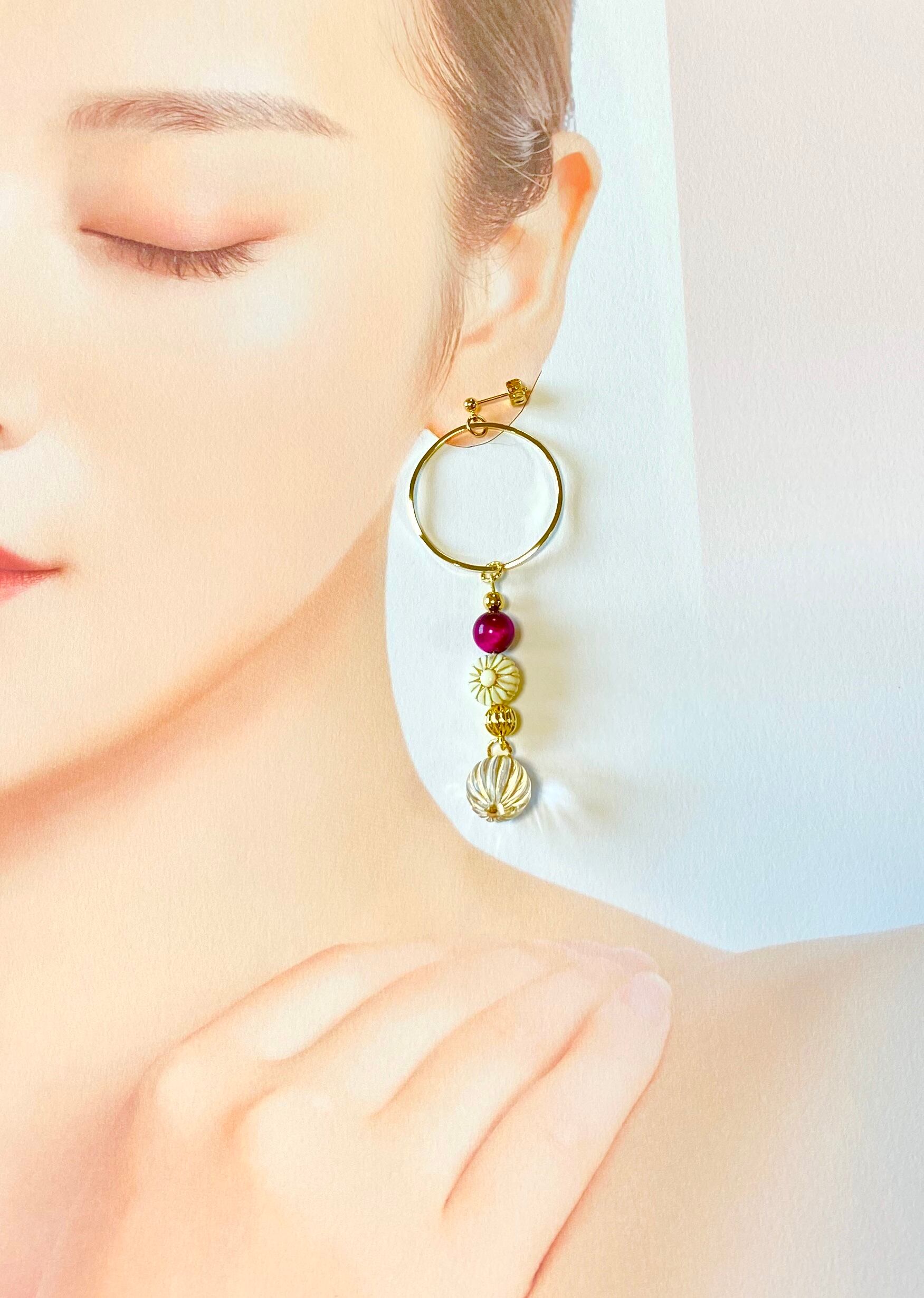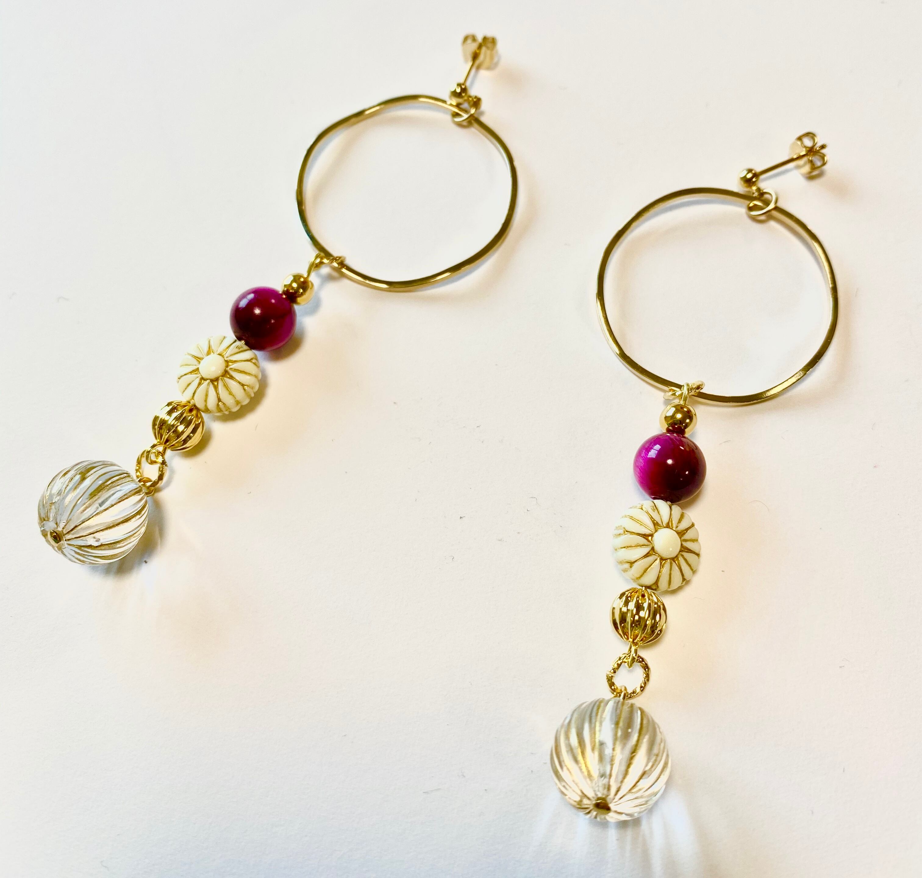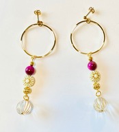 【ピアスorイヤリング】ゴールド✖️ピンク かわいい大ぶりピアス