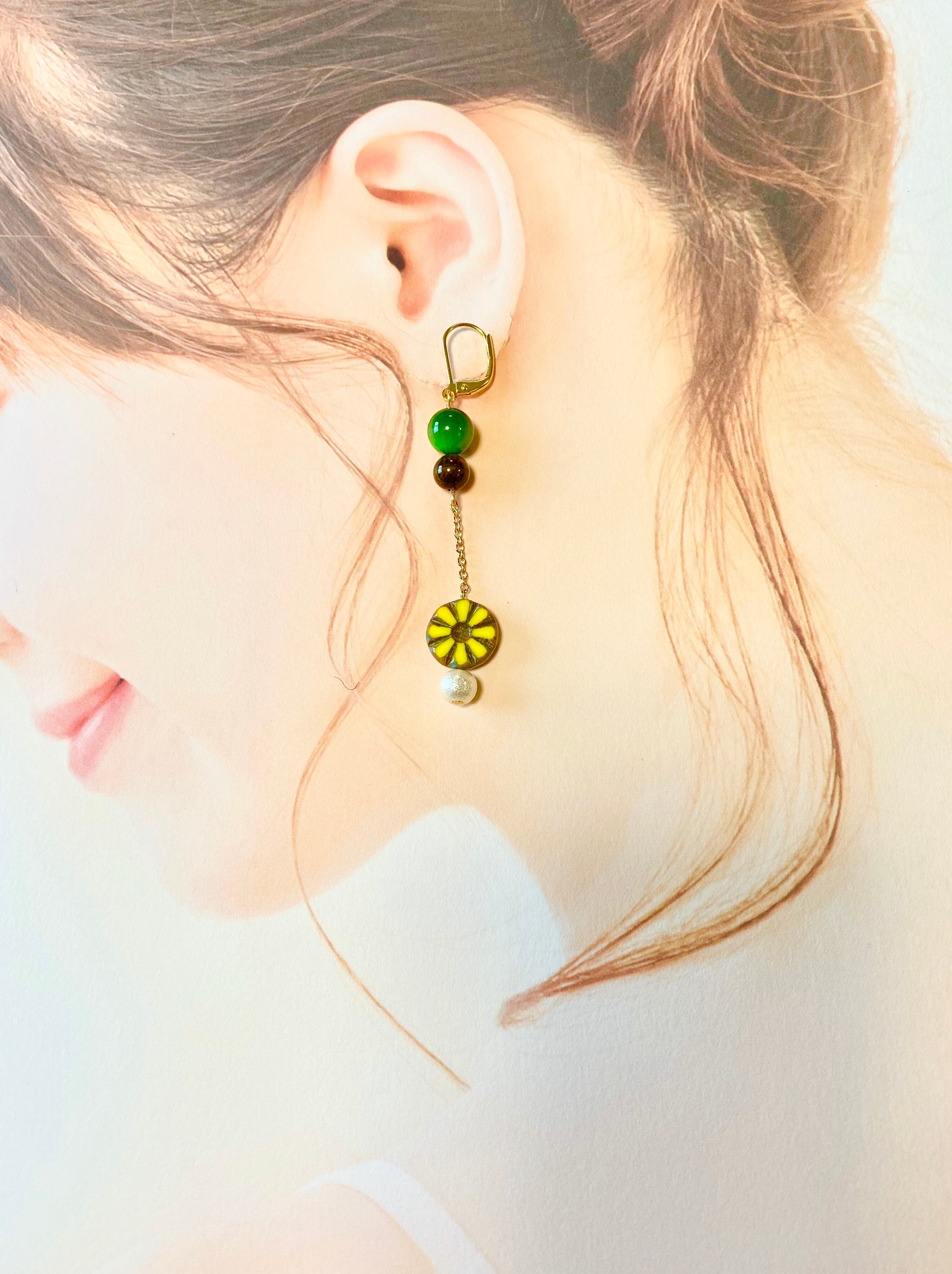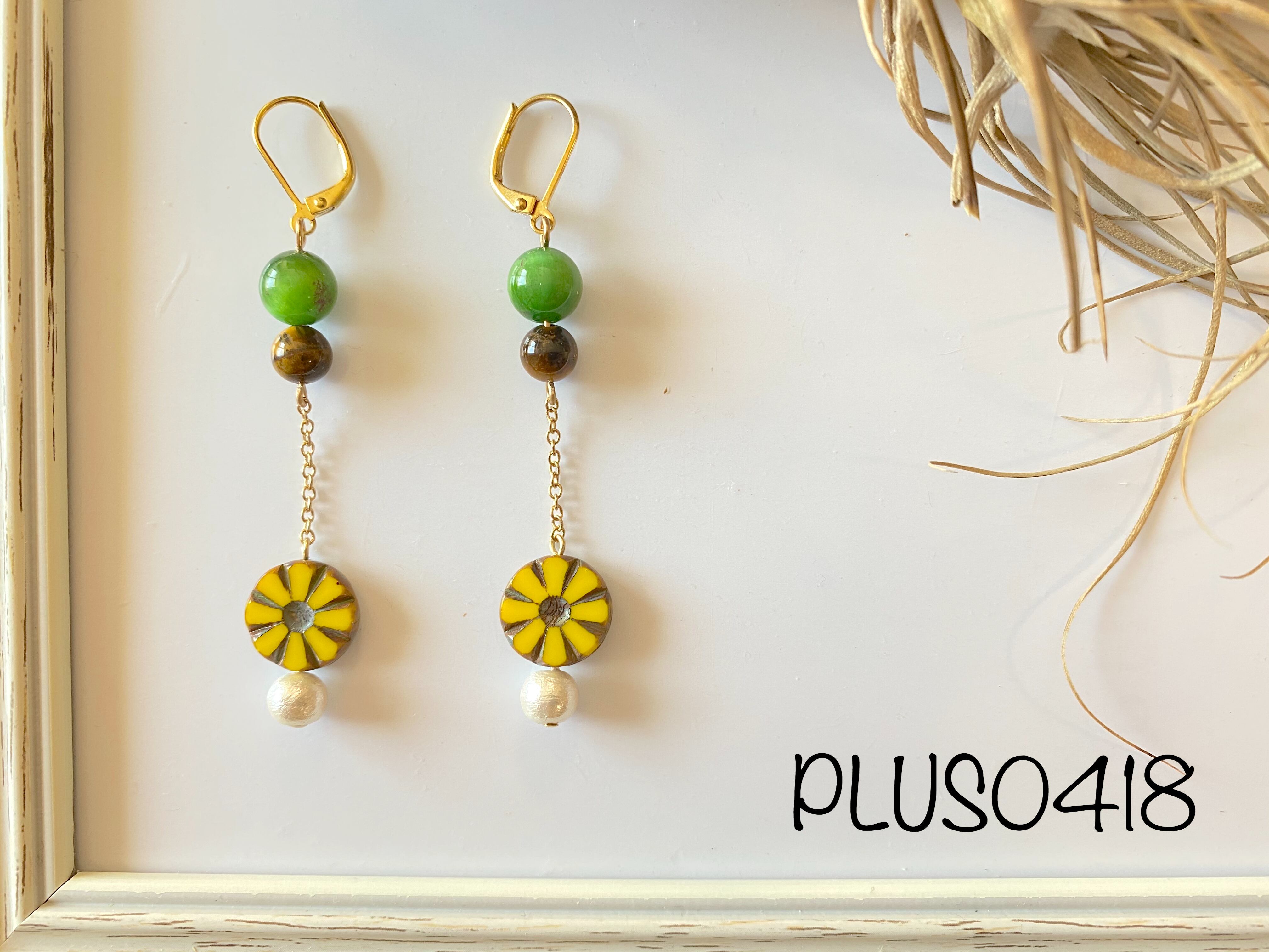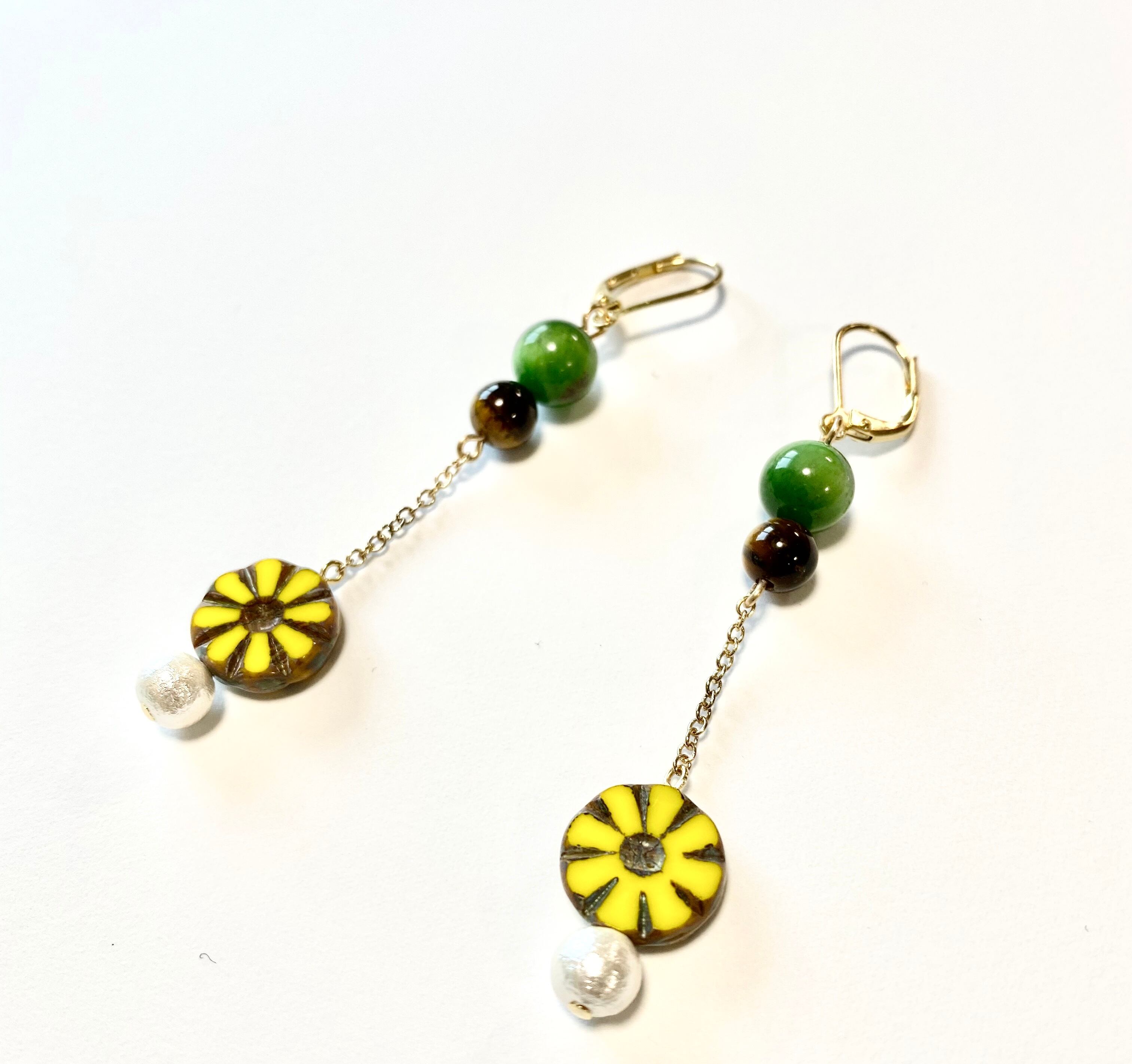 ひまわりをモチーフにした揺れるピアス☆