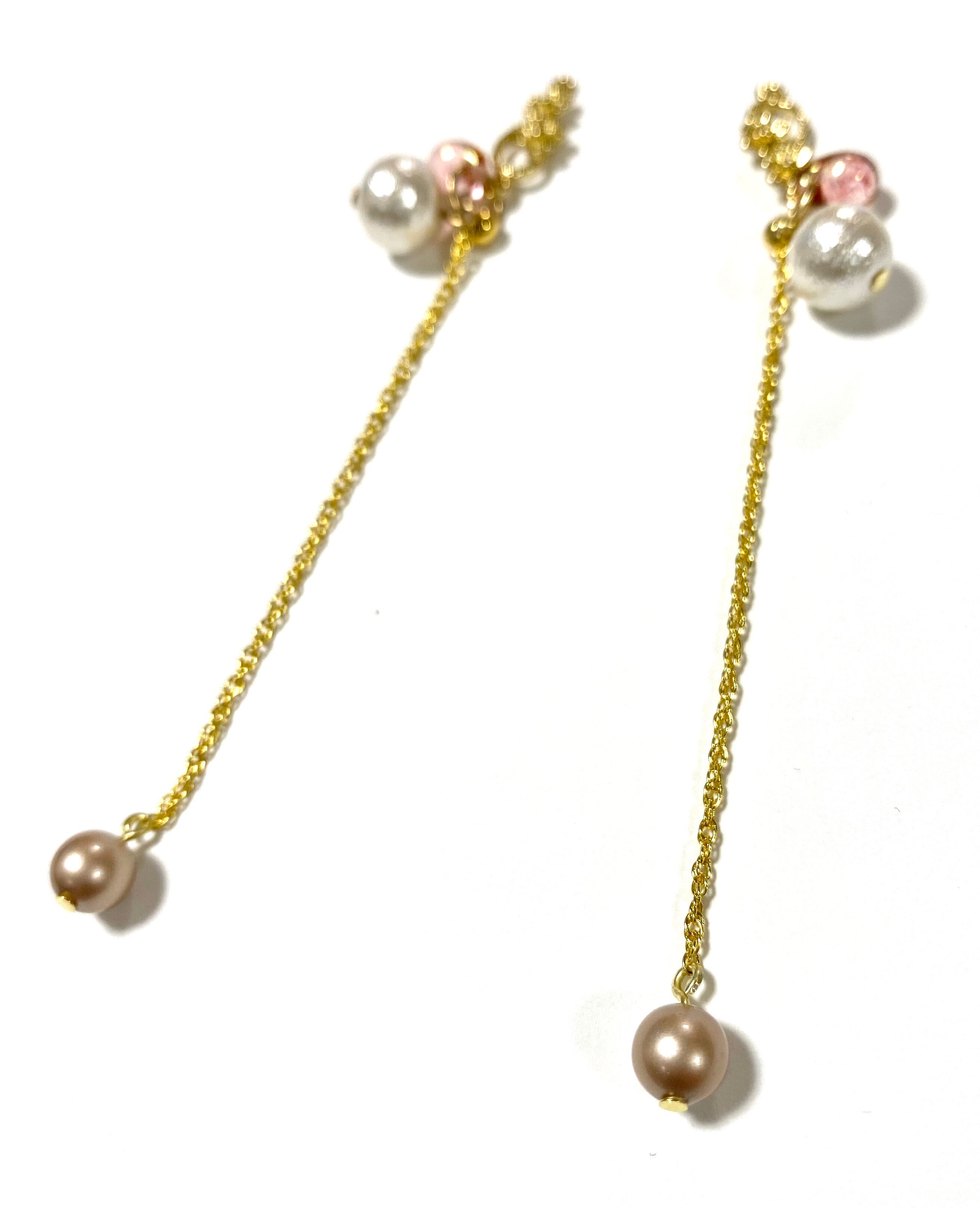 【ピアスorイヤリング】お花とパールのゆらゆらピアス