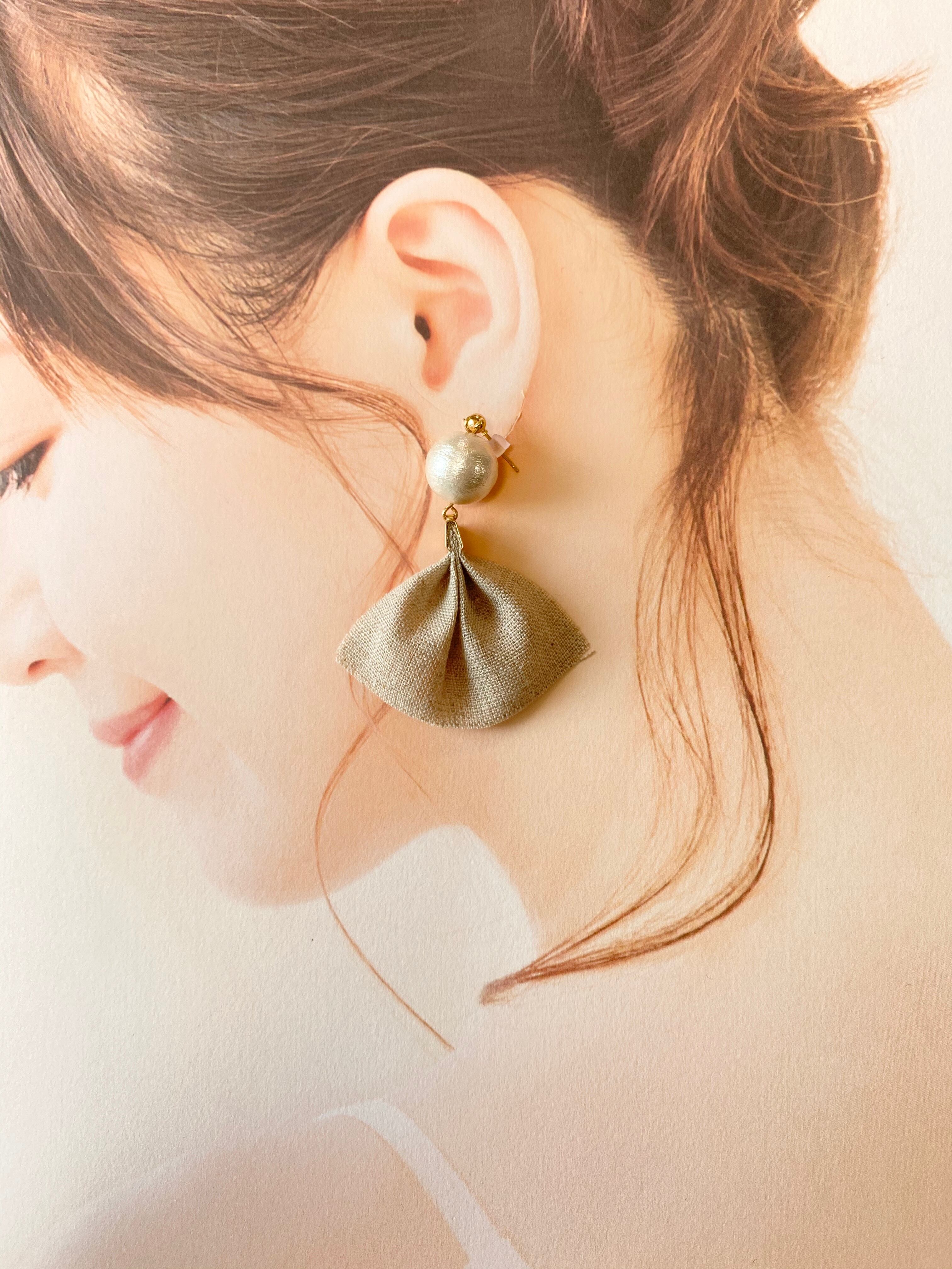 【ピアスorイヤリング】コットンパール✖️ベージュリネンタッセル