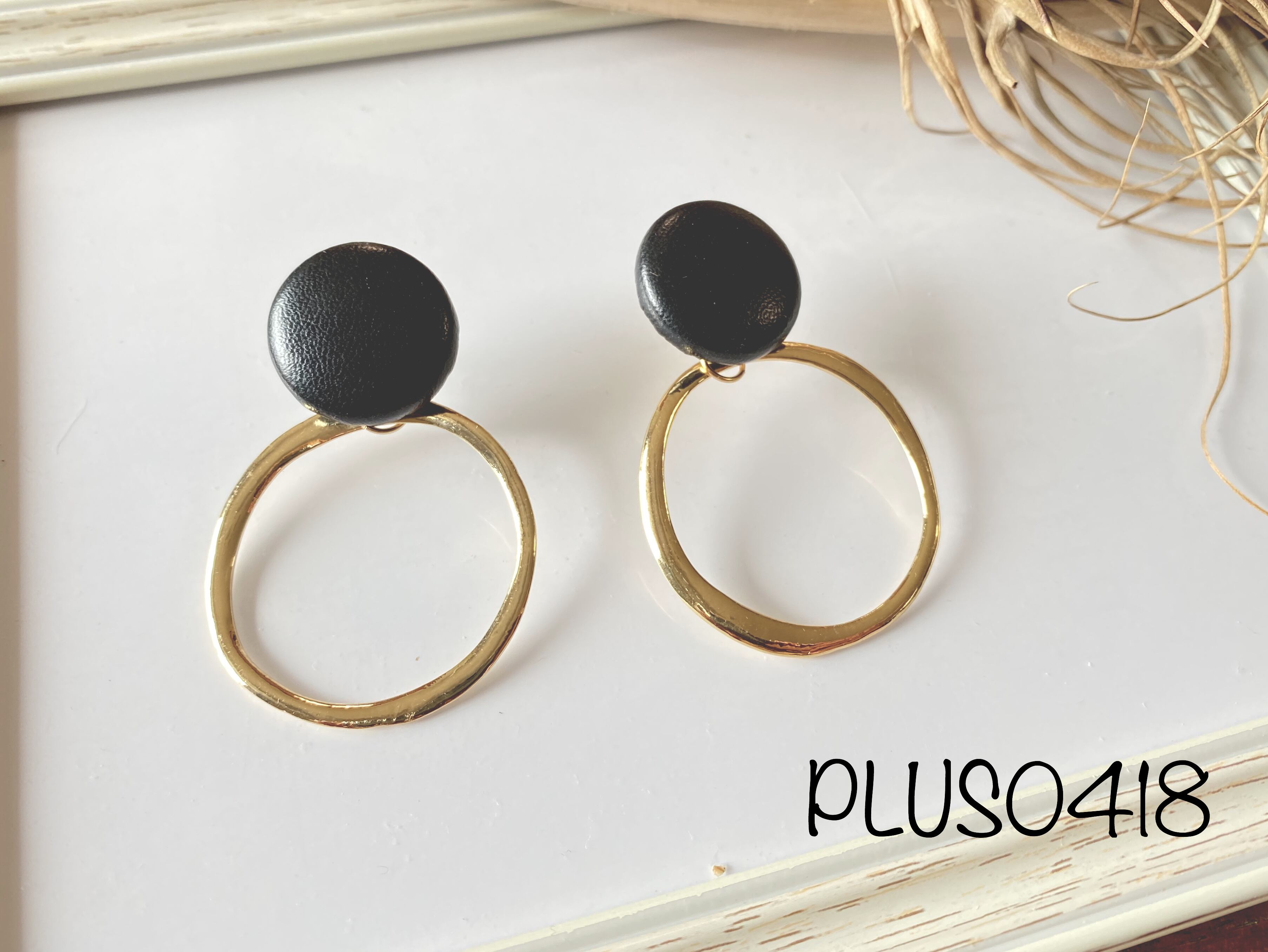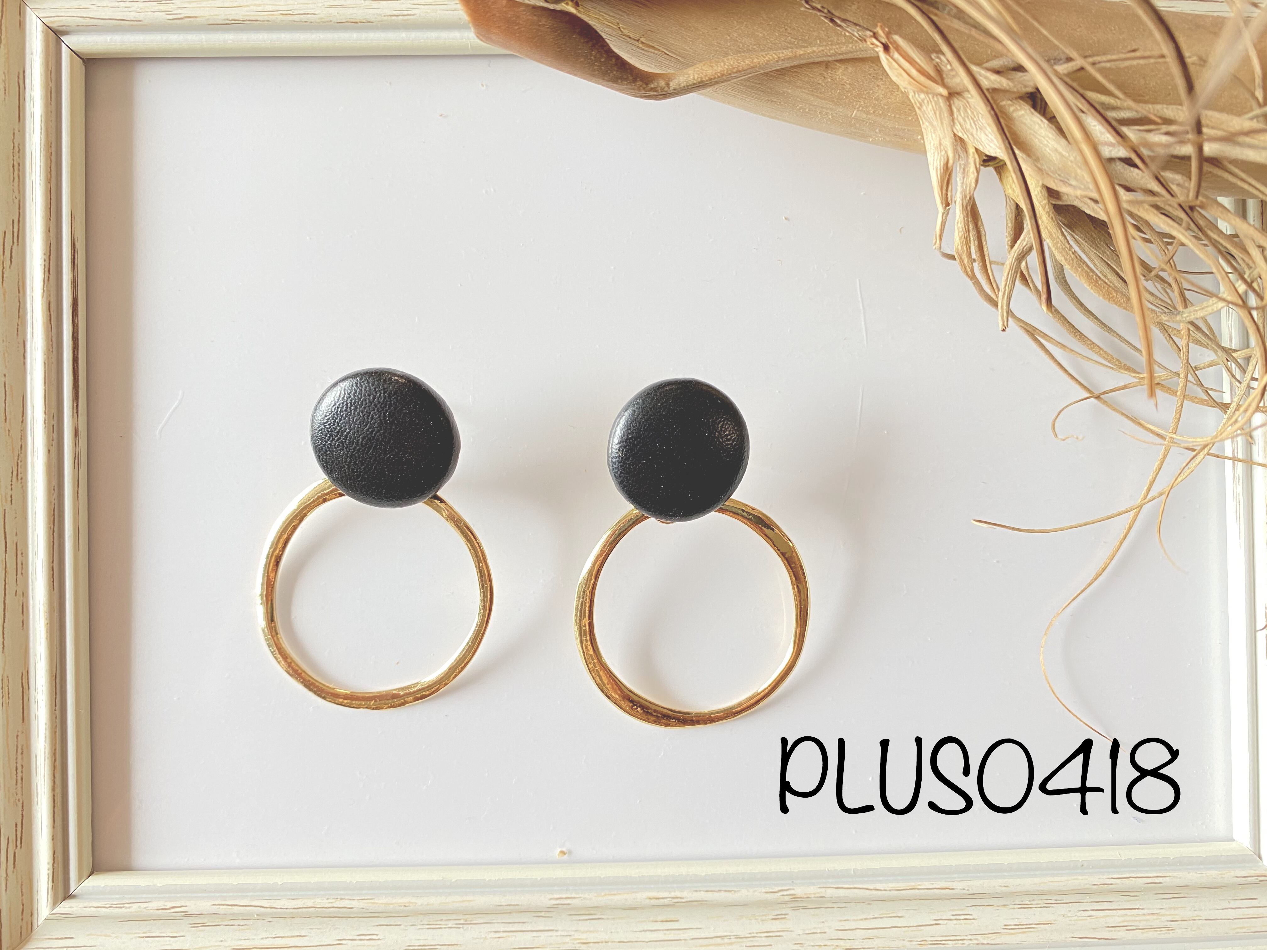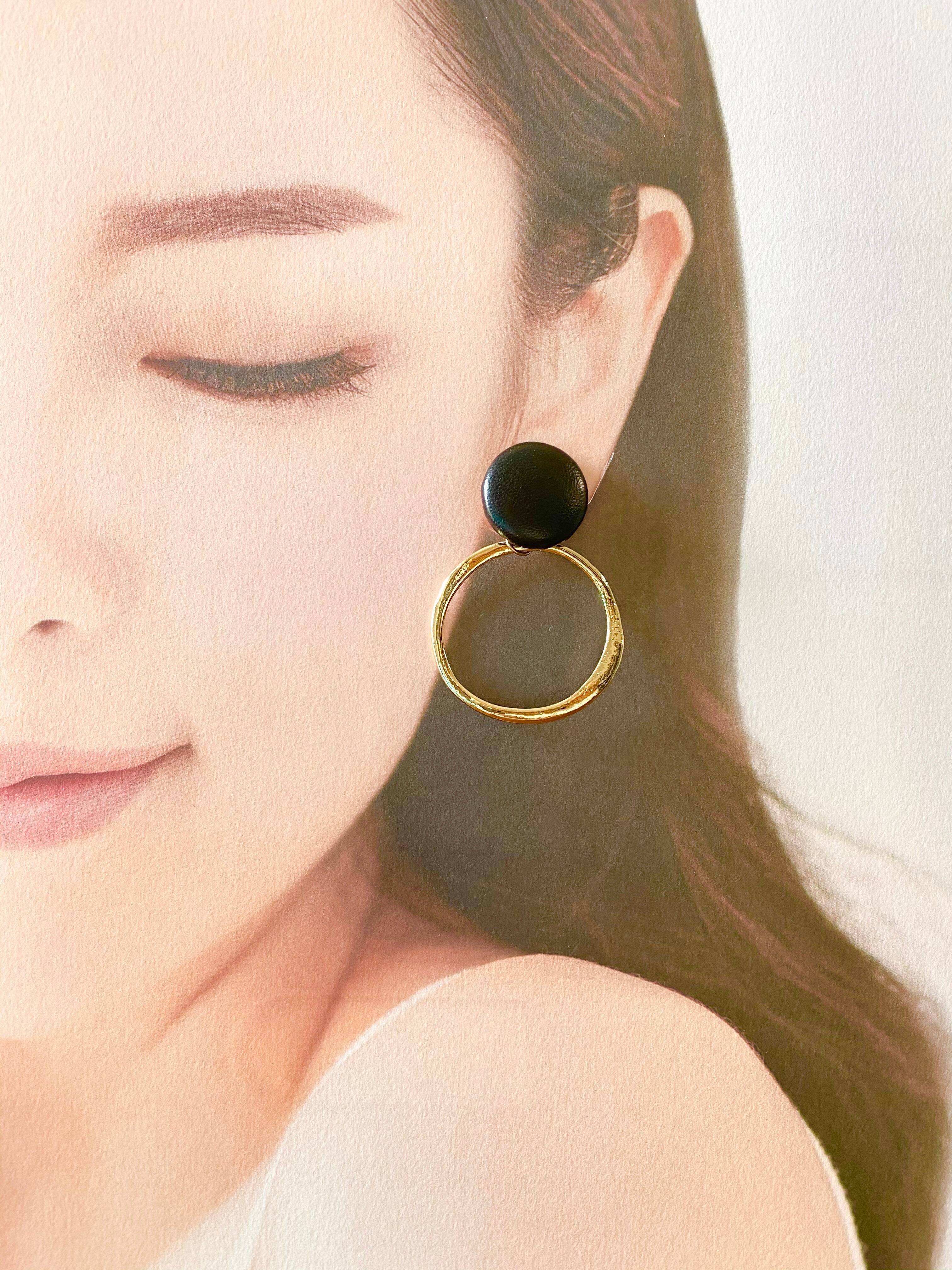 【ピアスorイヤリング】ブラックレザーカボション✖️ゴールドリング