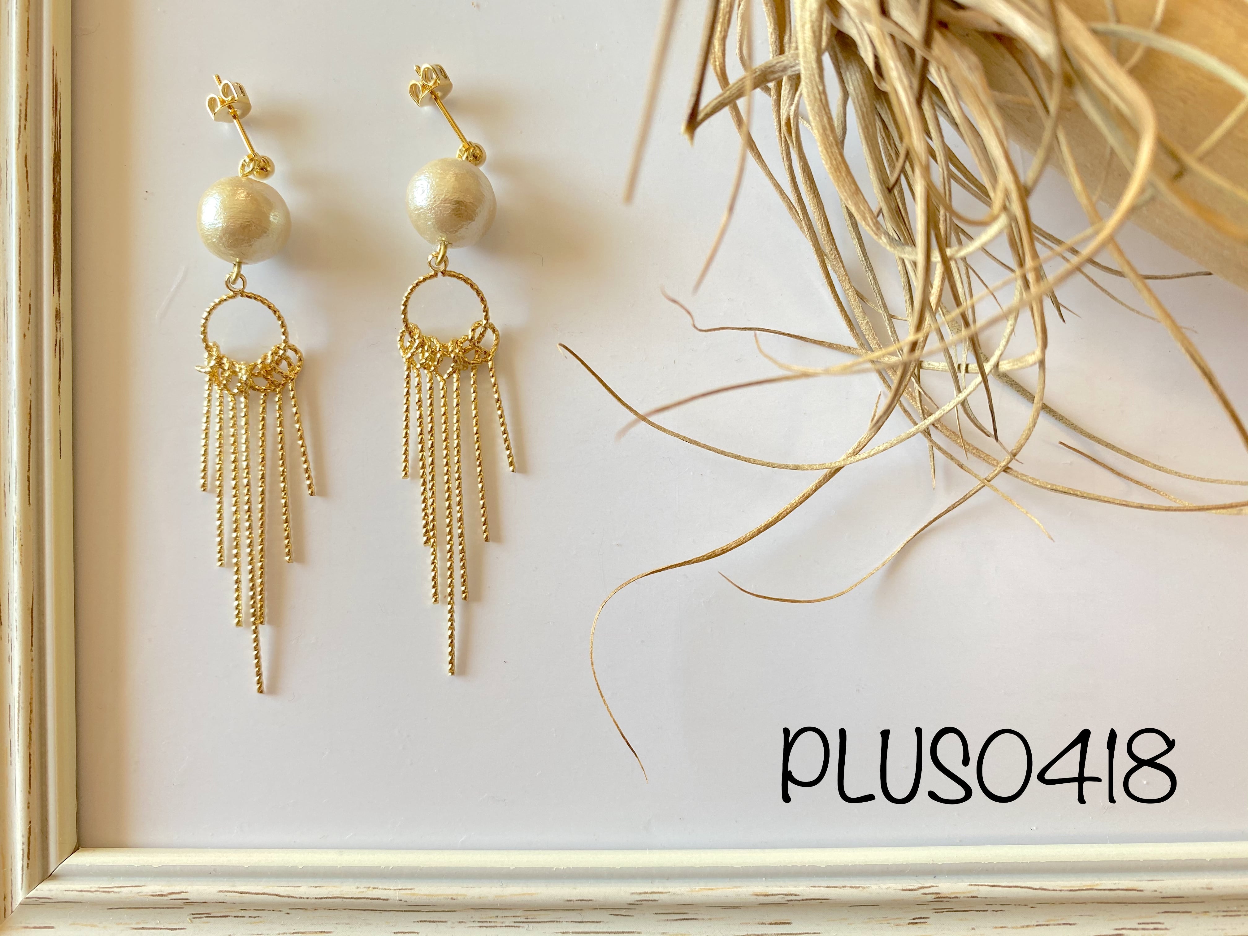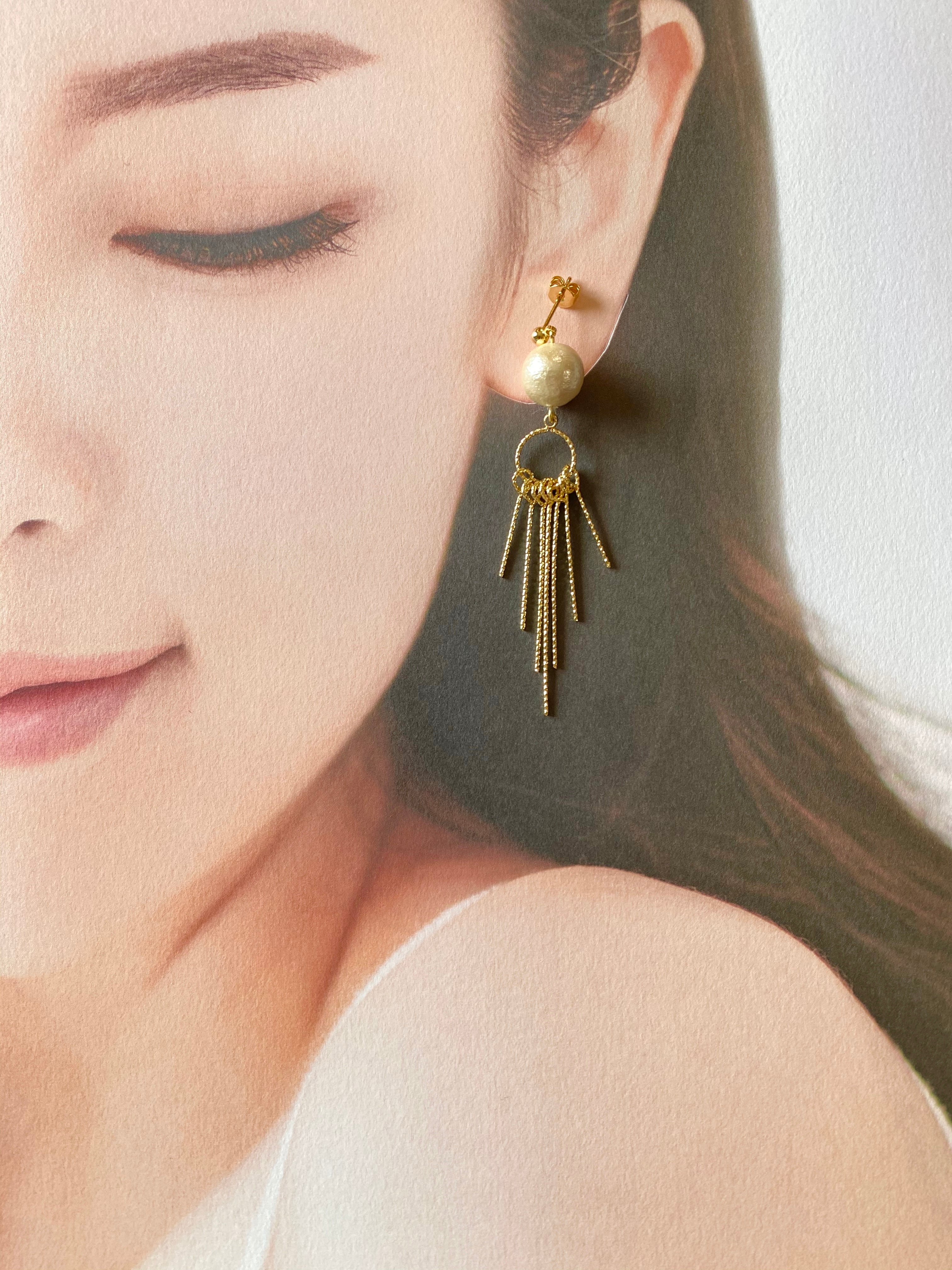 【ピアスorイヤリング】コットンパール✖️ゴールドタッセル