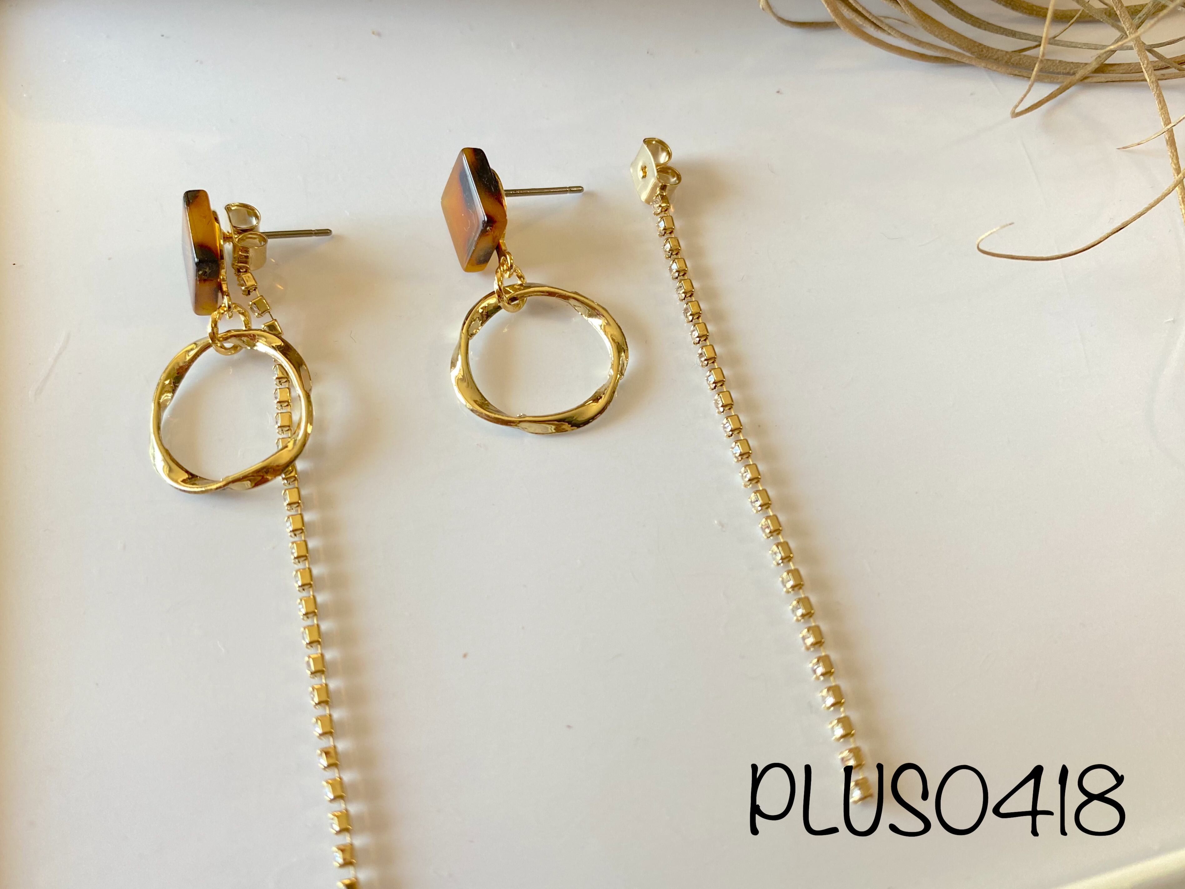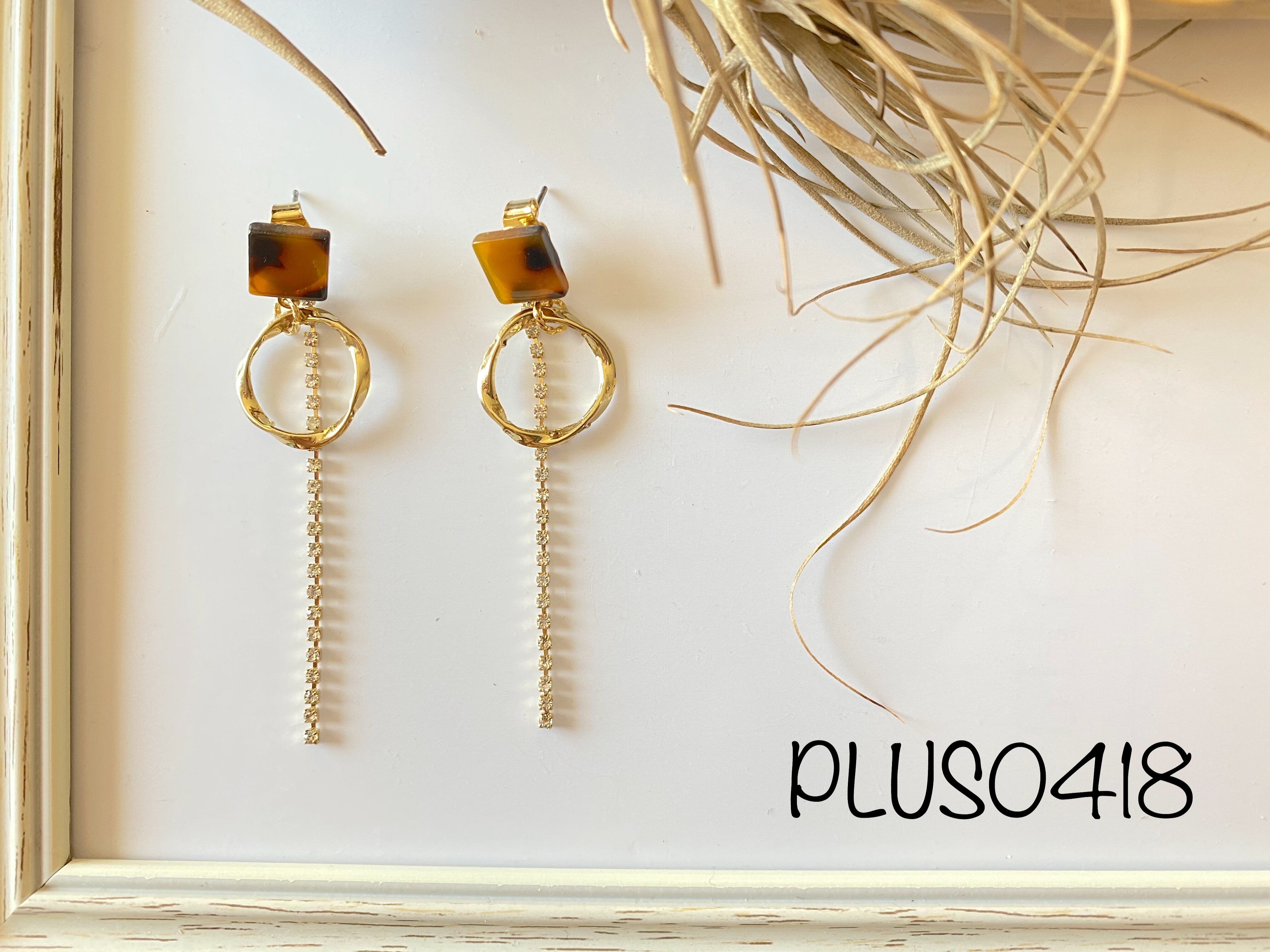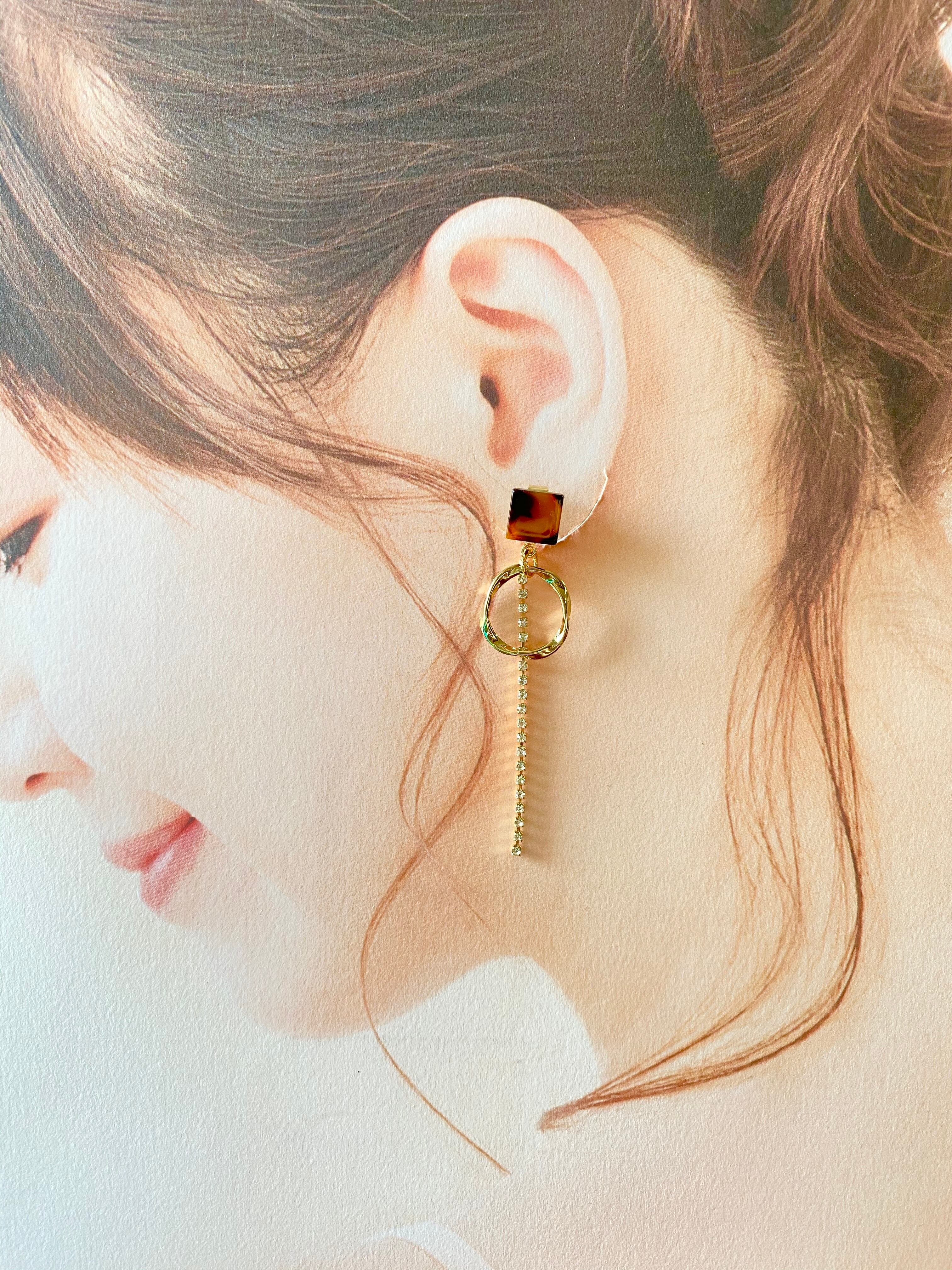 【ピアスorイヤリング】】2wayべっ甲✖️ゴールドリング✖️ストーンチェーン