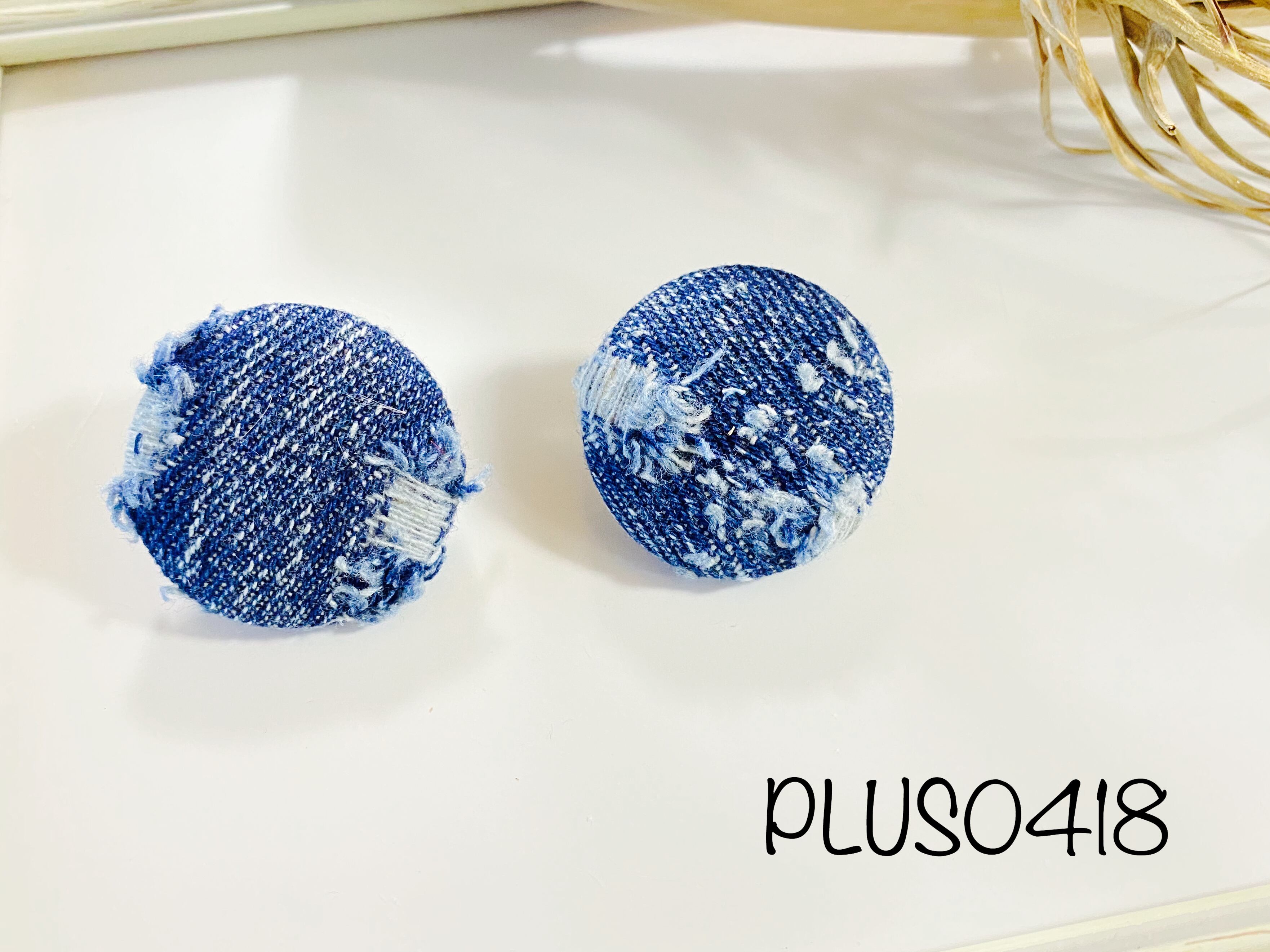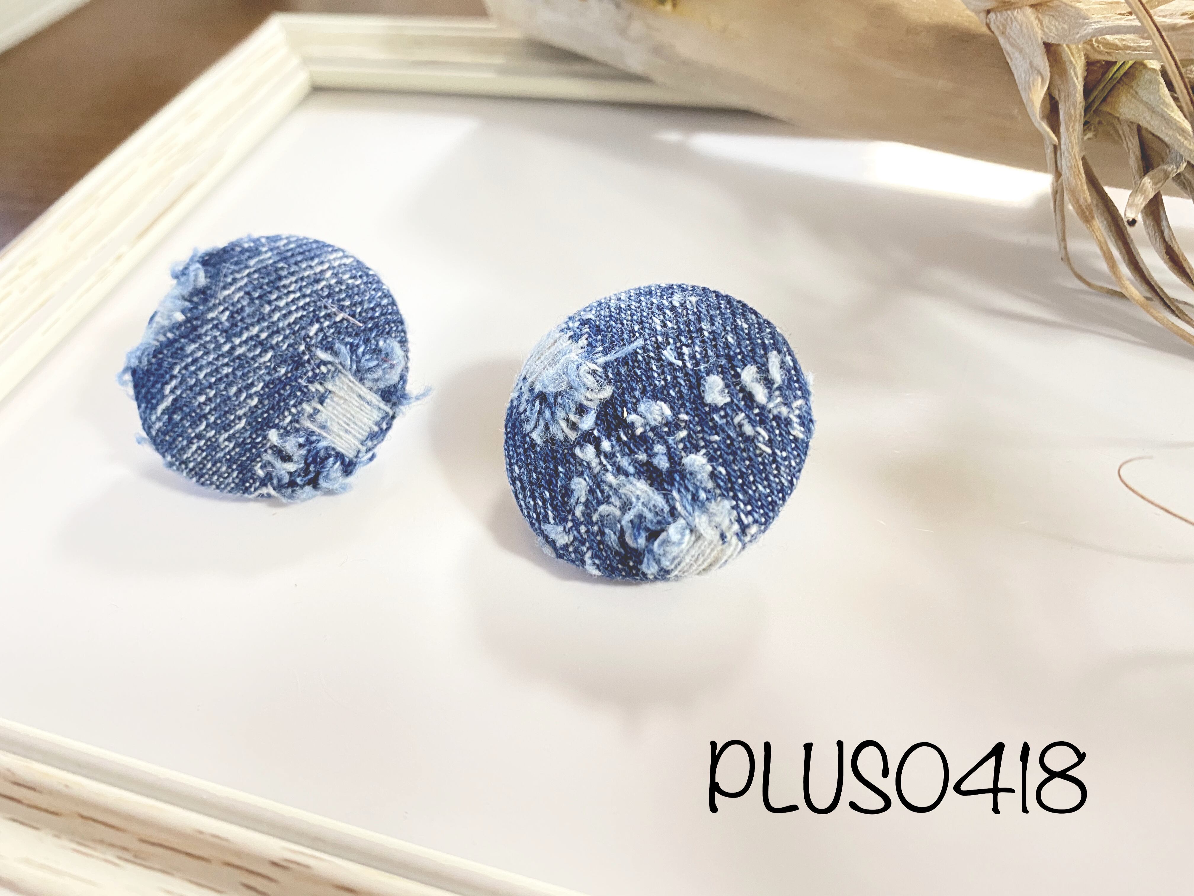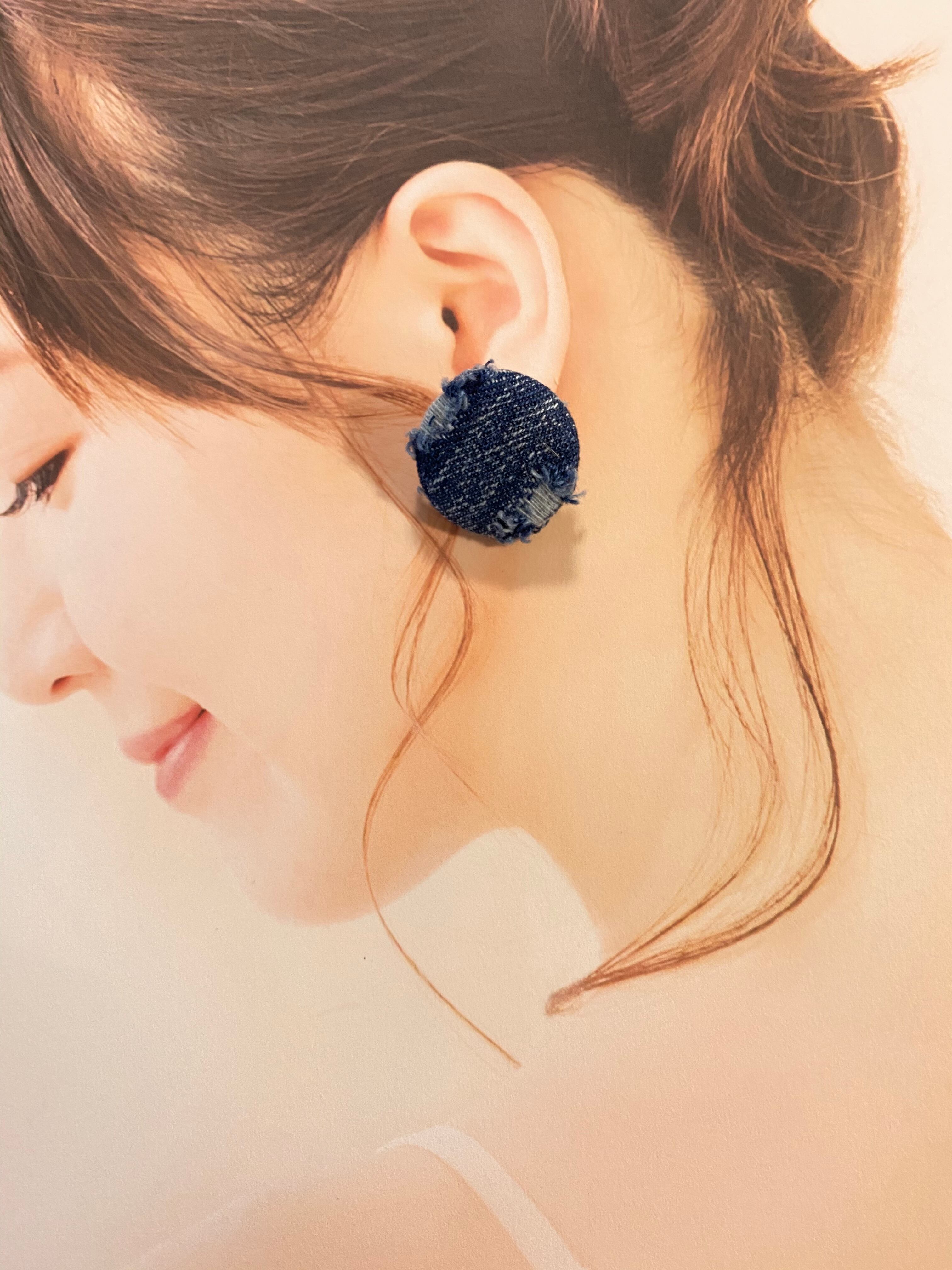 再販☆【ピアスorイヤリング】ダメージデニム直径3㎝(ダークブルー)