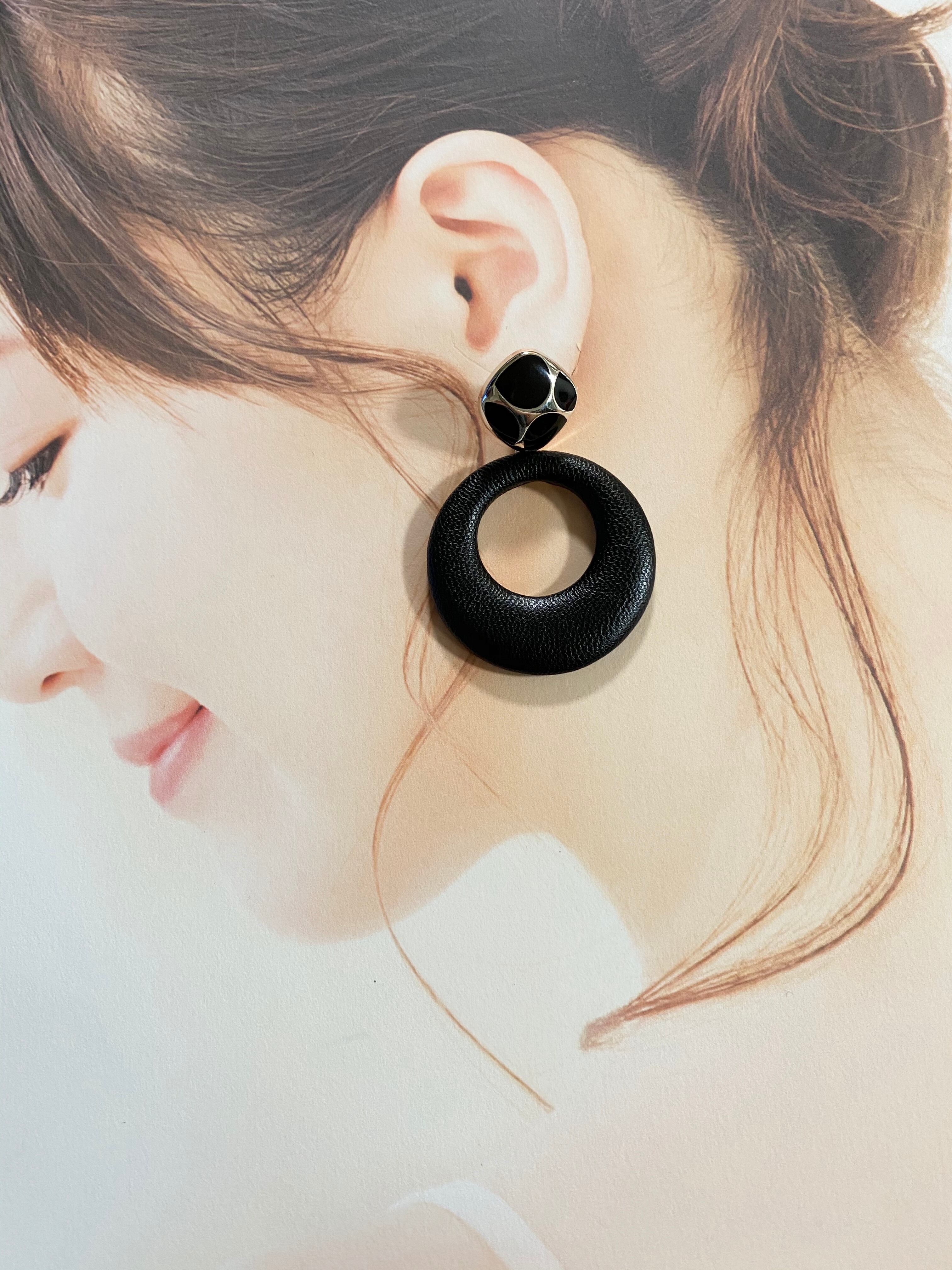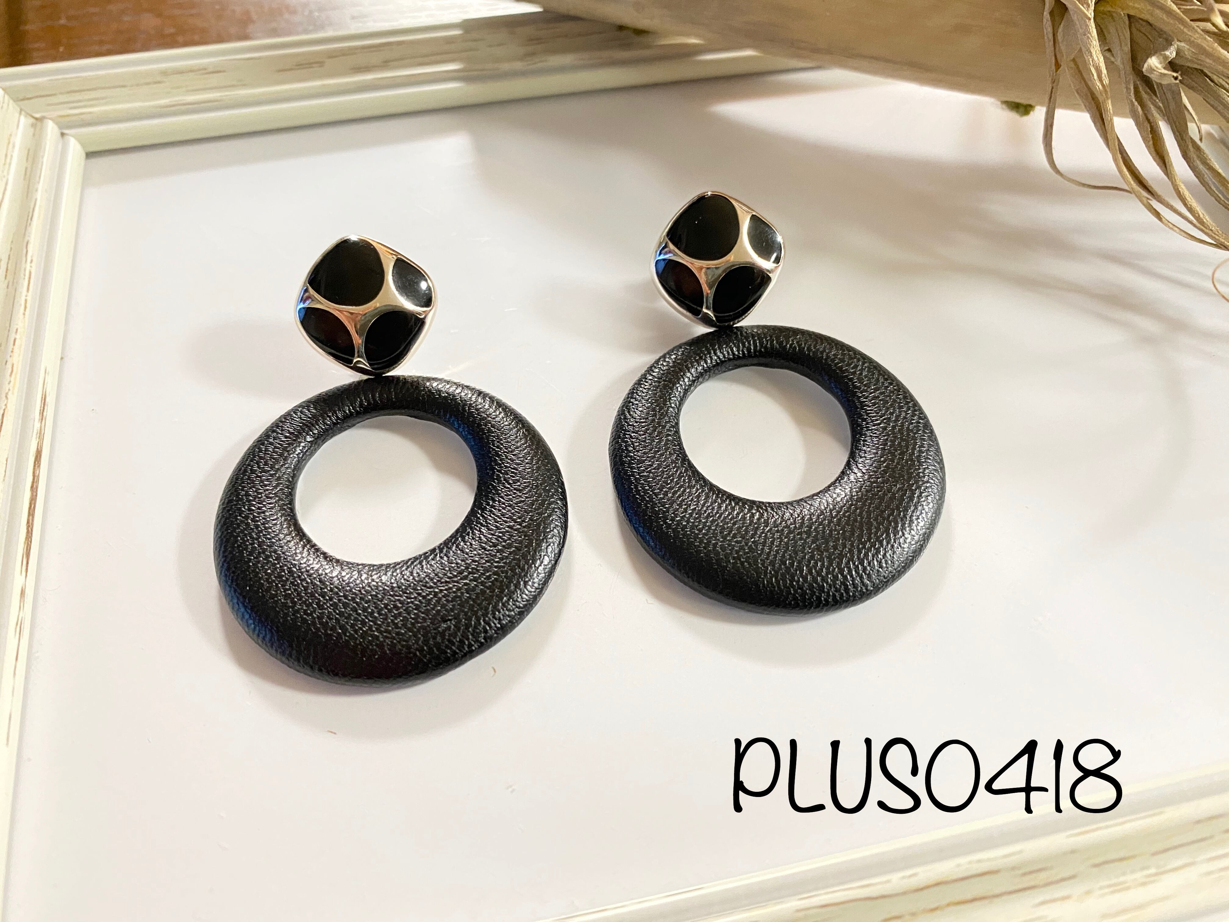 【ピアスorイヤリング】レザー風ブラックリング