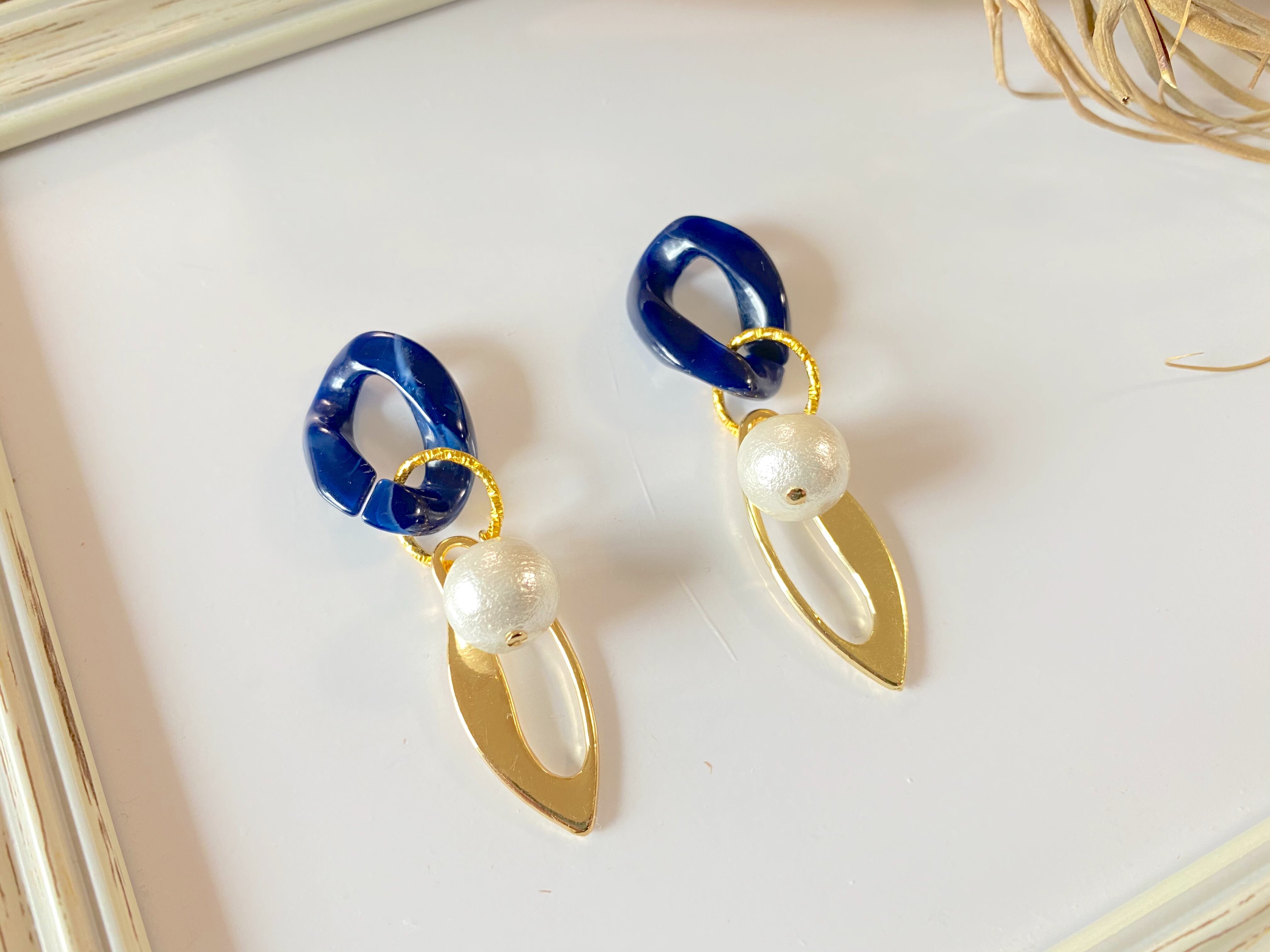 【ピアスorイヤリング】ネイビー✖️コットンパール✖️ゴールド