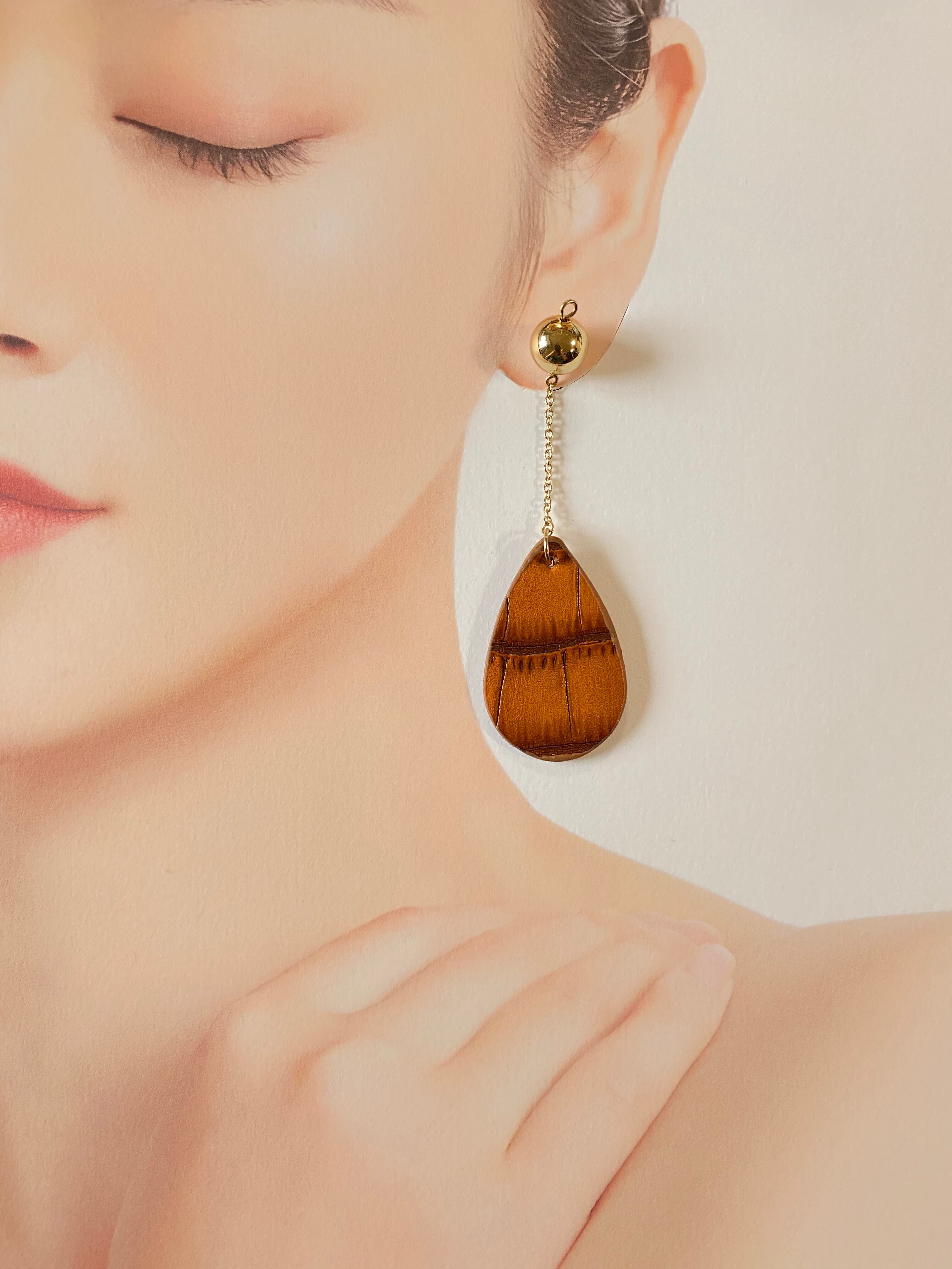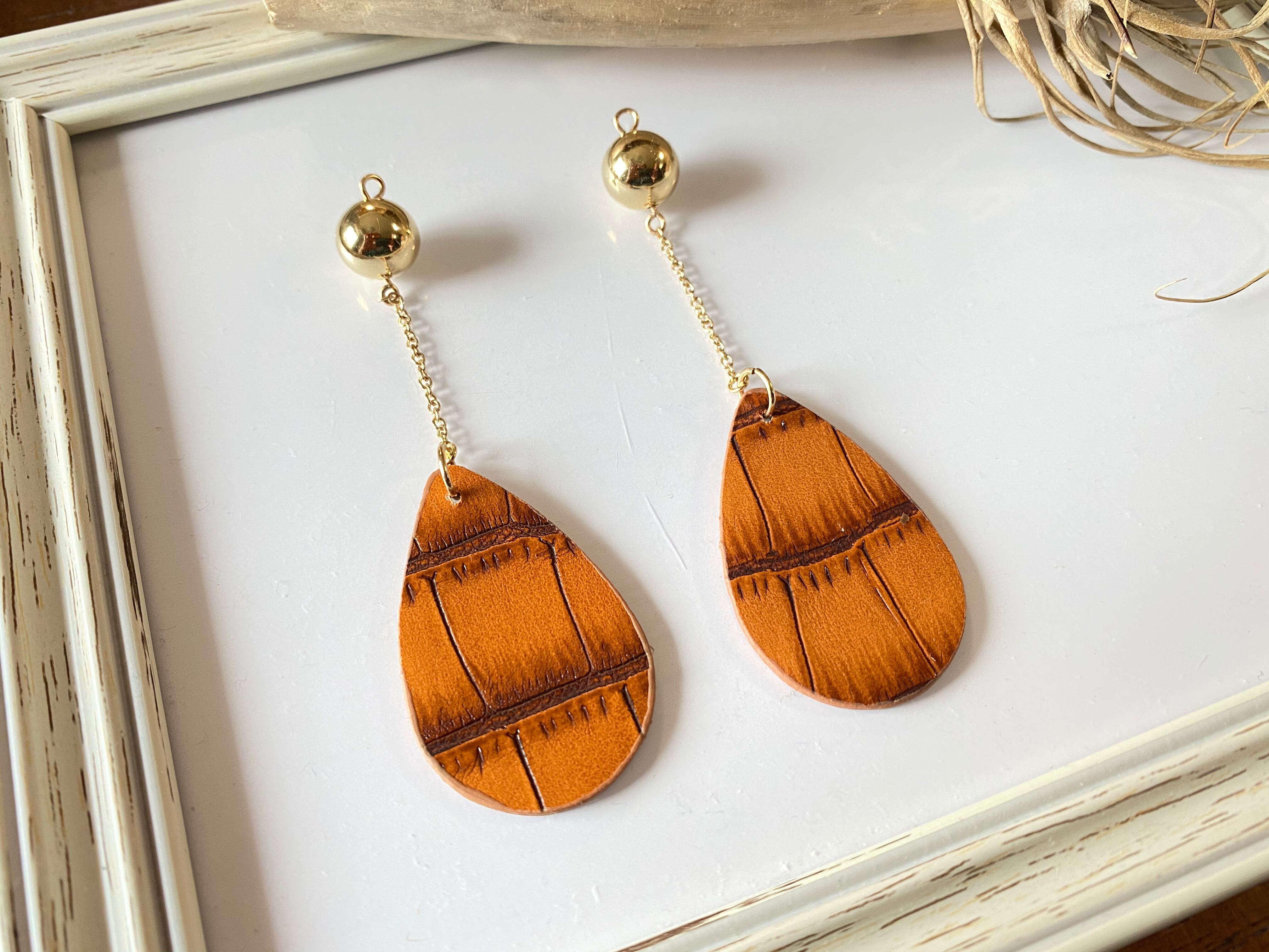 【ピアスorイヤリング】ブラウンフェイクレザーかけるゴールドボール
