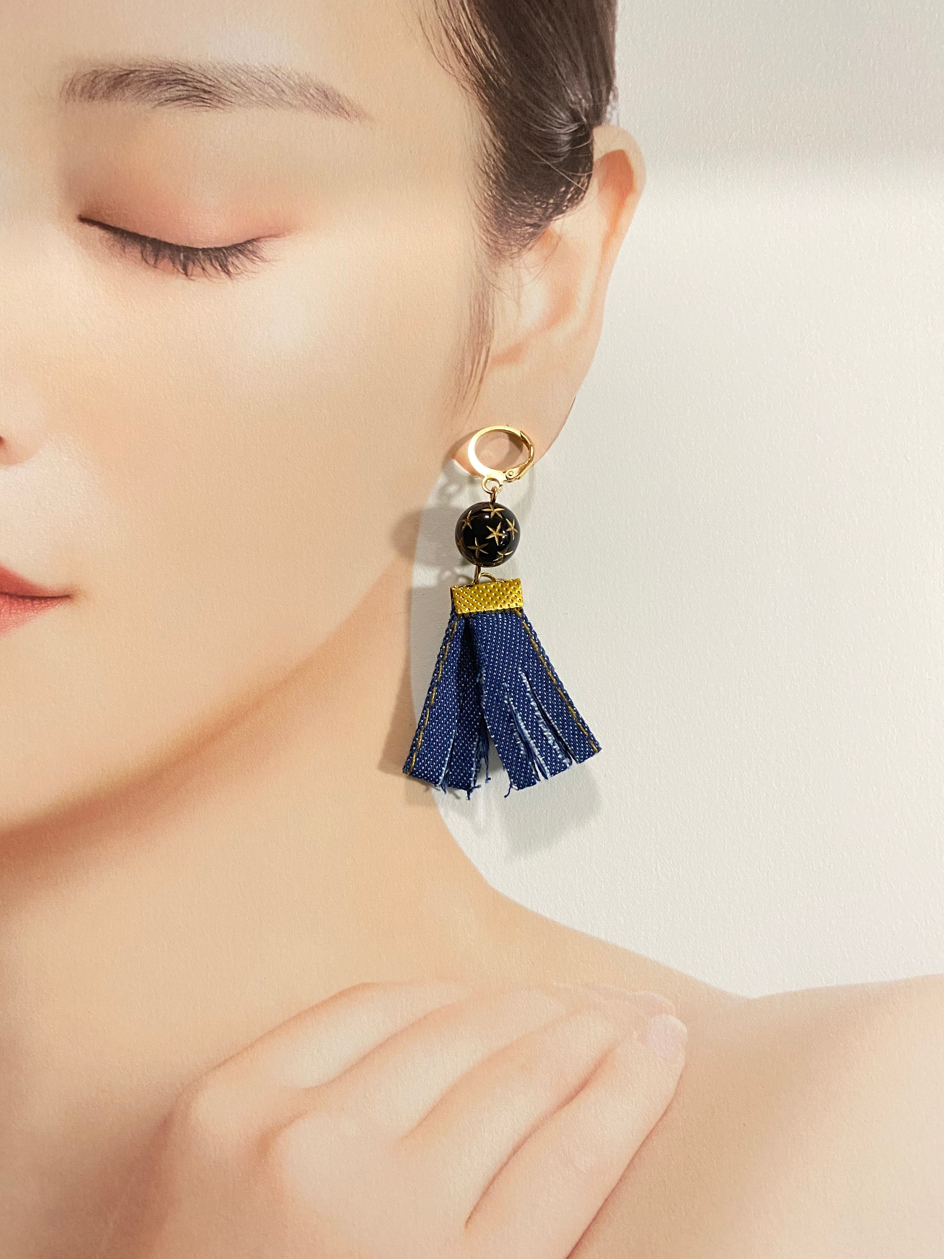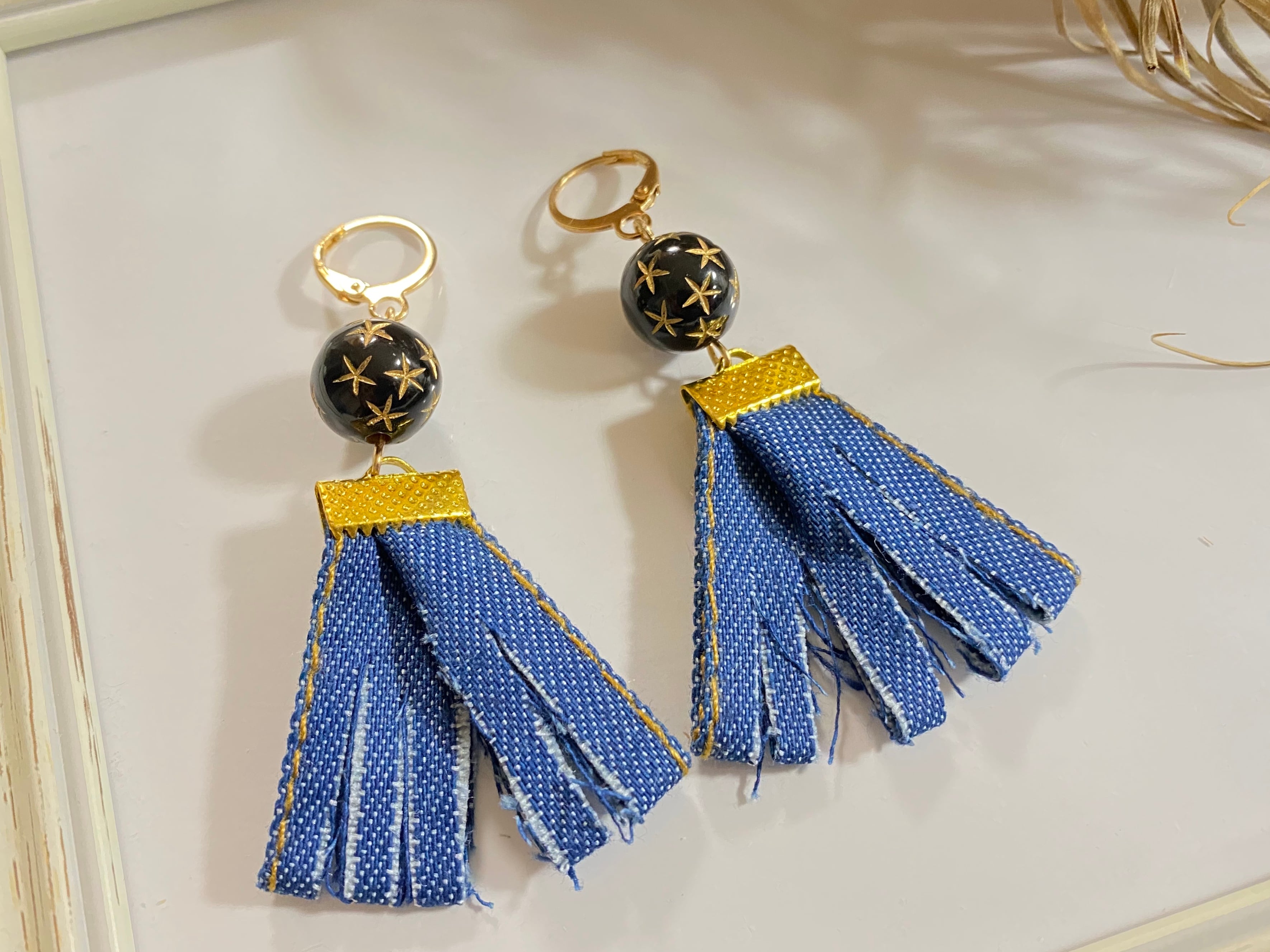 【ピアスorイヤリング】ブラックスター✖️デニムタッセル | PLUS0418