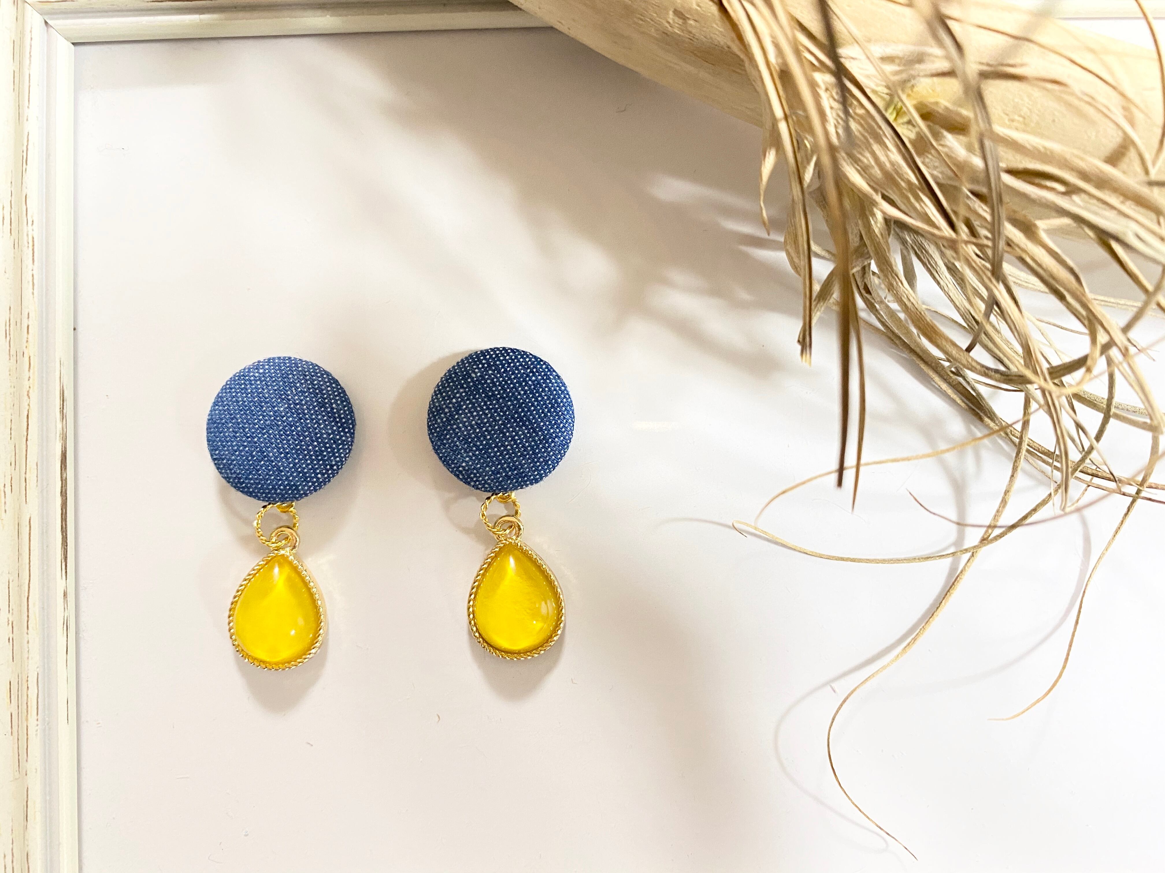【イヤリングのみ】デニムボタン✖️イエロードロップ