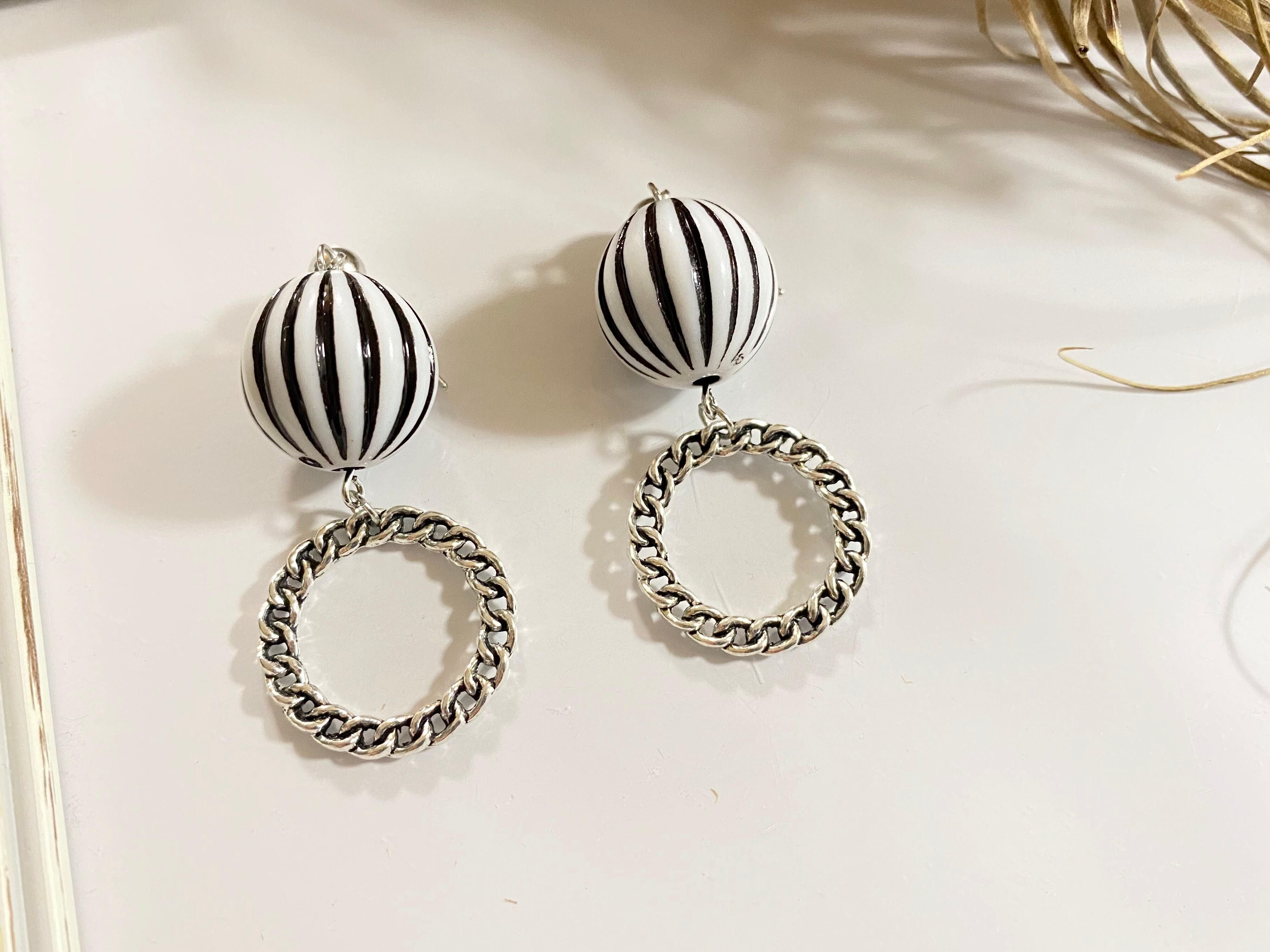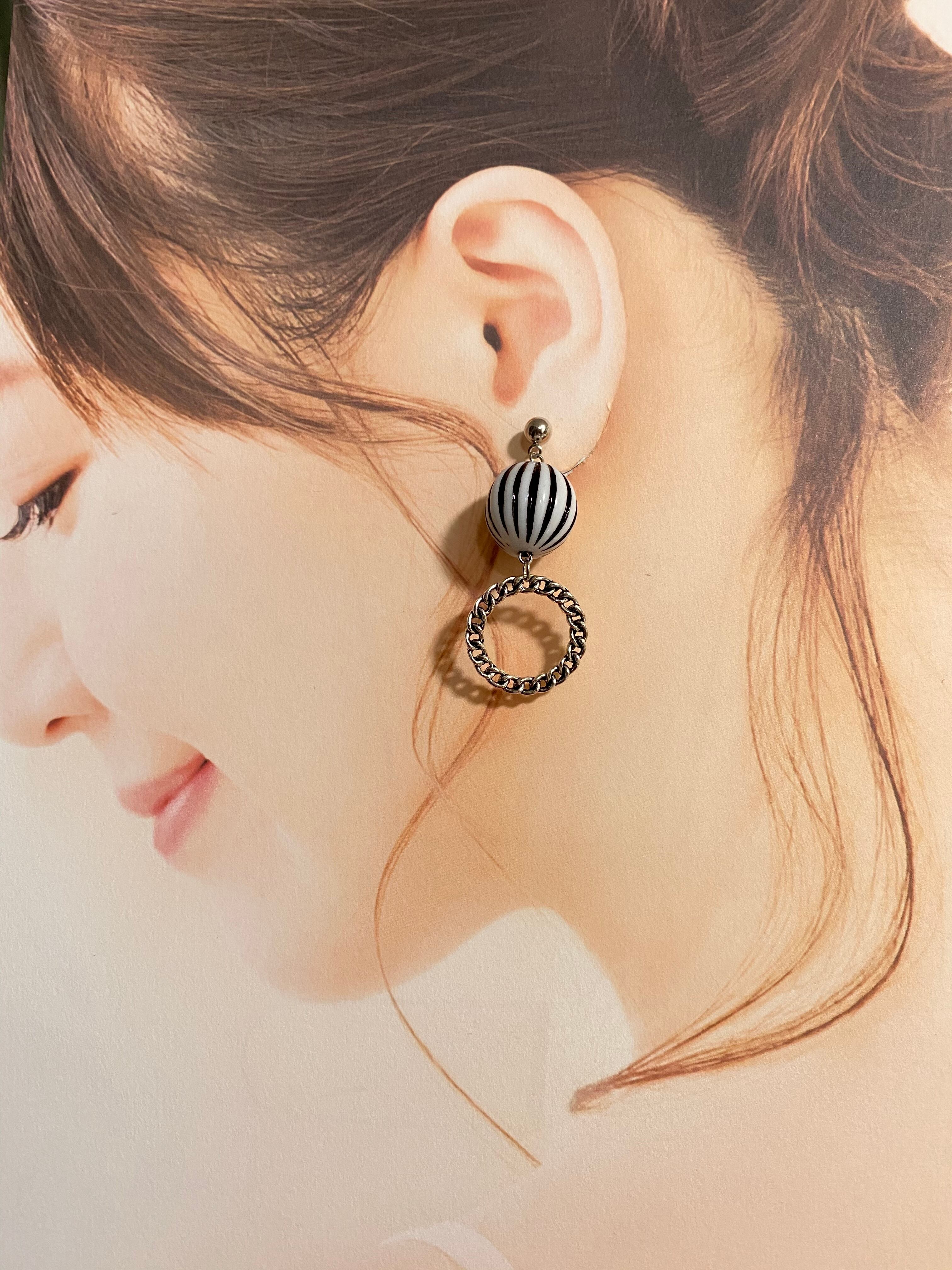 【ピアスorイヤリング】ストライプ✖️シルバーリング