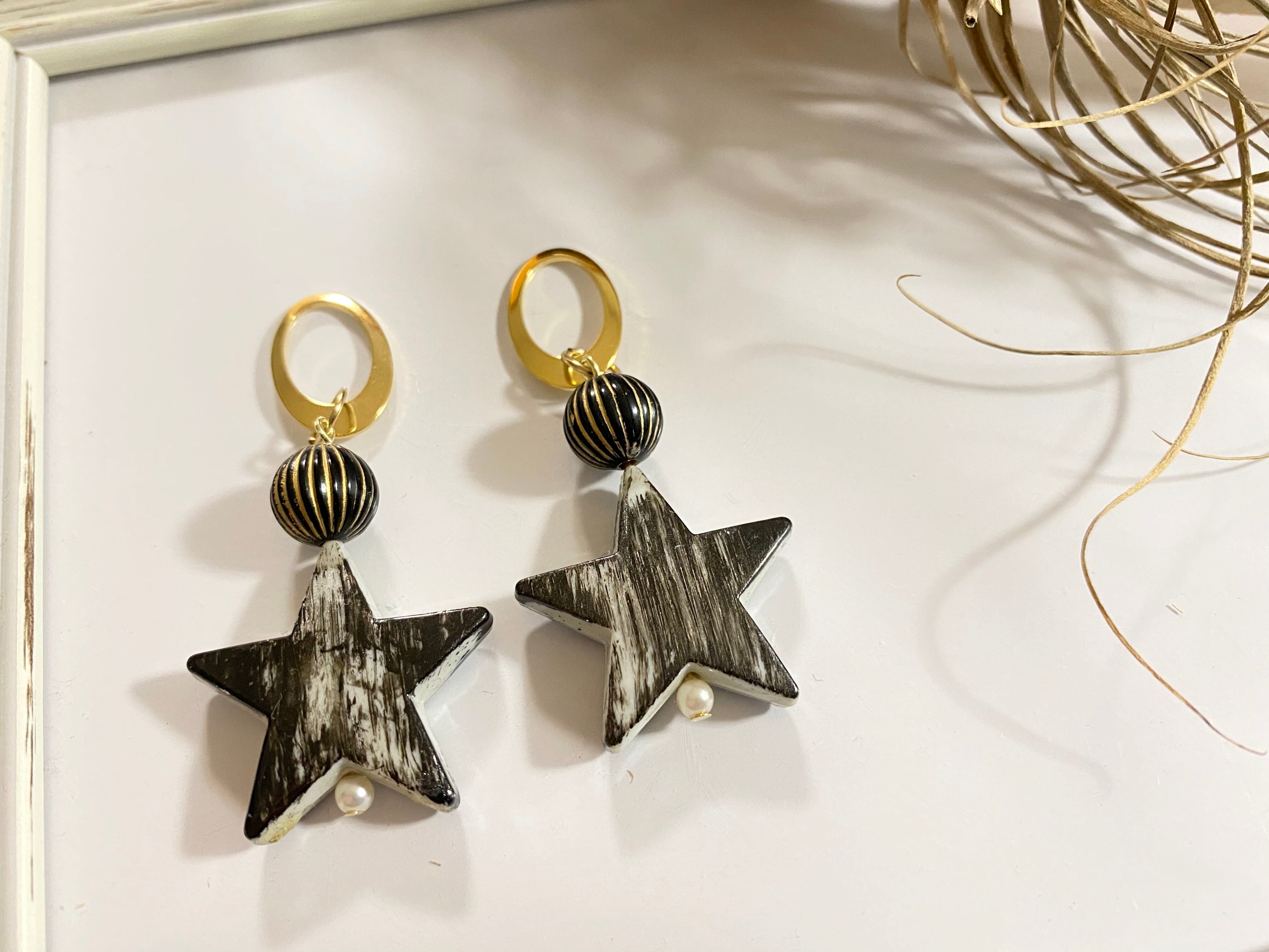 【ピアスorイヤリング】ブラックスター✖️ゴールドリング