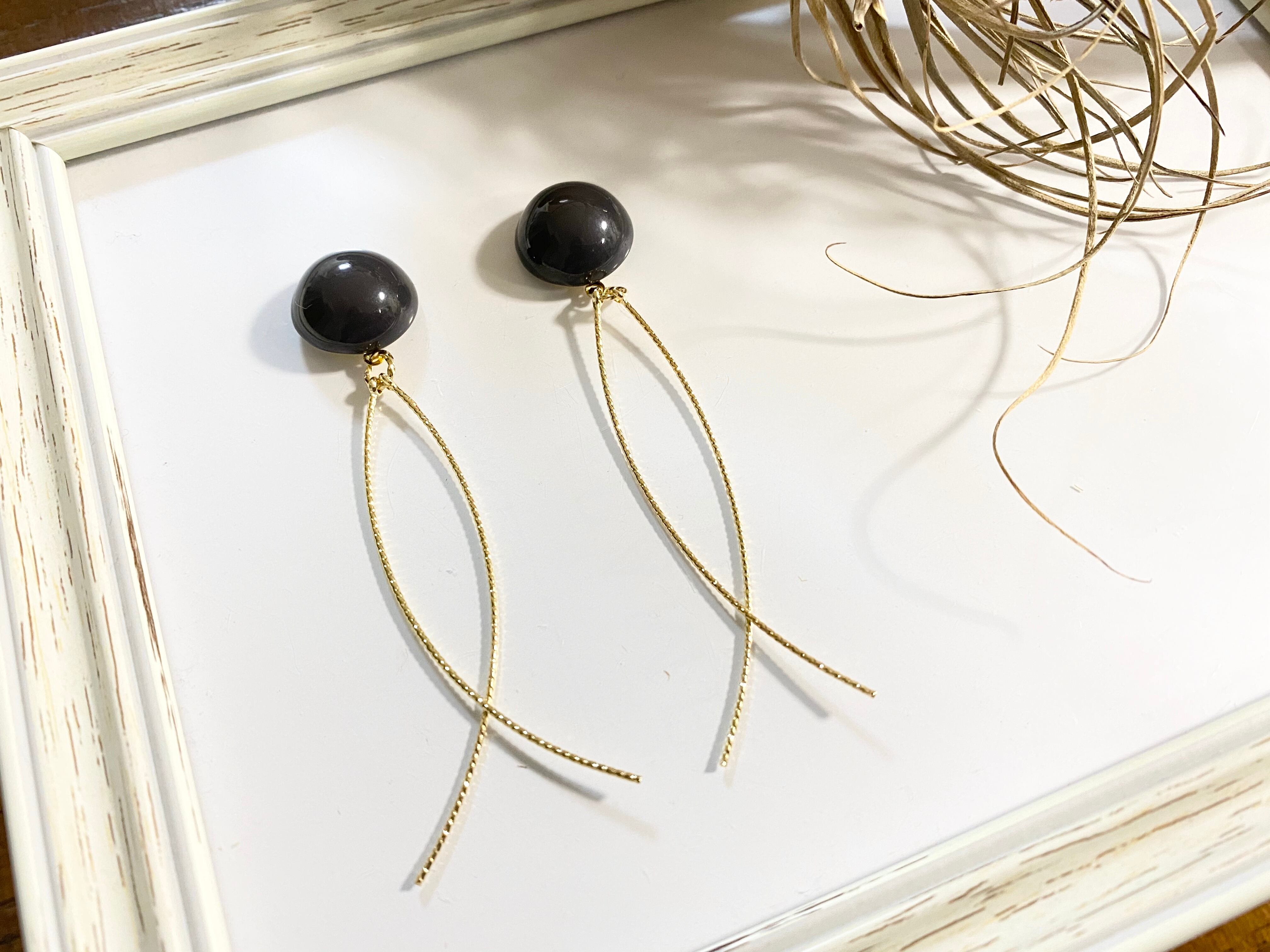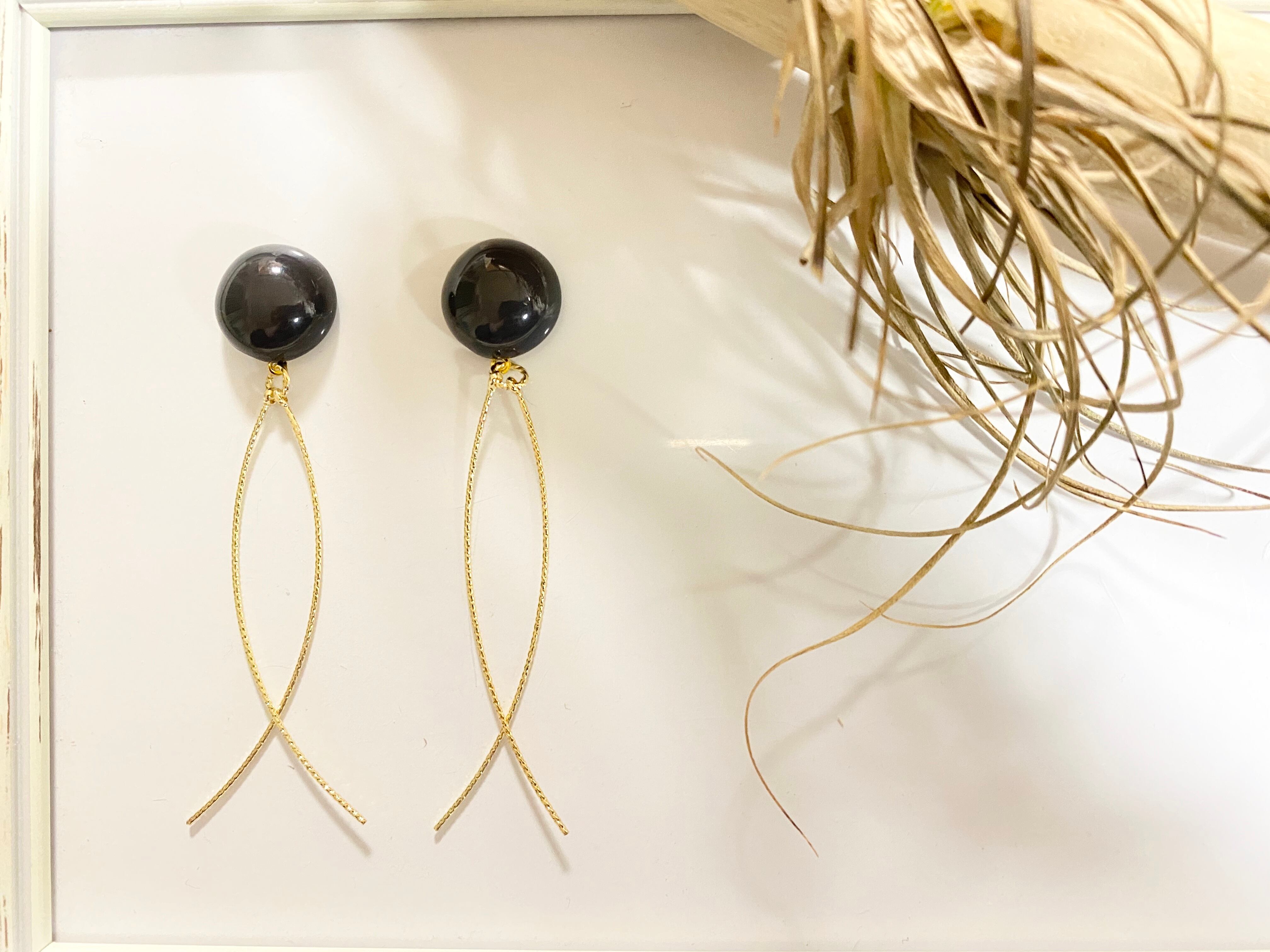 再販【ピアスorイヤリング】ブラックラウンドカボション✖️ゴールド