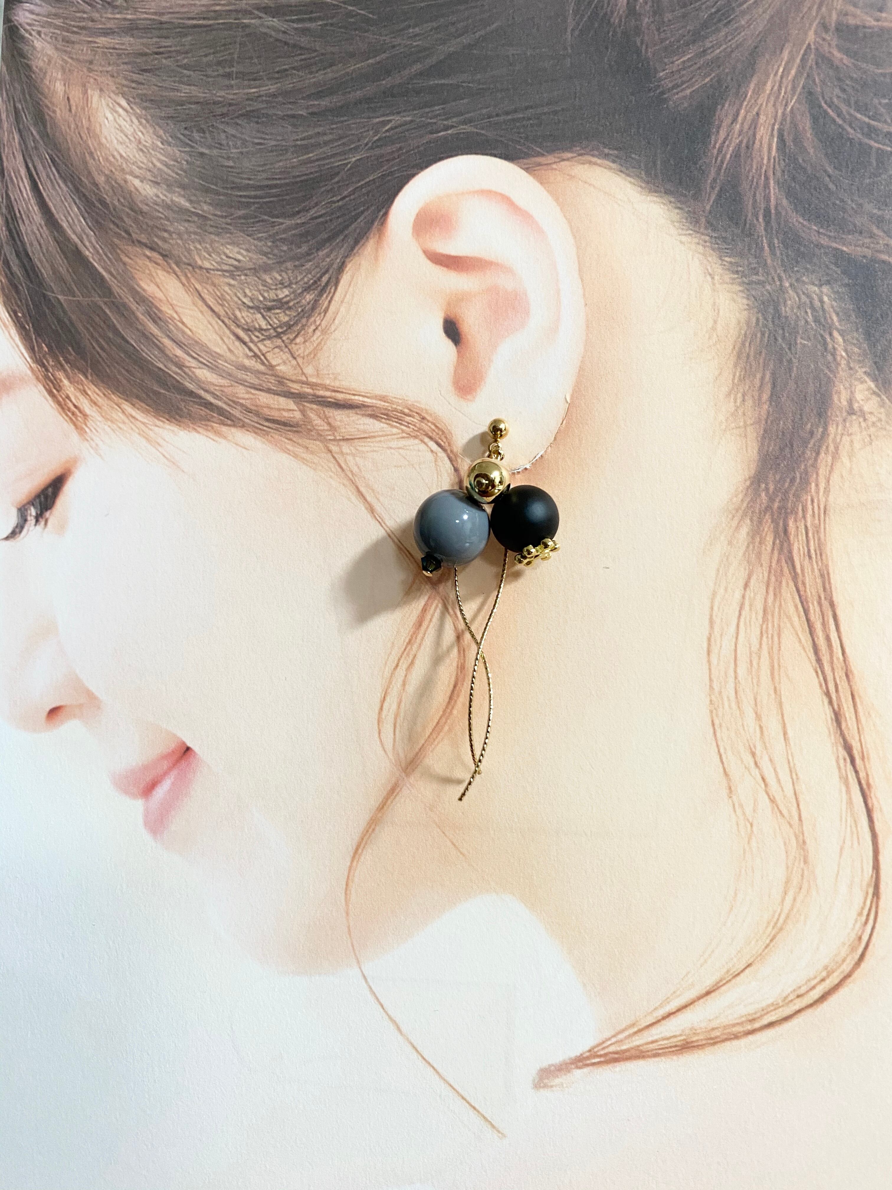 【ピアスorイヤリング】ブラック✖️グレー✖️ひねりゴールド