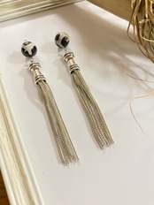 【ピアスorイヤリング】ドットがらビーズ✖️ビンテージ風シルバータッセル