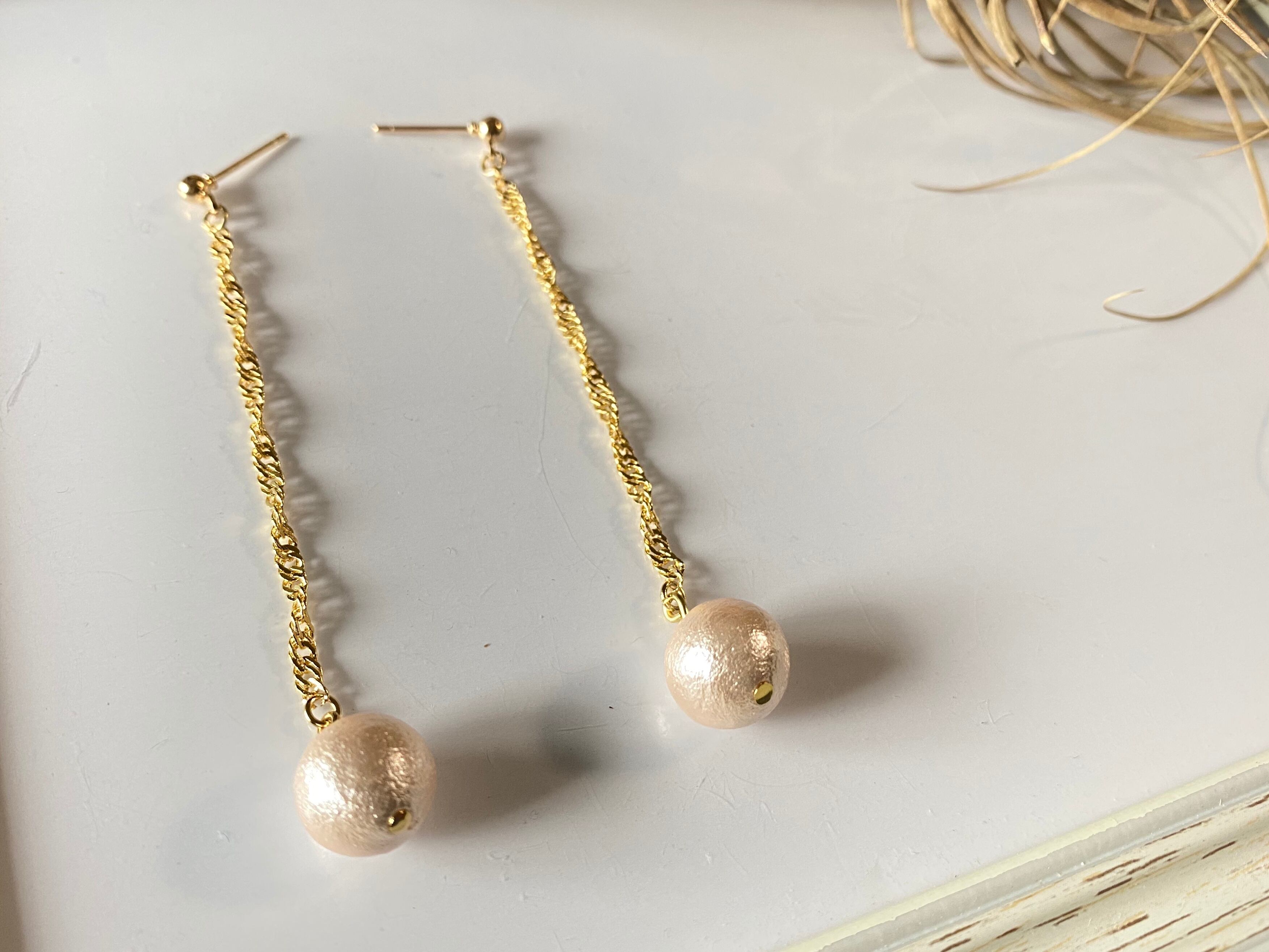 【ピアスorイヤリング】ピンクパール✖️チェーン