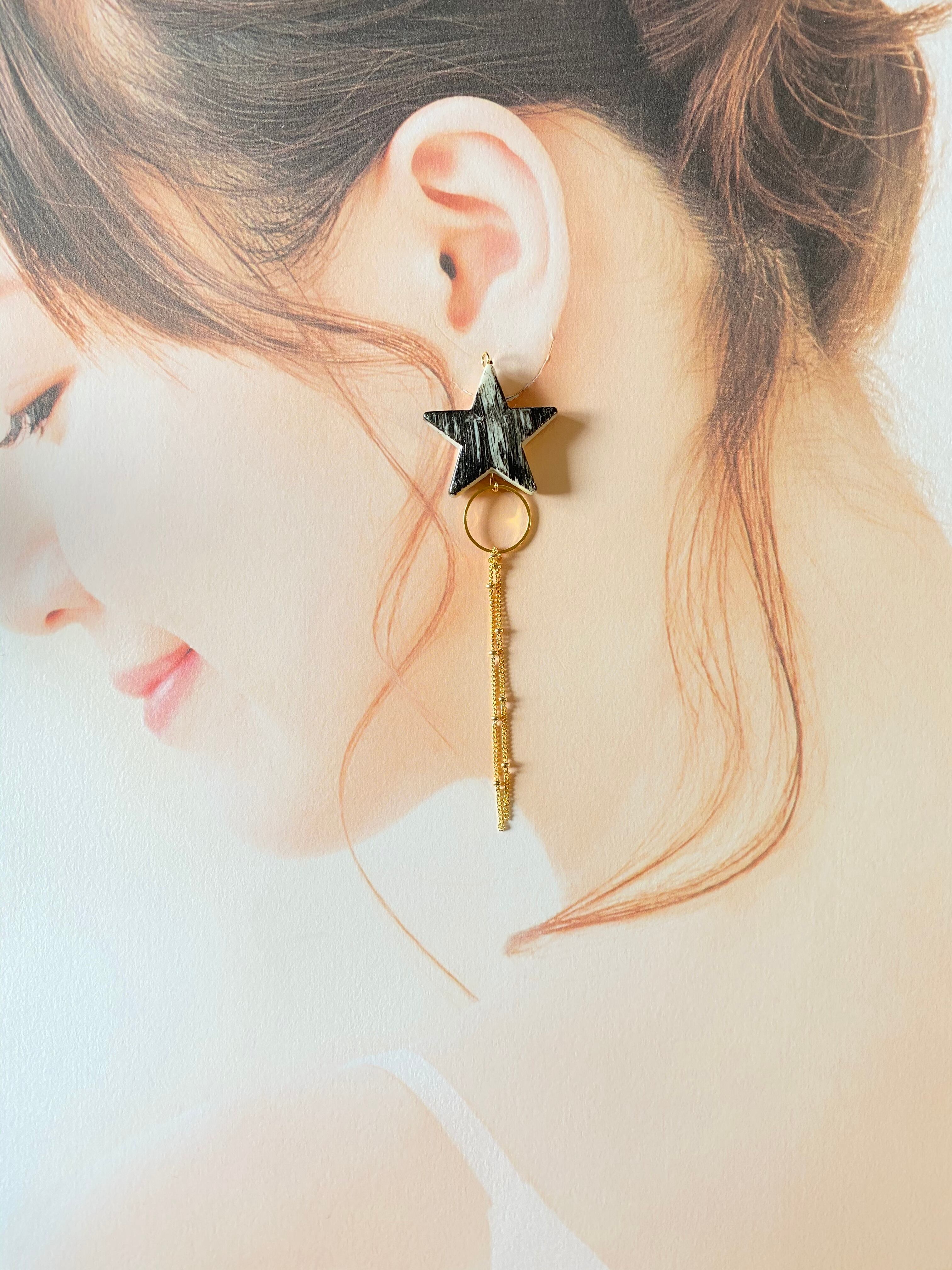 【ピアスorイヤリング】ブラックスター✖️ボールチェーン