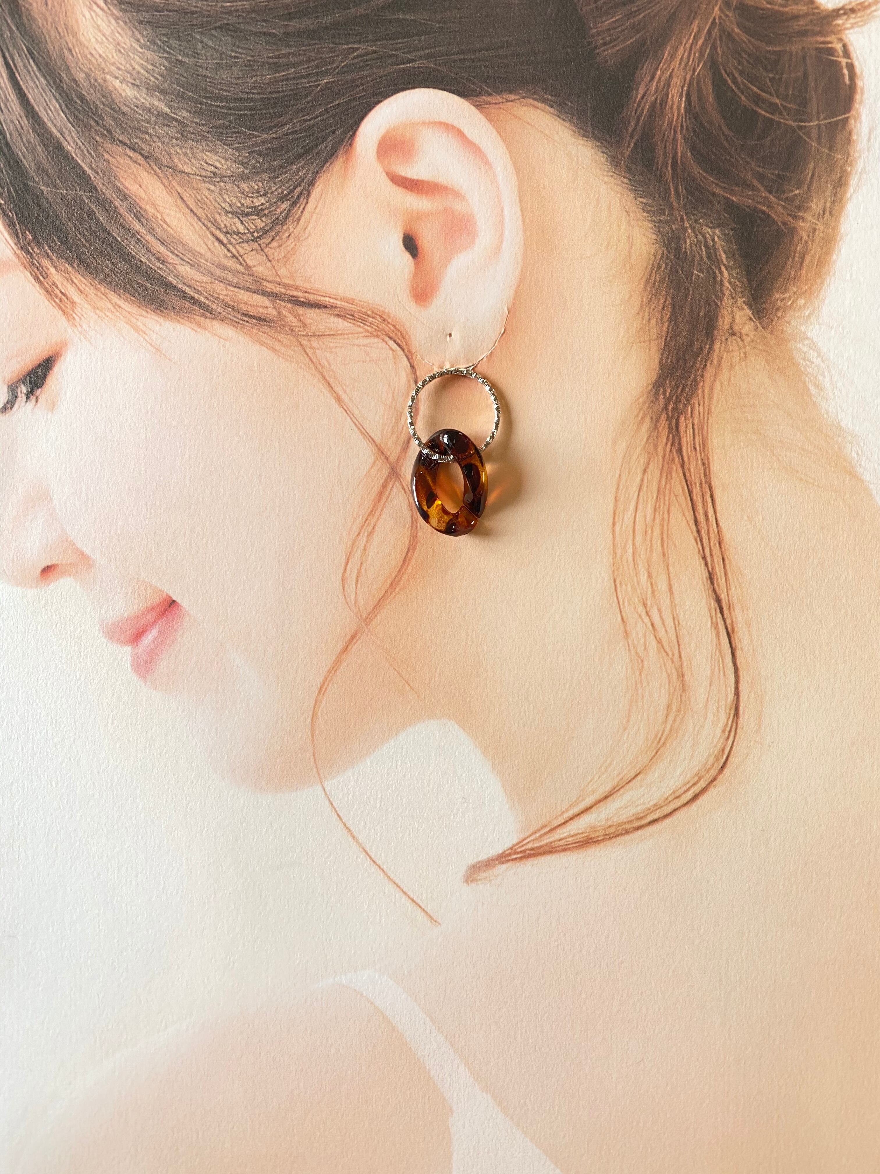 【ピアスorイヤリング】べっ甲✖️シルバーリング
