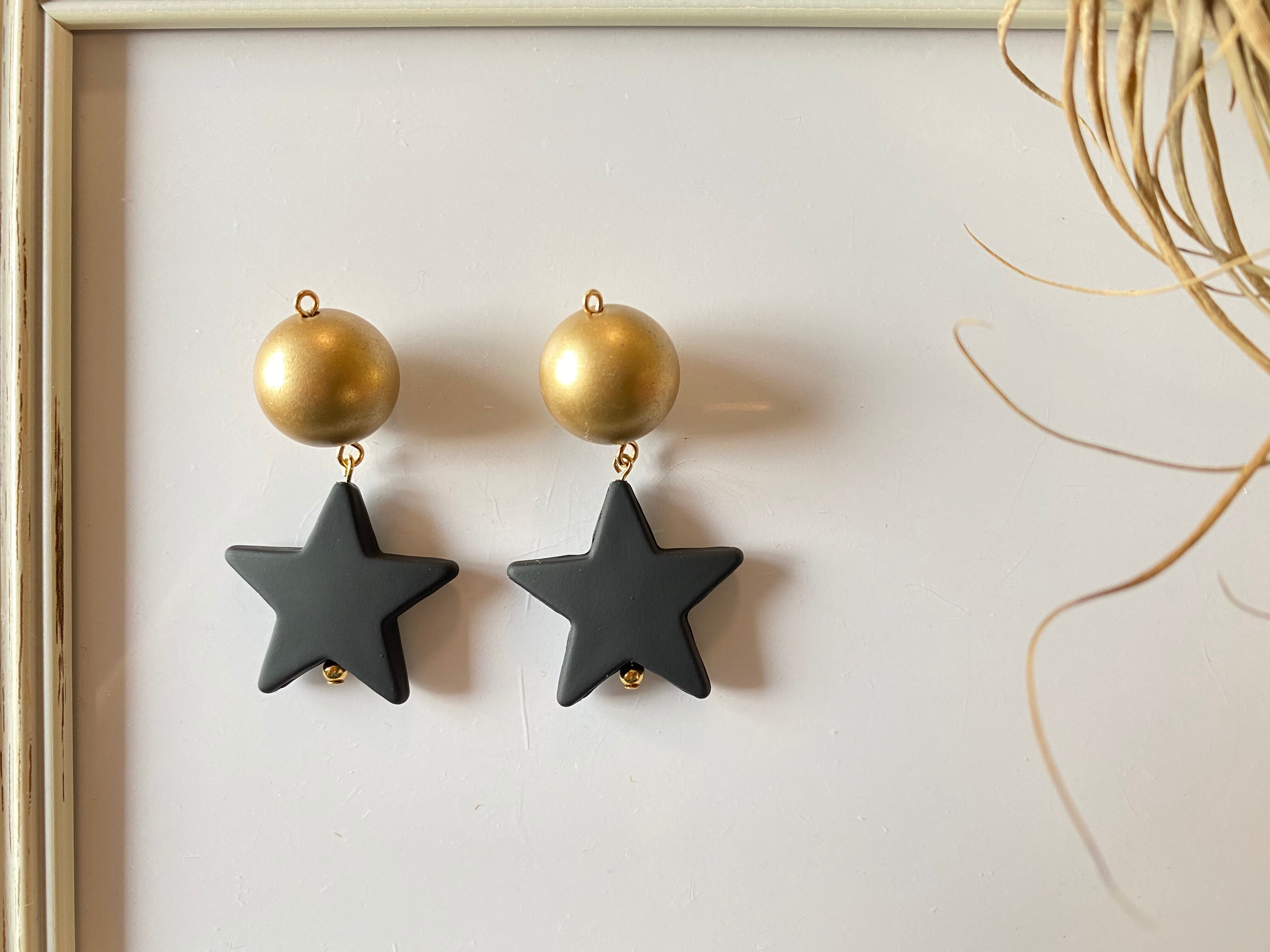 【ピアスorイヤリング】マットブラックスター✖️マットゴールドボール