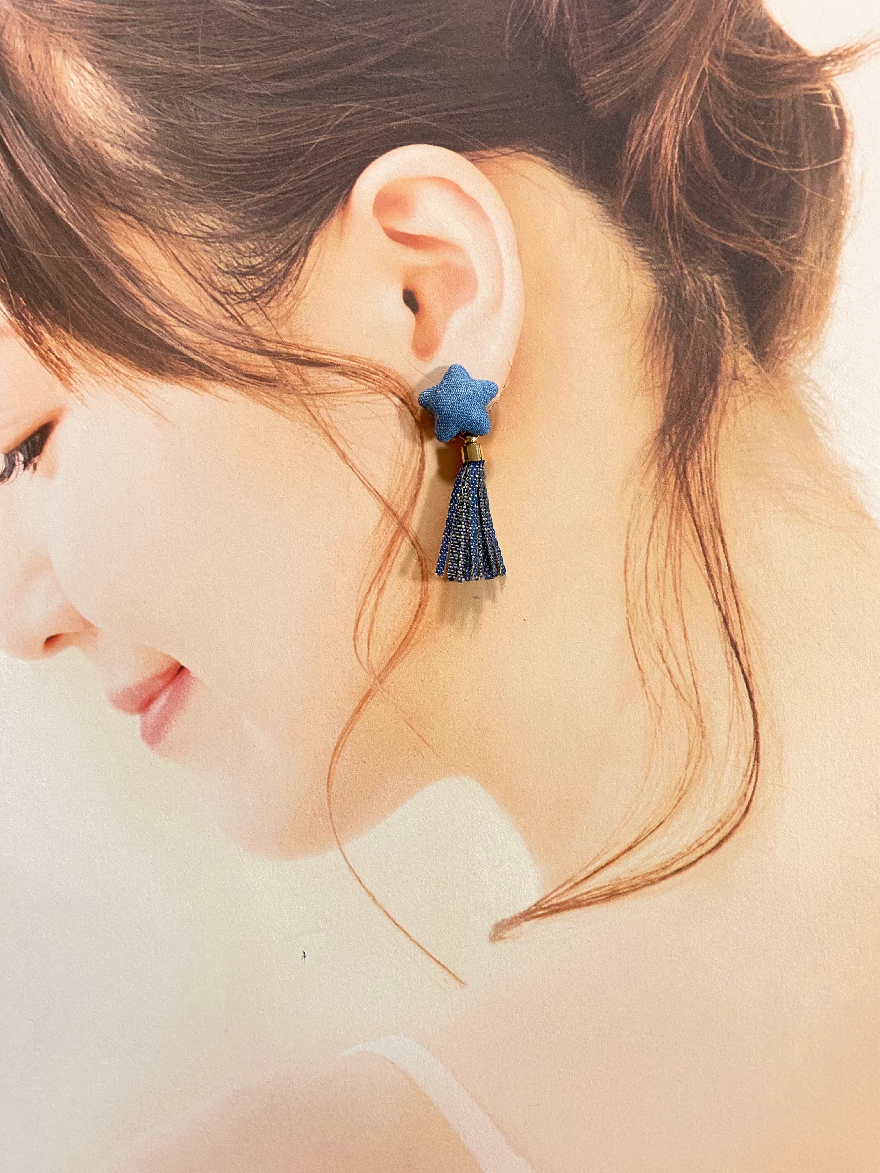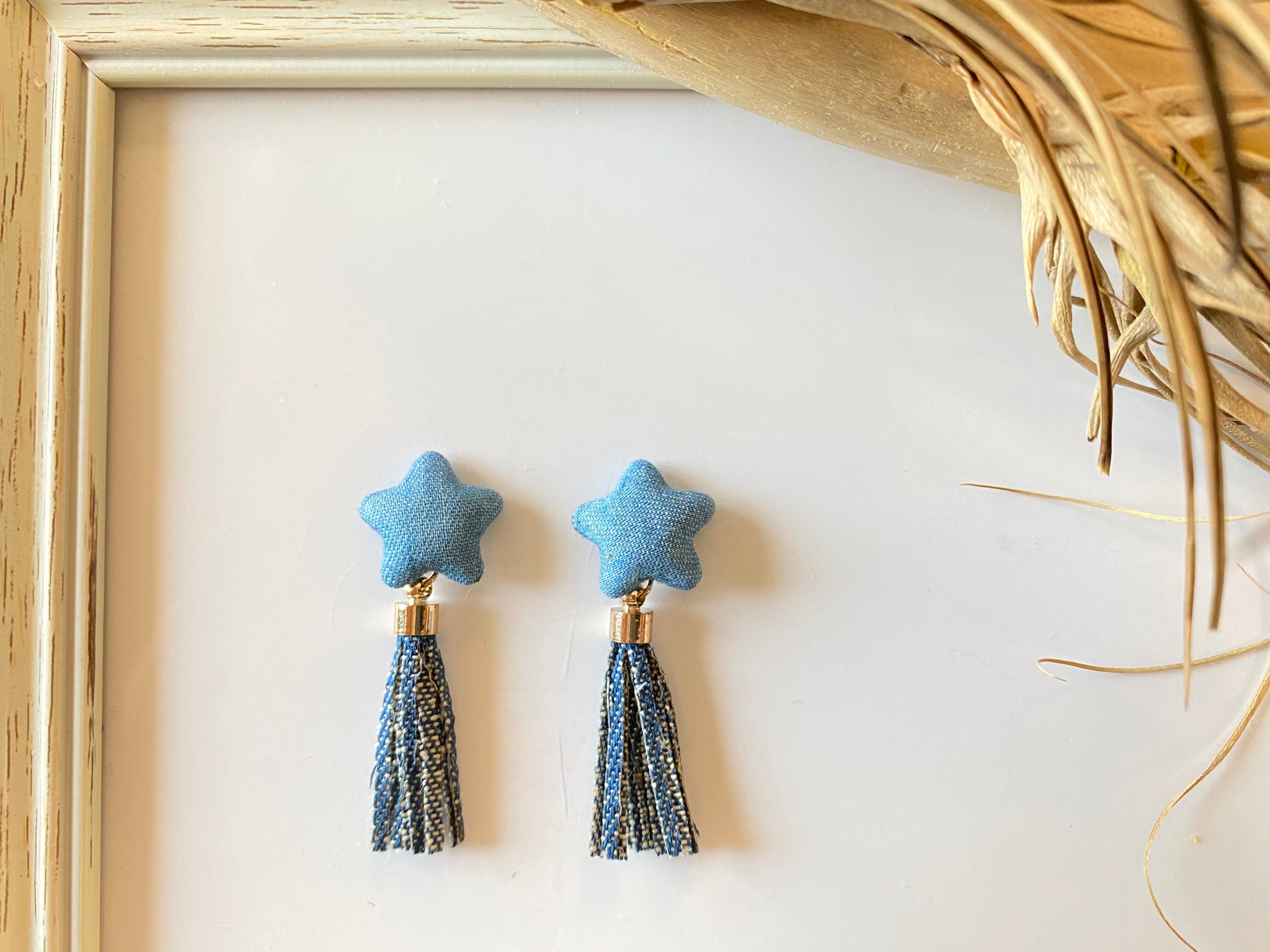 【ピアスorイヤリング】デニムスター✖️デニムタッセル