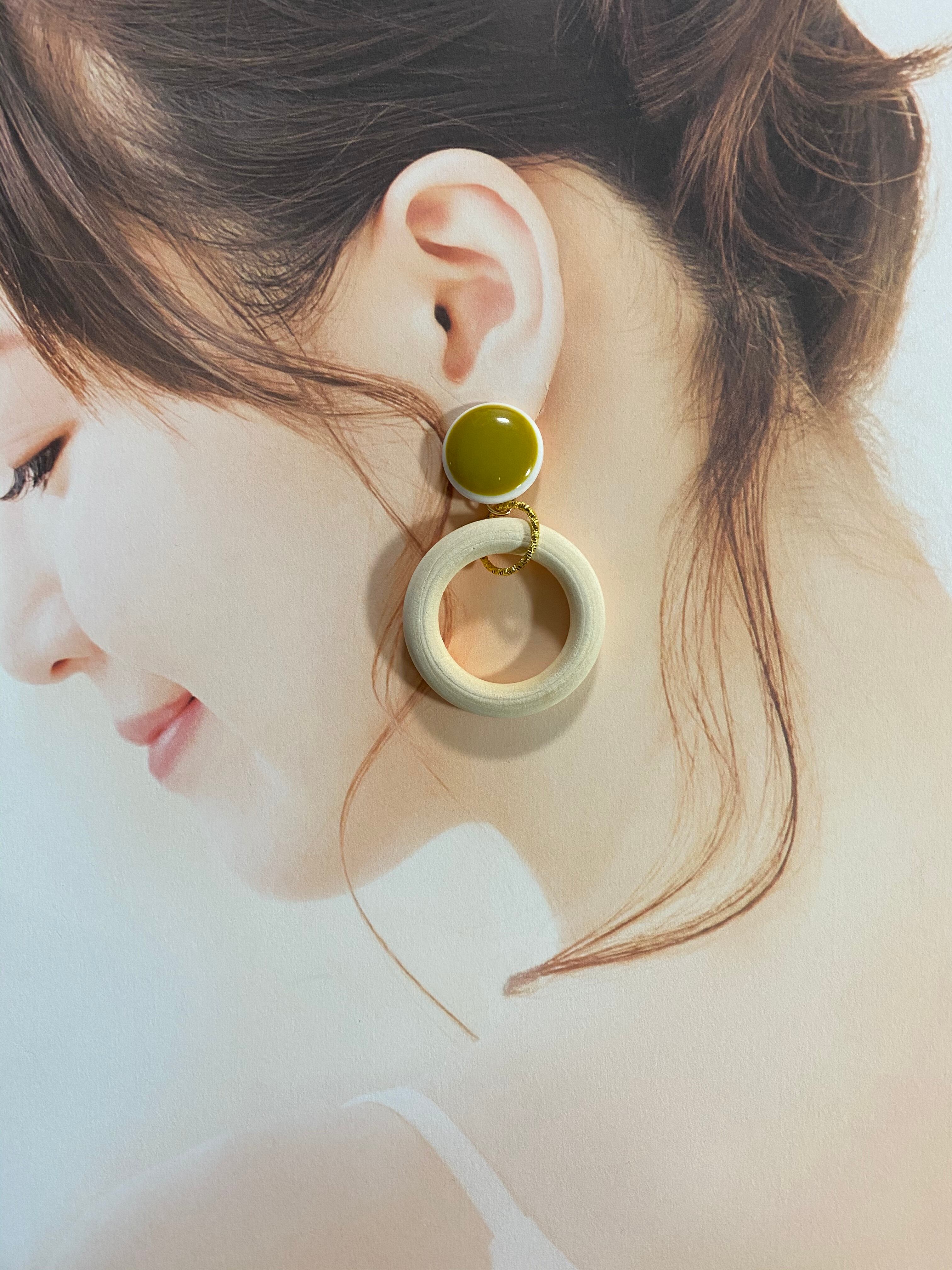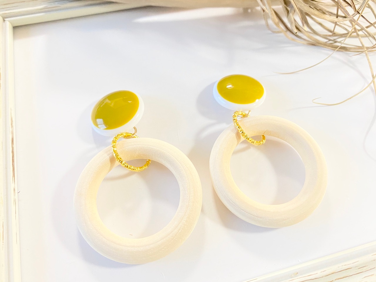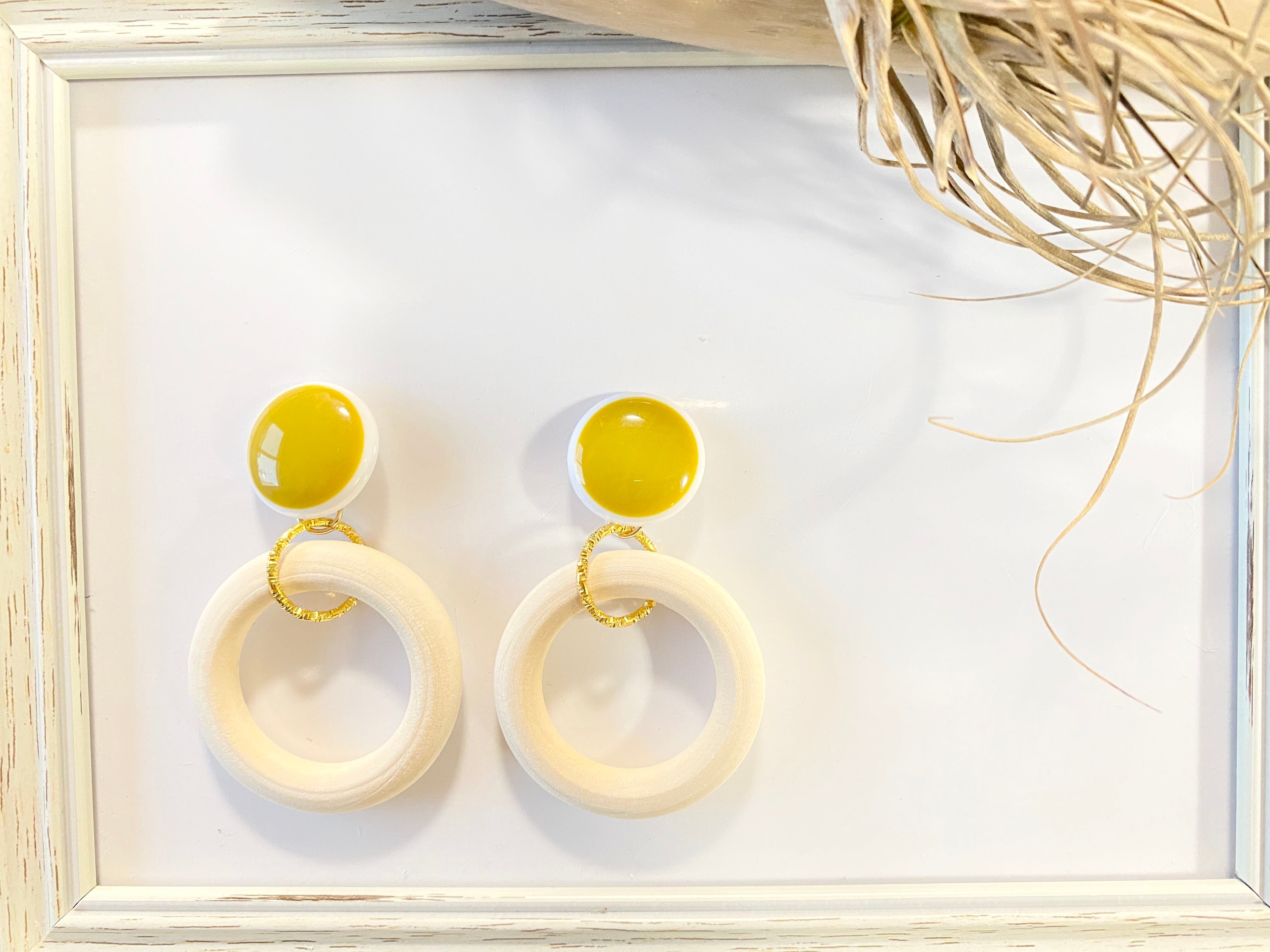 【イヤリングのみ】ウッドリング✖️イエローカボション