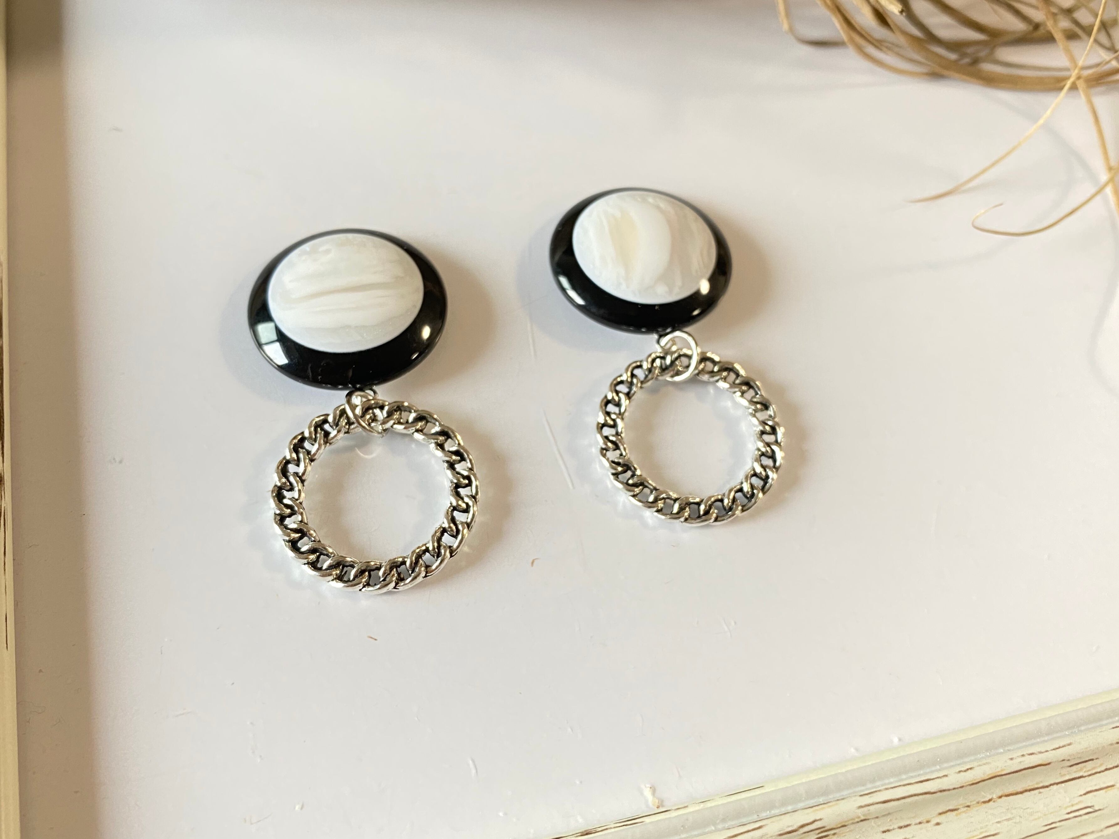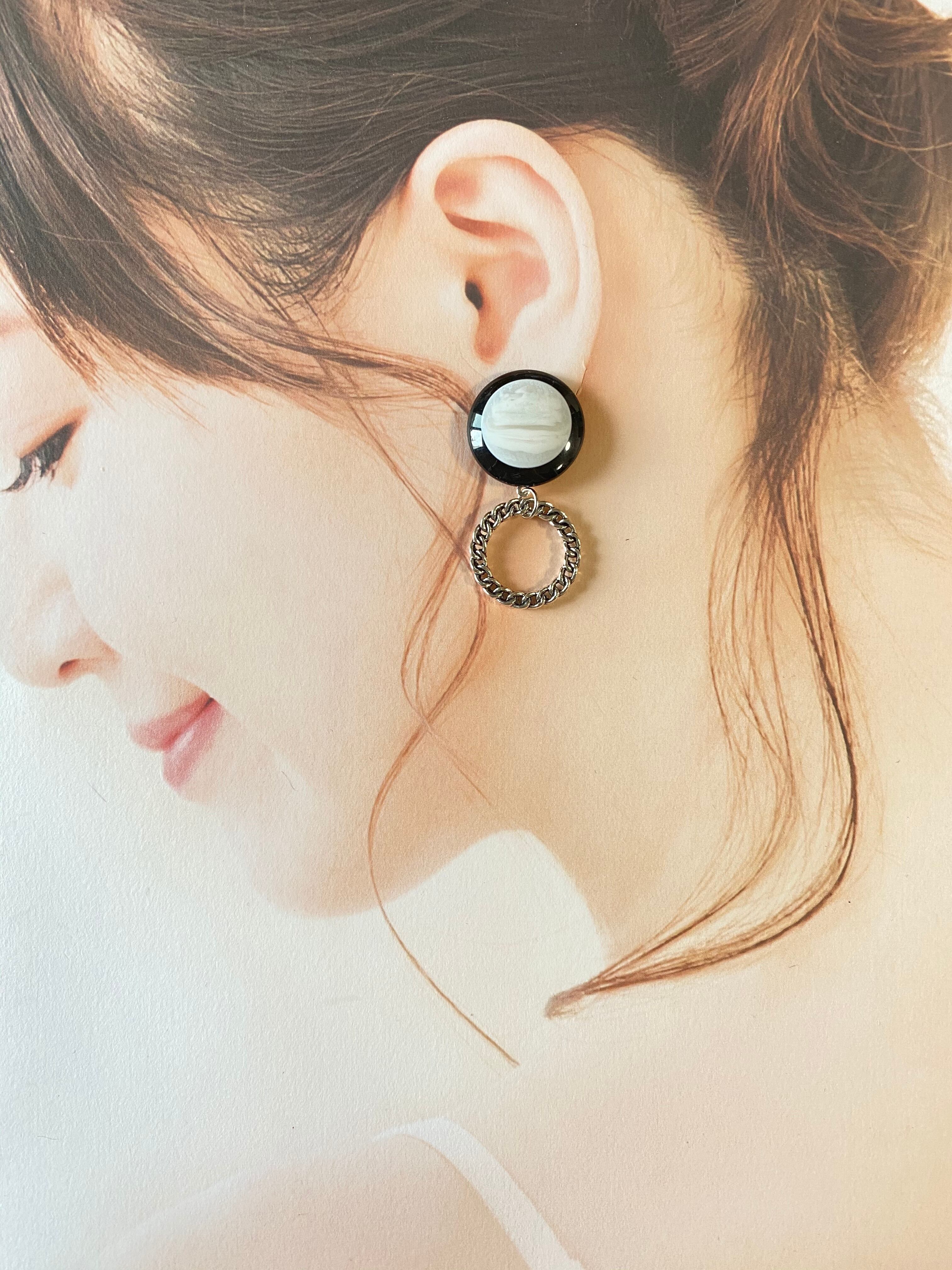 【ピアスorイヤリング】モノクロカボション✖️シルバーリング