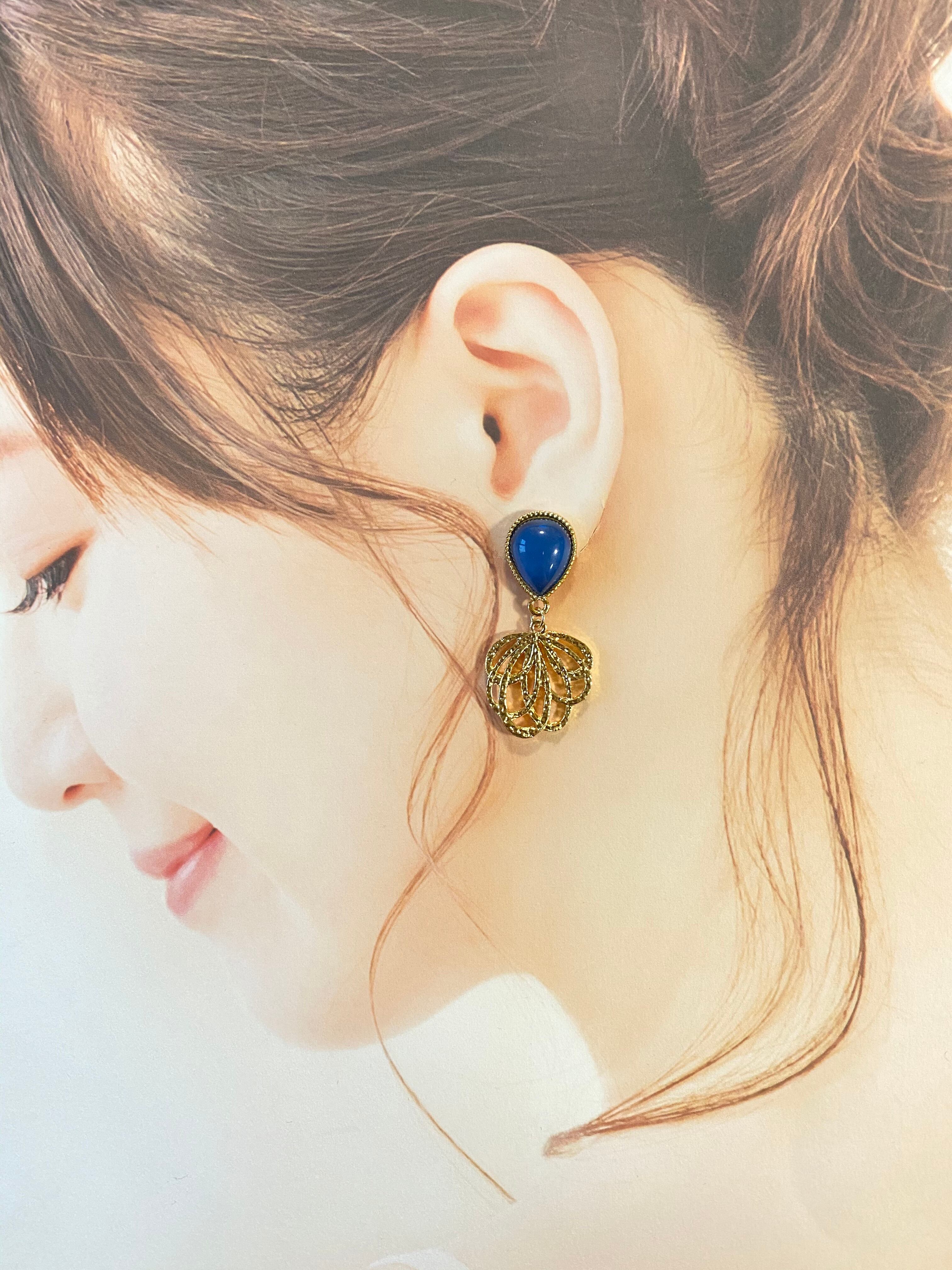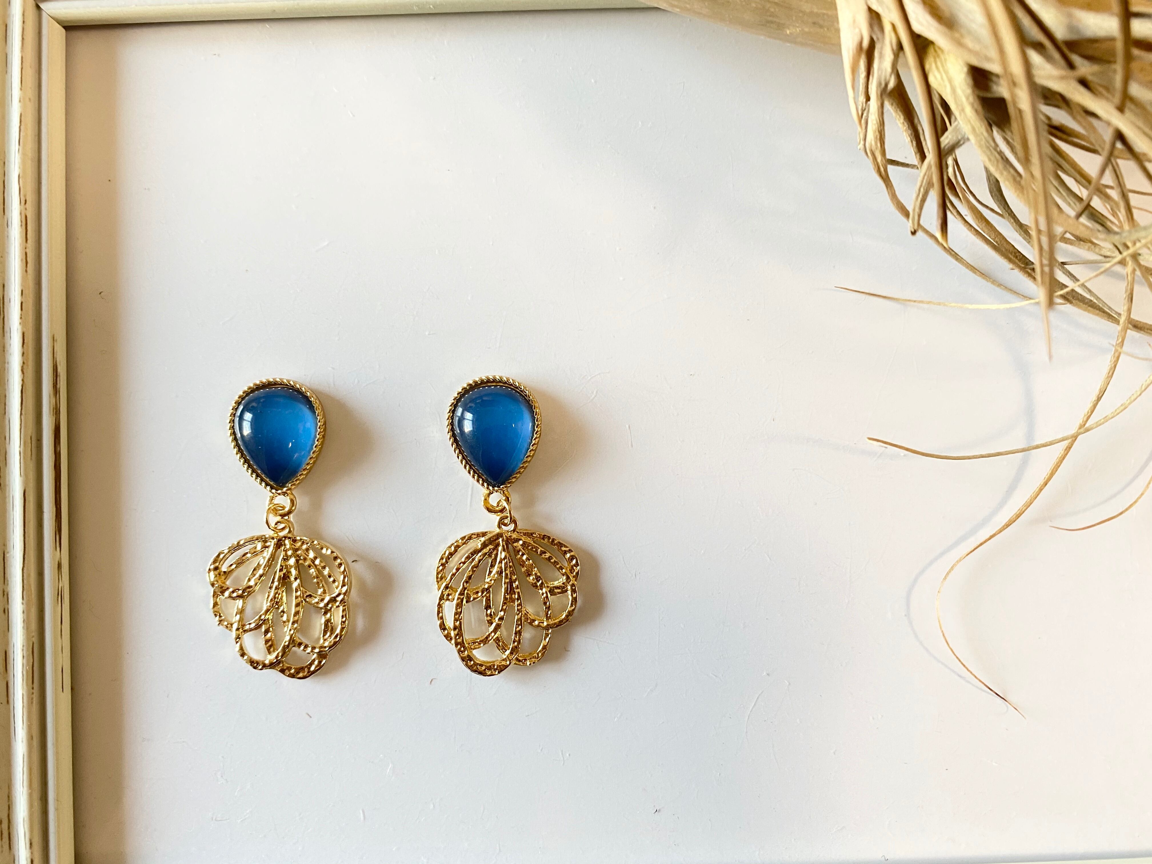【ピアスorイヤリング】ブルードロップ✖️ゴールド