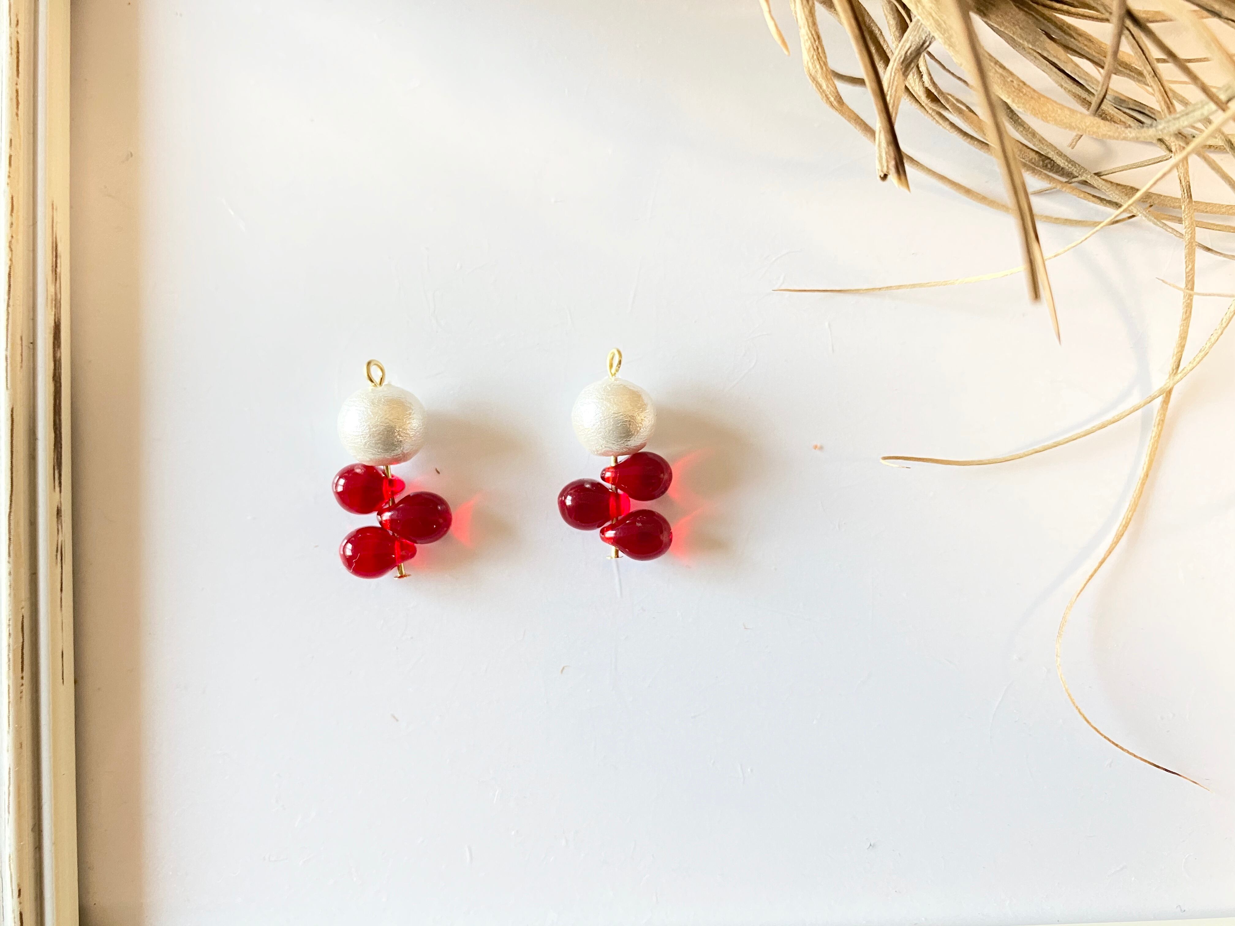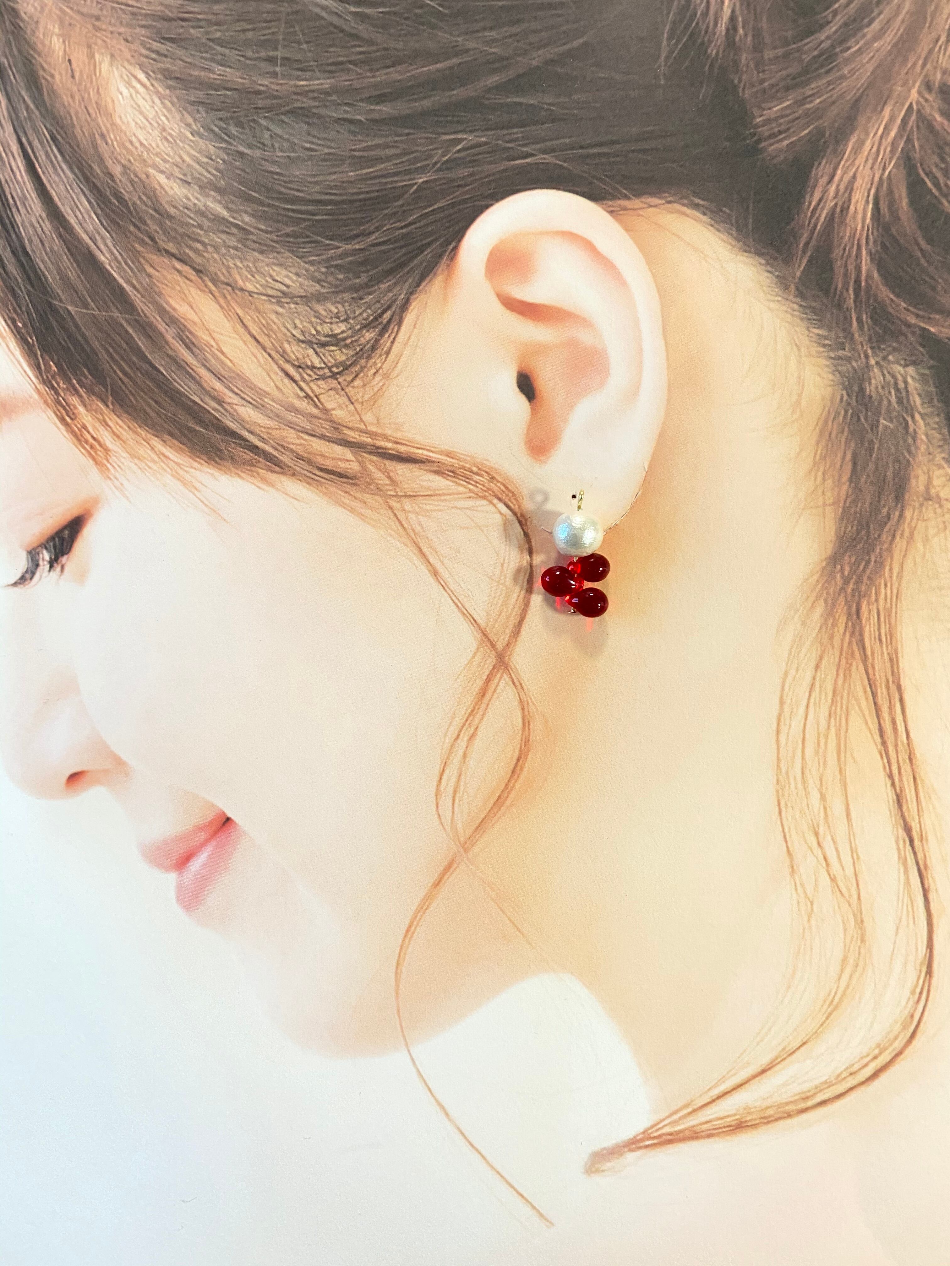【ピアスorイヤリング】レッドストーン✖️コットンパール