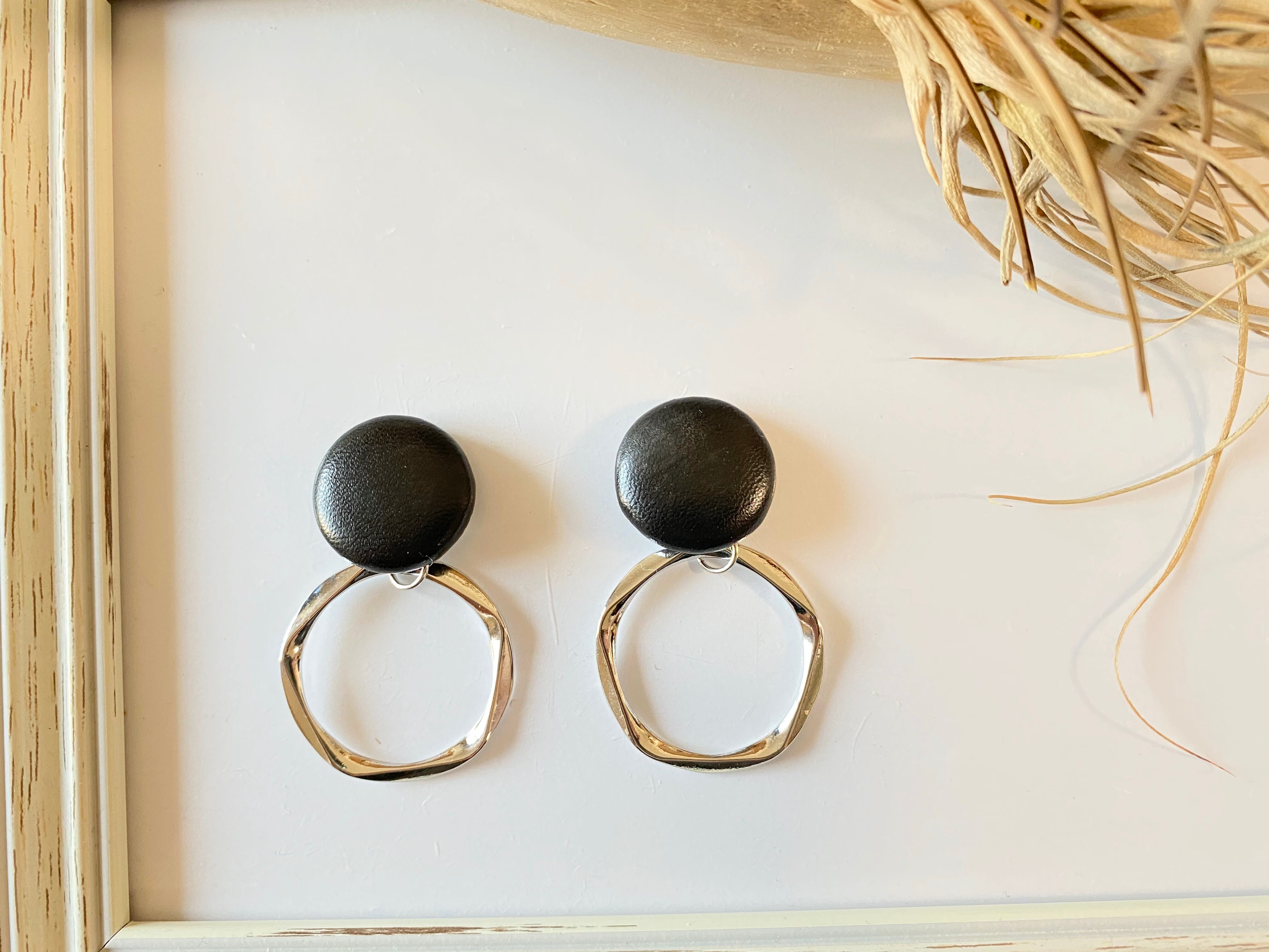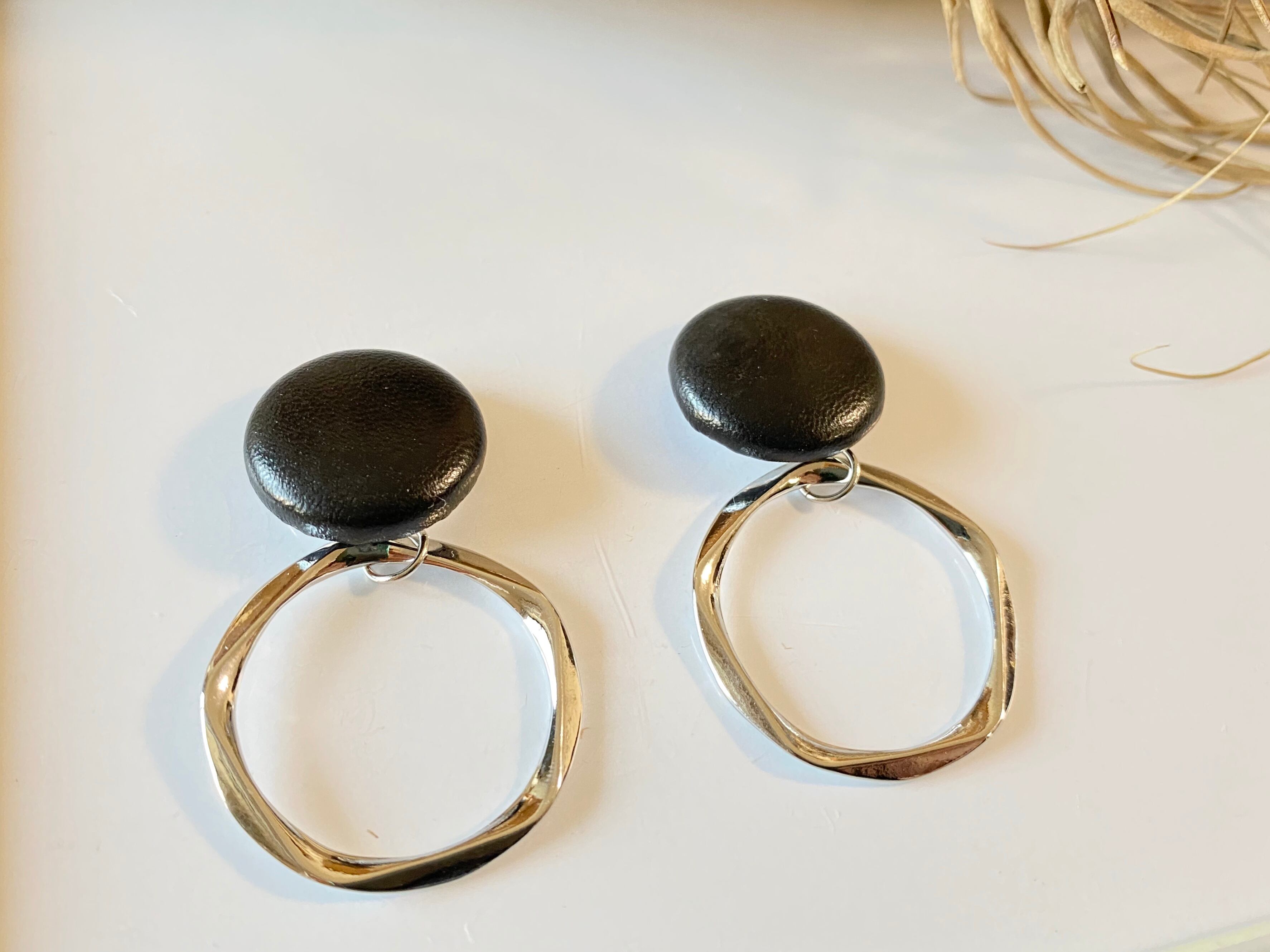 【イヤリングのみ】シルバーリング✖️ブラックレザー