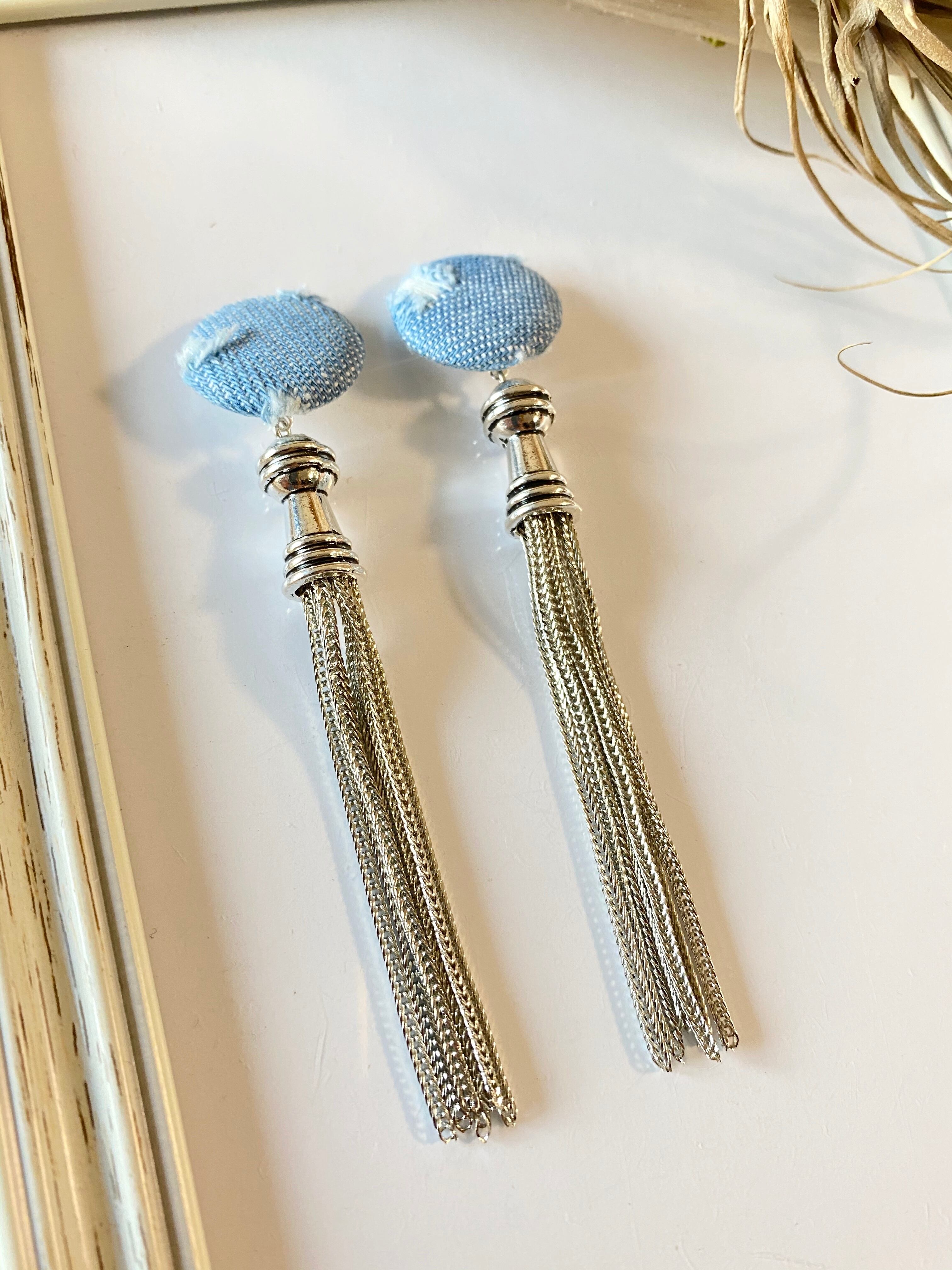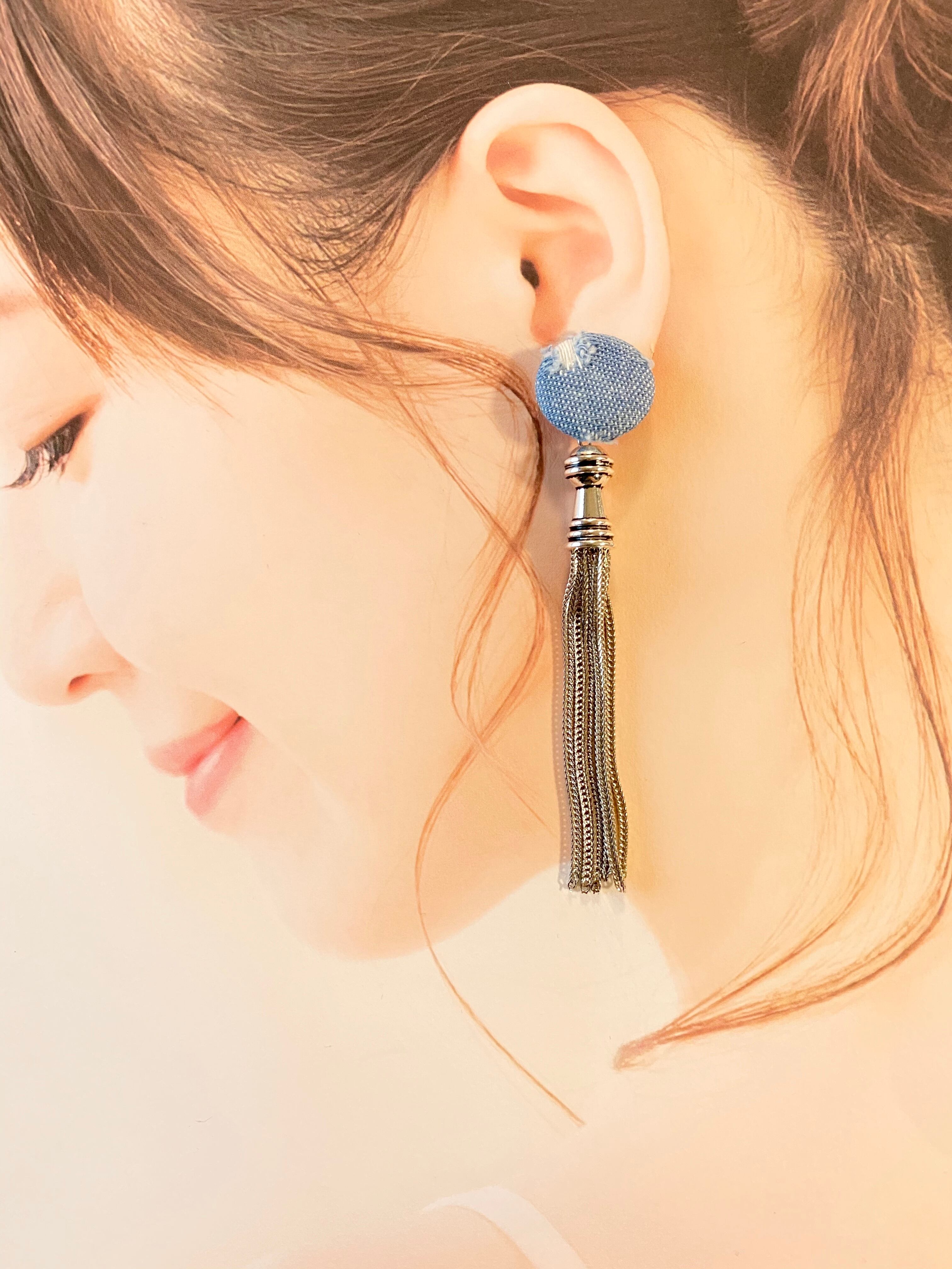 【ピアスorイヤリング】ダメージデニム✖️シルバーロングタッセル