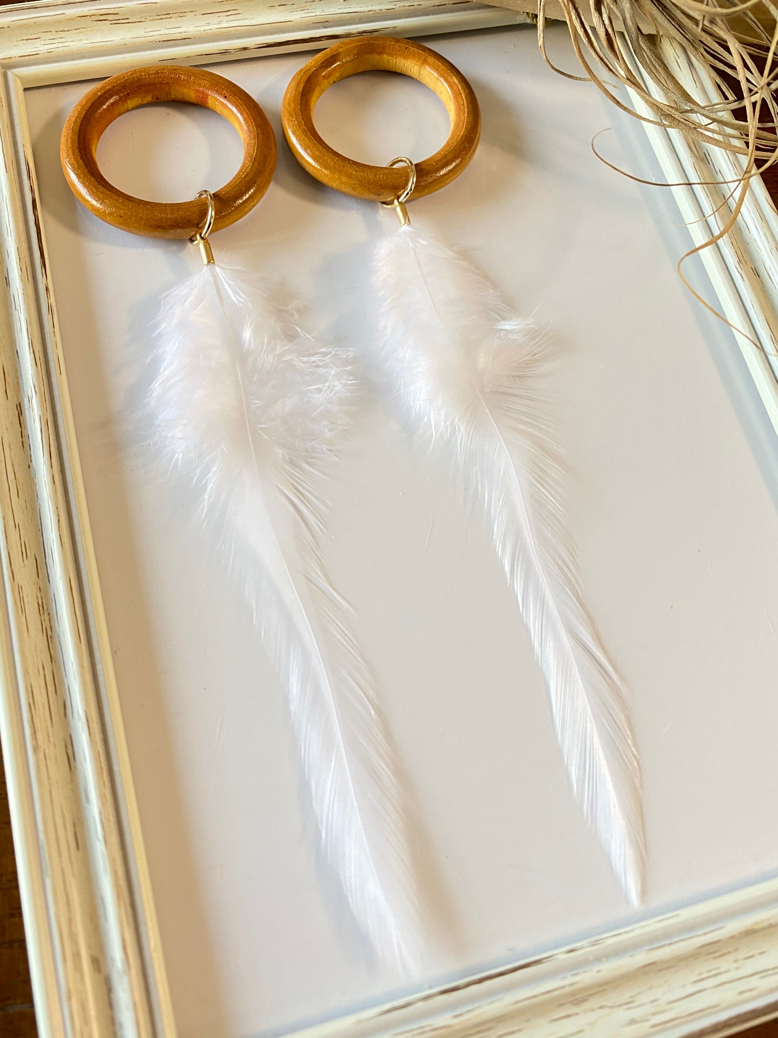 【ピアスorイヤリング】ウッドリング✖️ホワイトフェザー