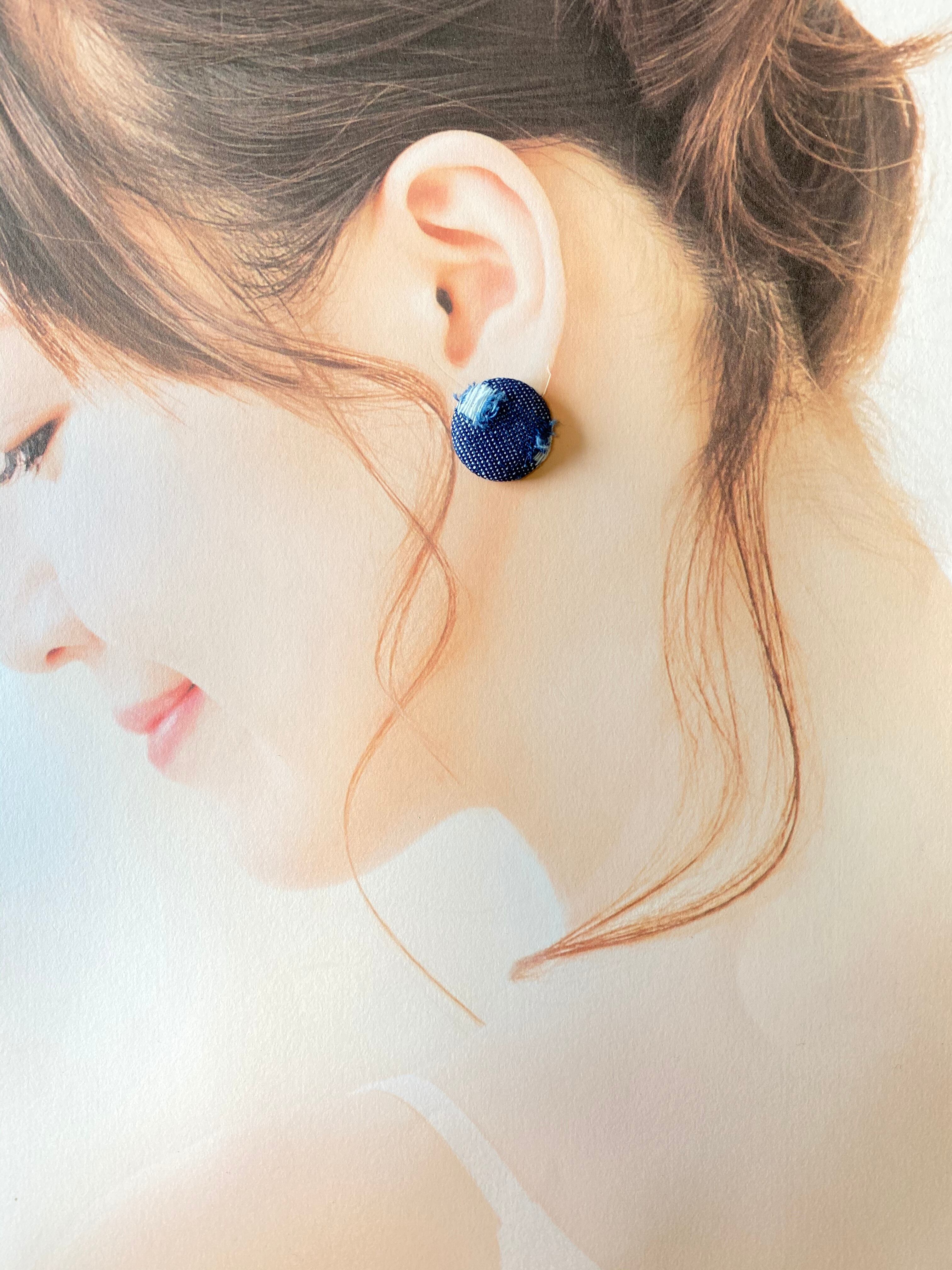 【ピアスorイヤリング】ダメージデニム(直径2cm)