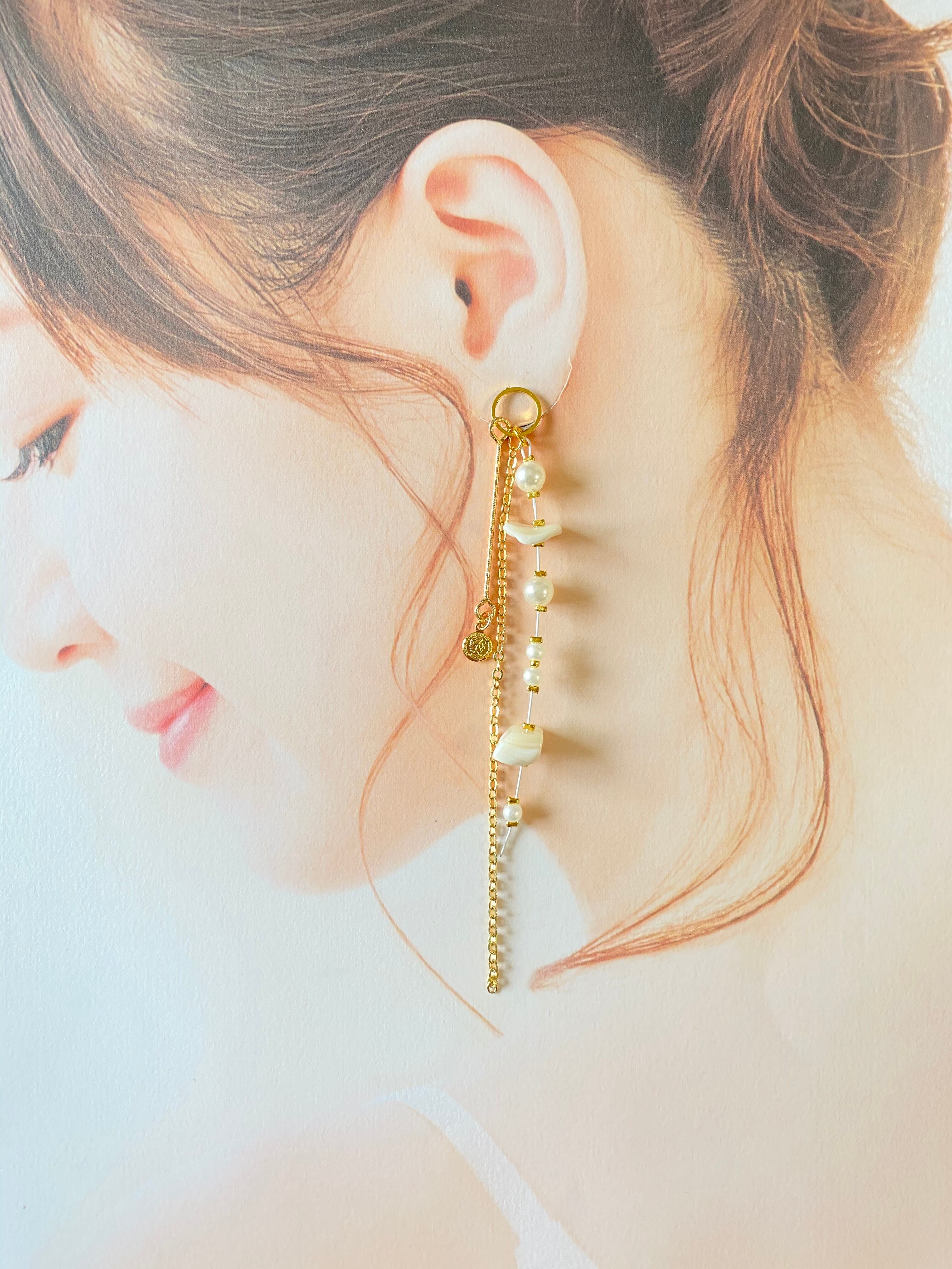 【ピアスorイヤリング】パール✖️シェル✖️ゴールド