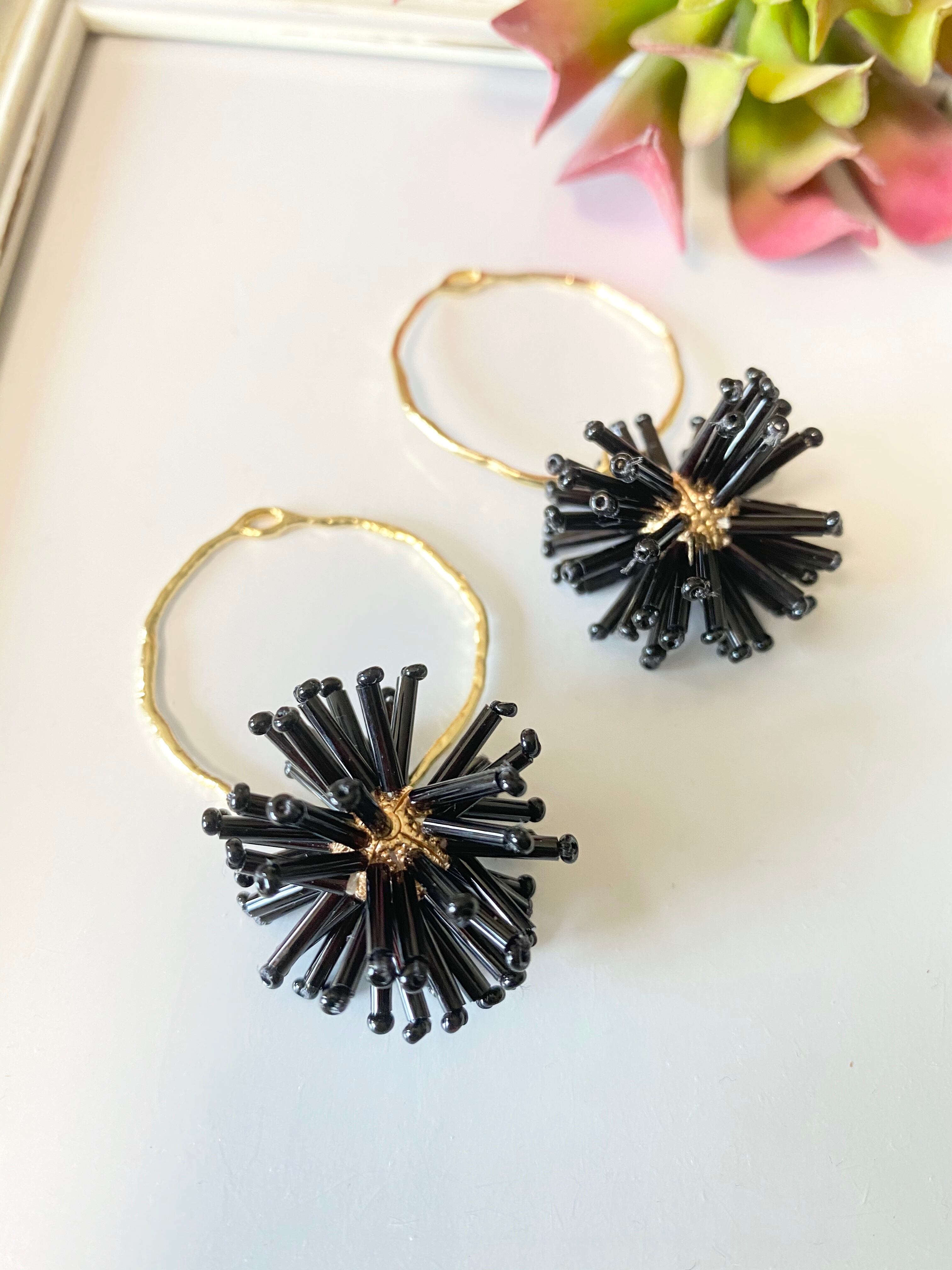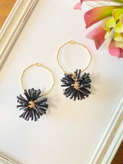 【ピアスorイヤリング】ブラックビーズフラワー✖️ゴールドリング
