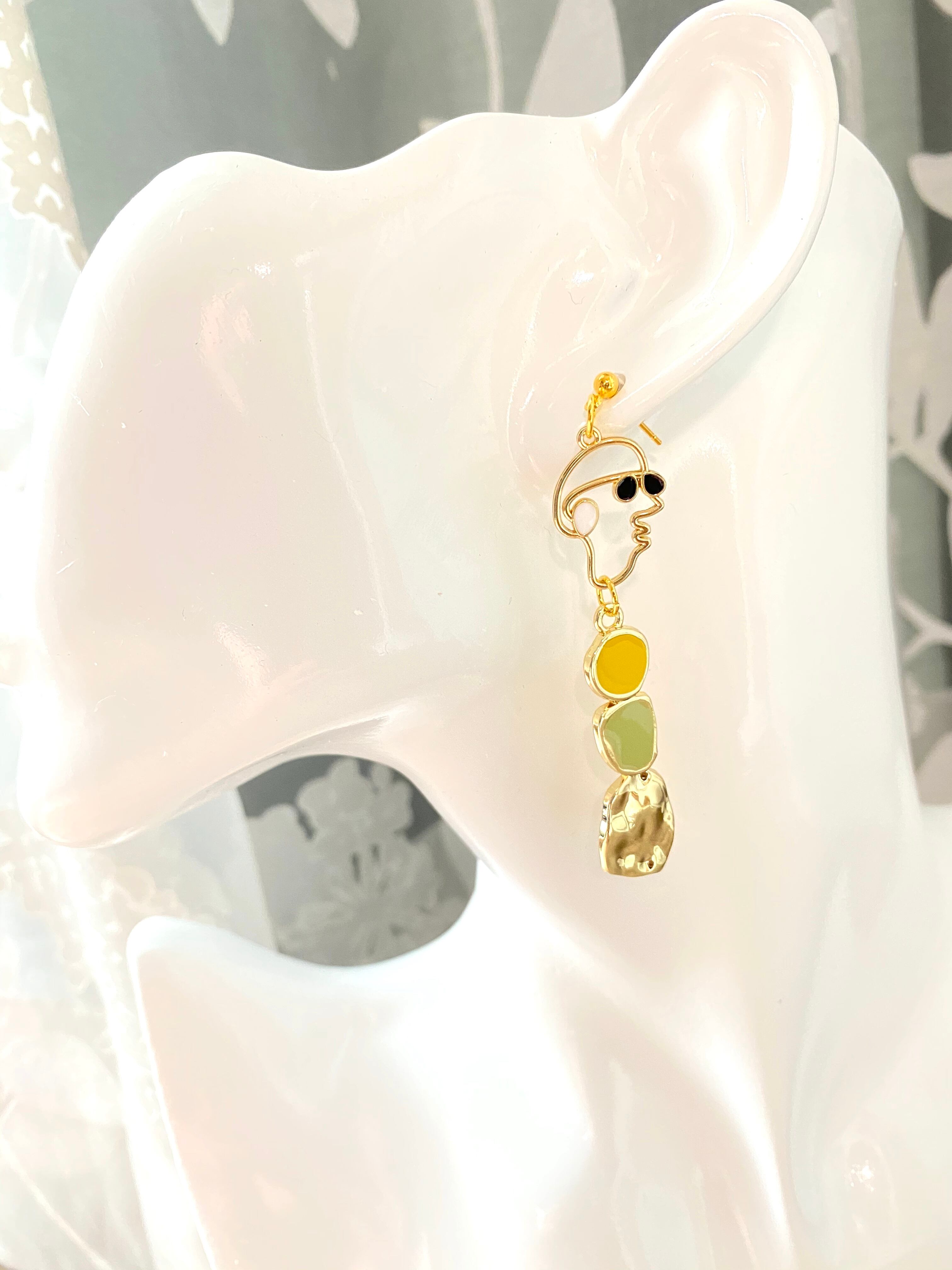 【ピアスorイヤリング】顔✖️グリーン✖️イエロー