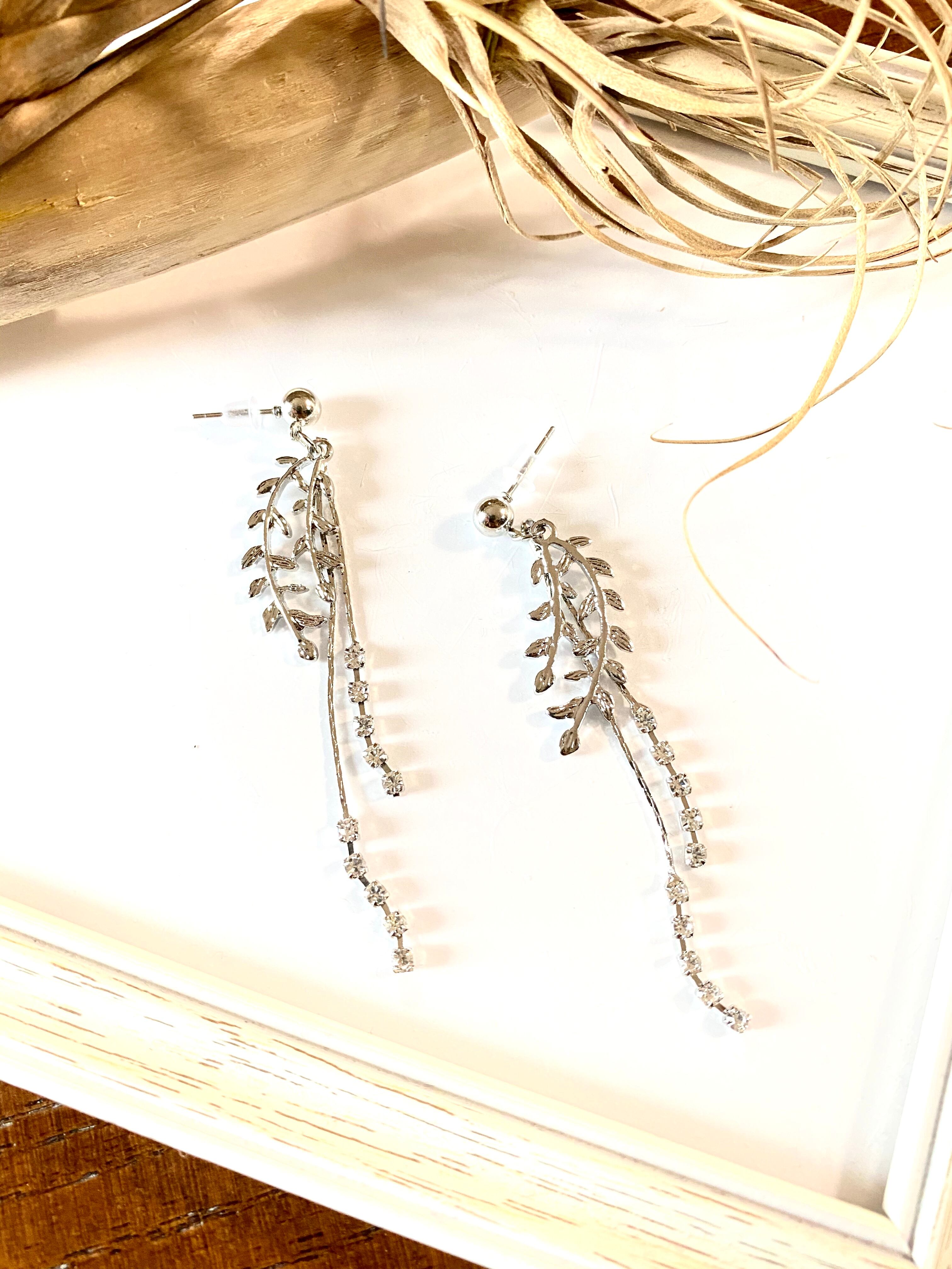 【ピアスorイヤリング】シルバーリーフ✖️ビジューチャーム