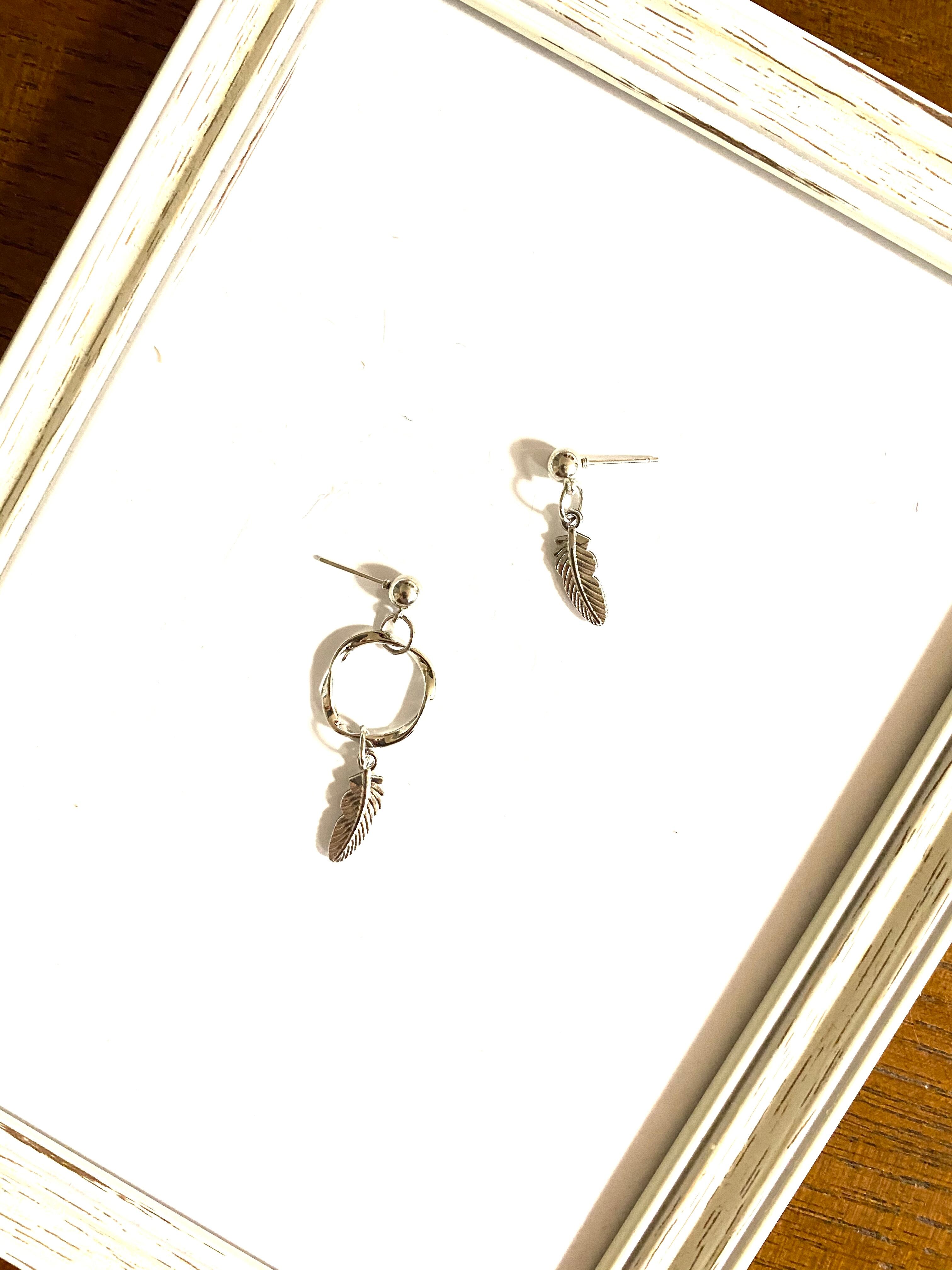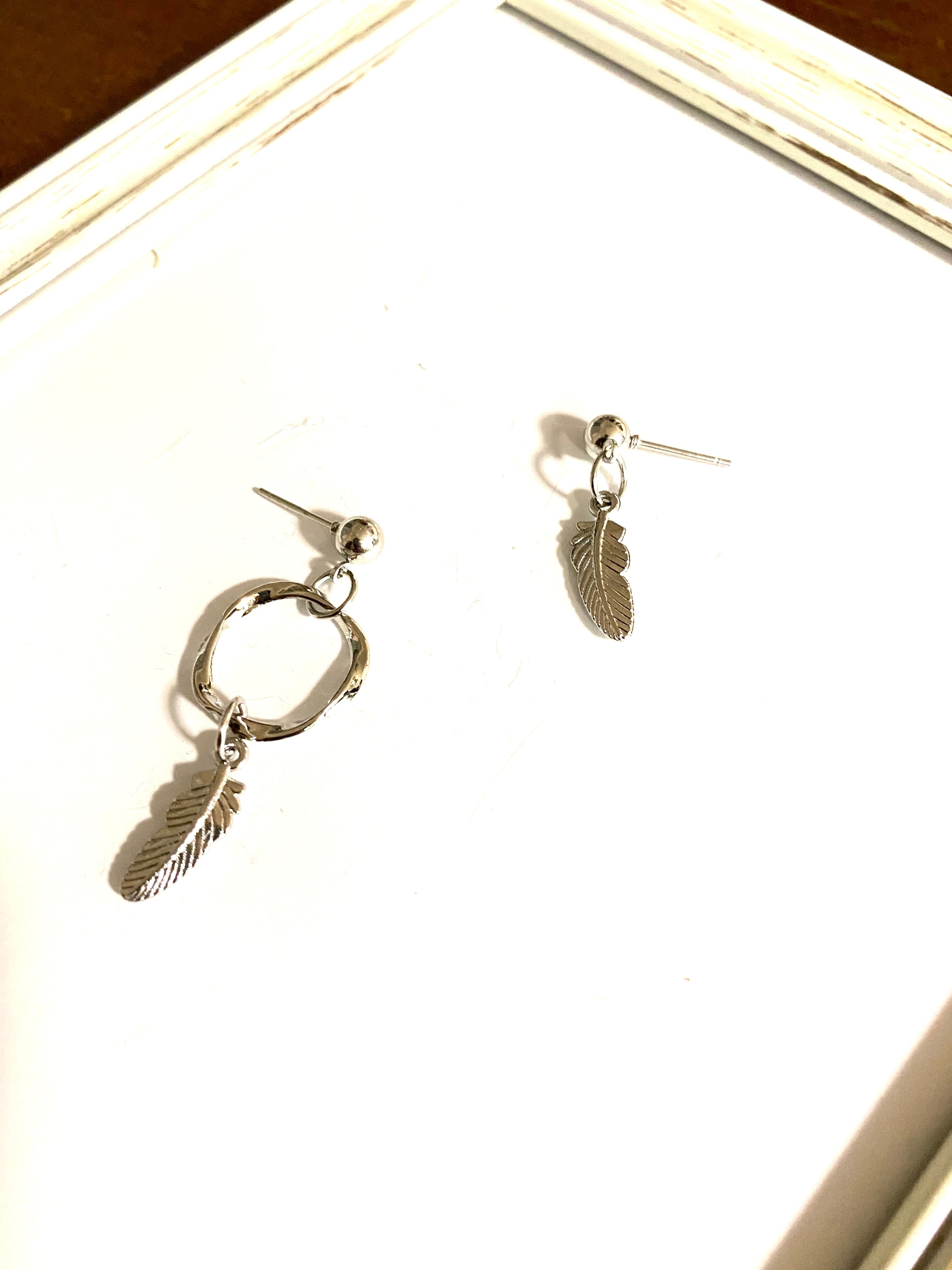 【ピアスorイヤリング】シルバーフェザー小ぶりアシメ