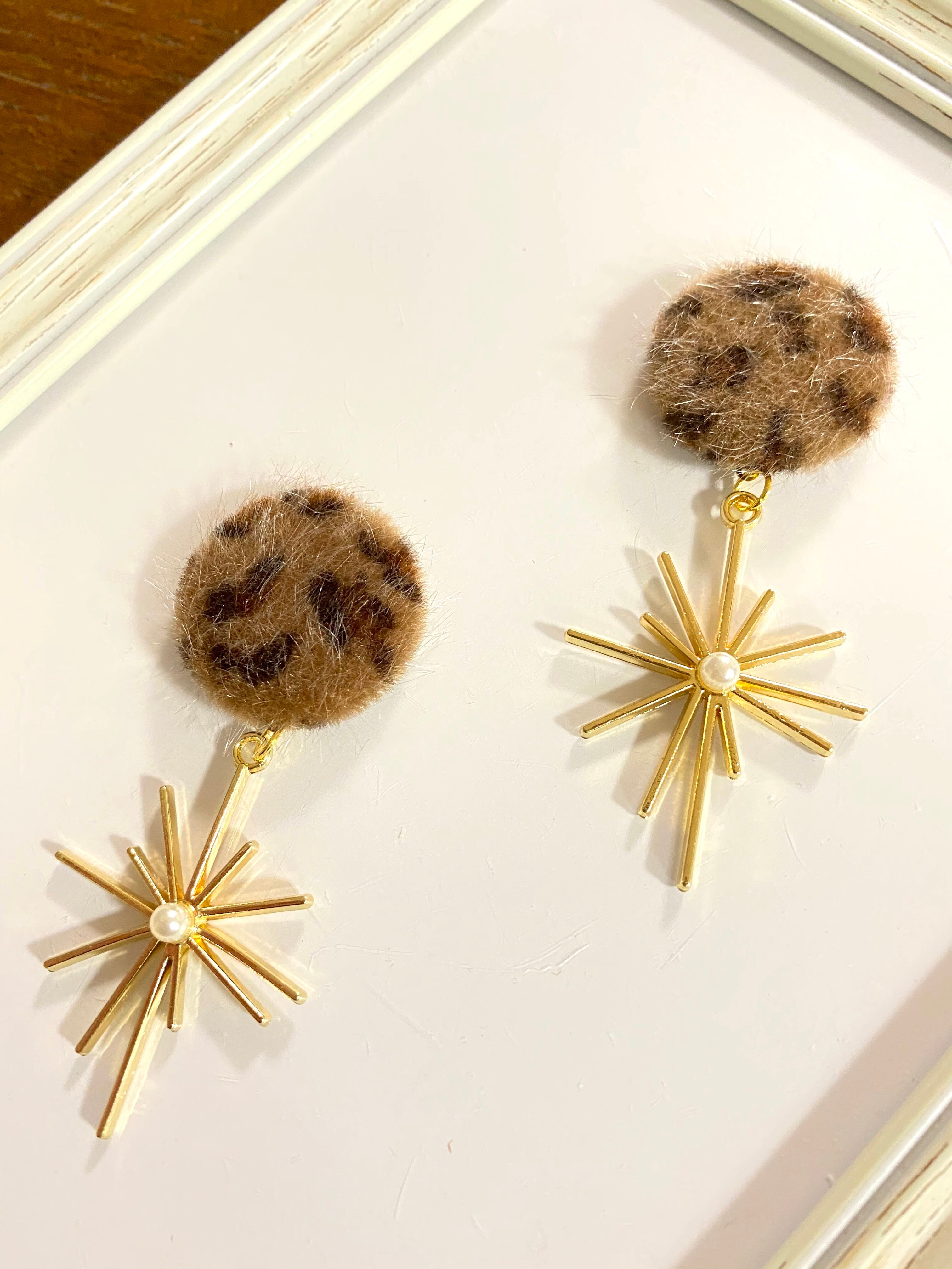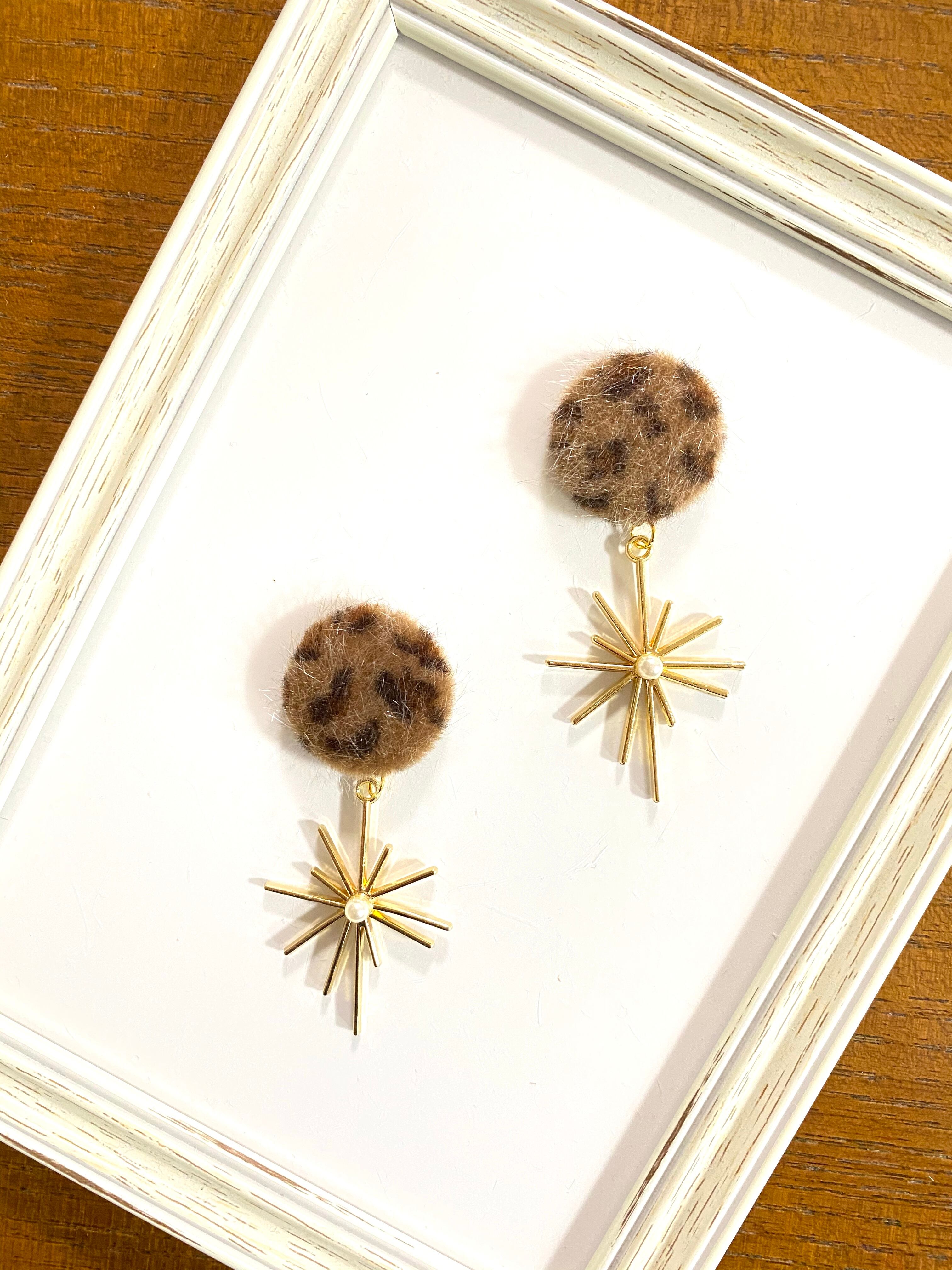 【ピアスorイヤリング】ヒョウ柄と星