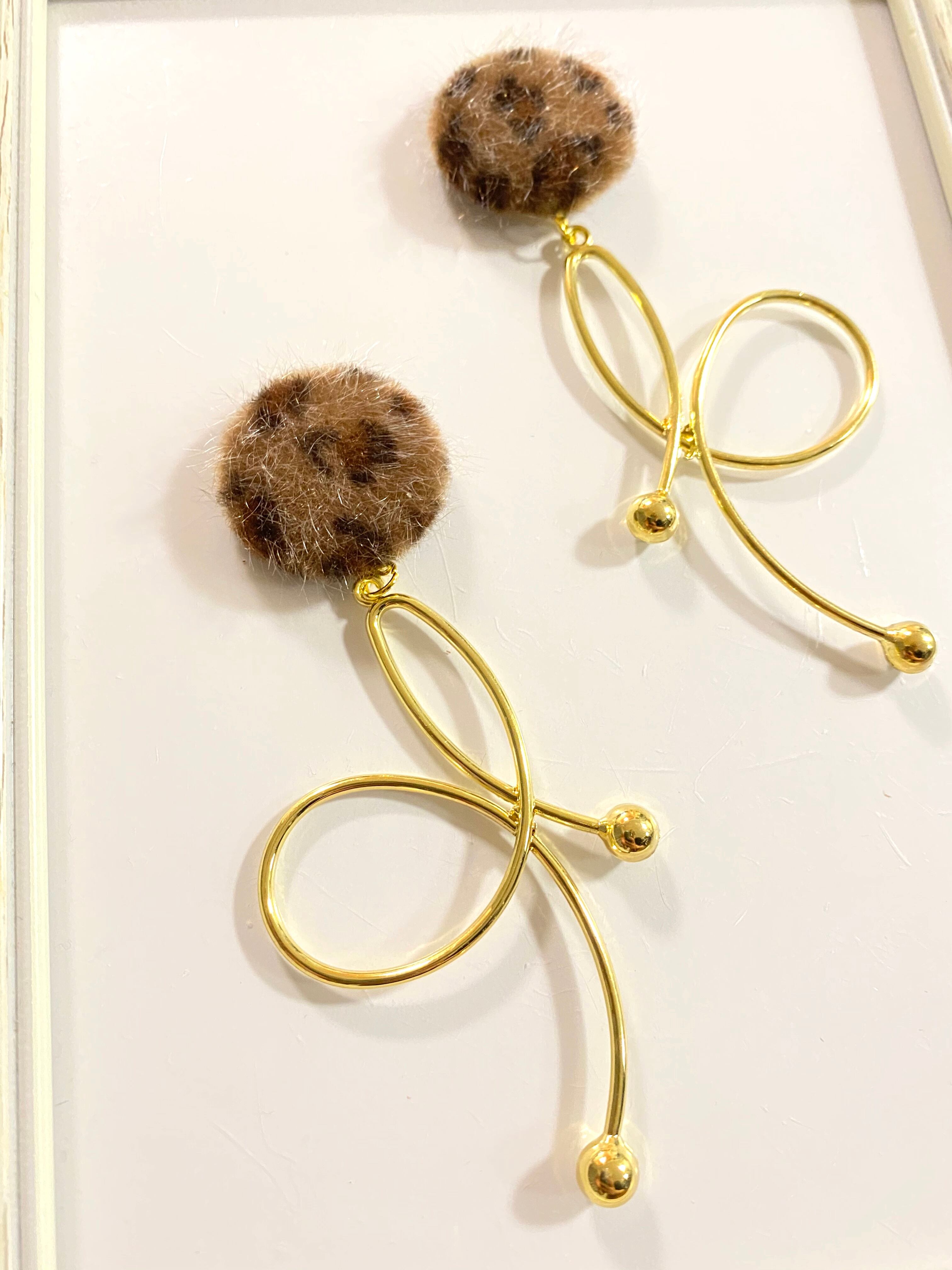 【ピアスorイヤリング】ヒョウ柄とリボン