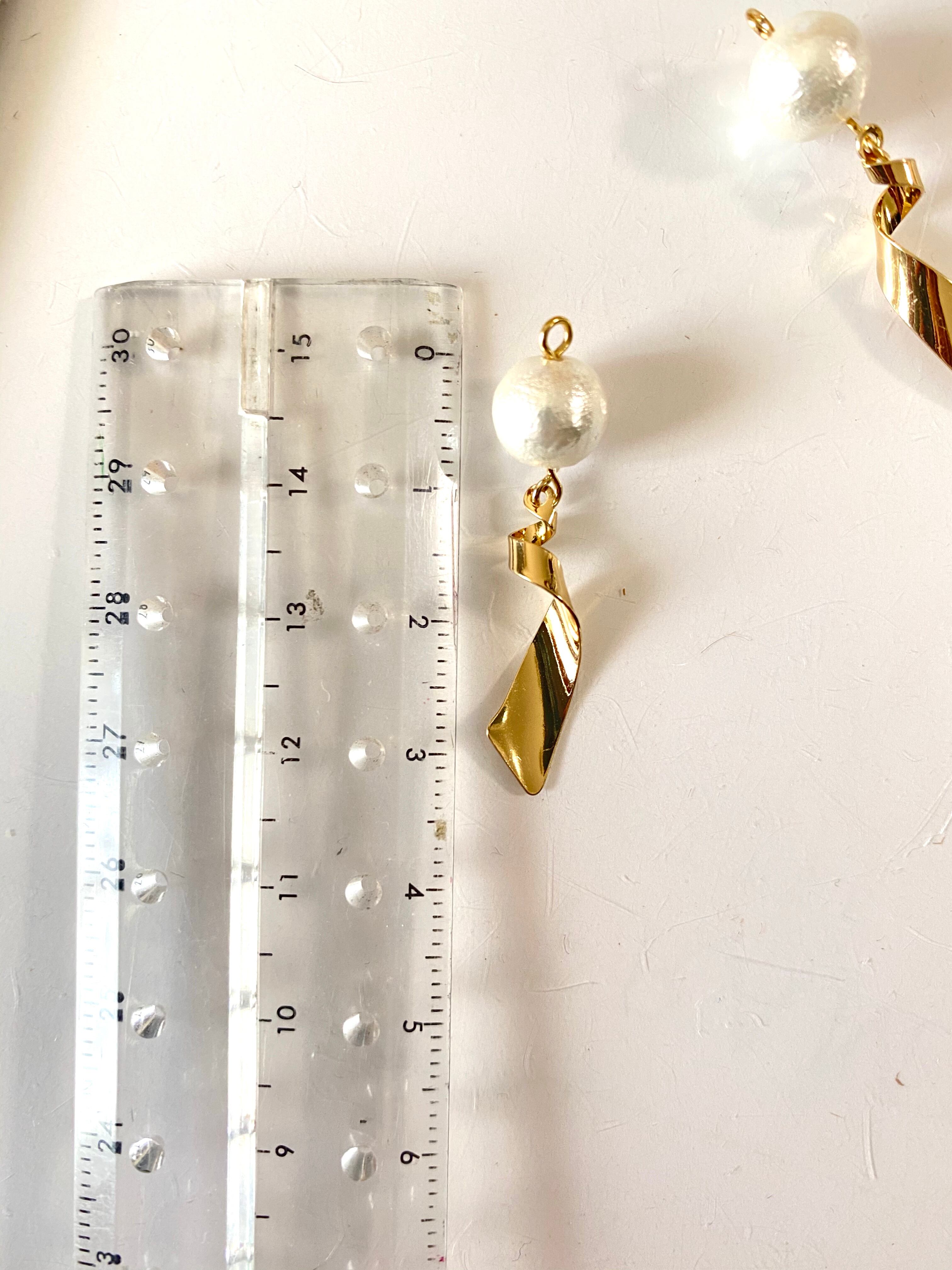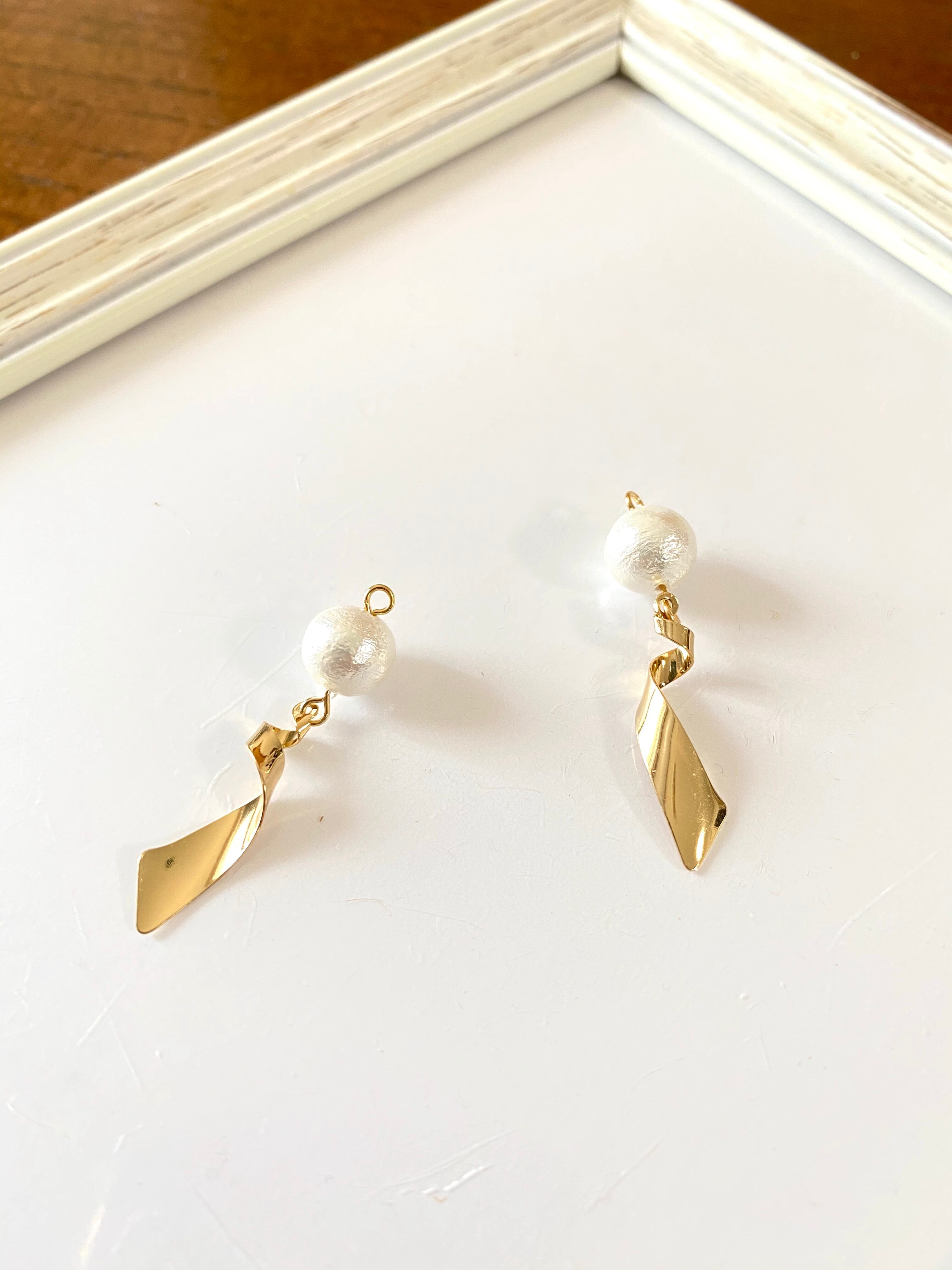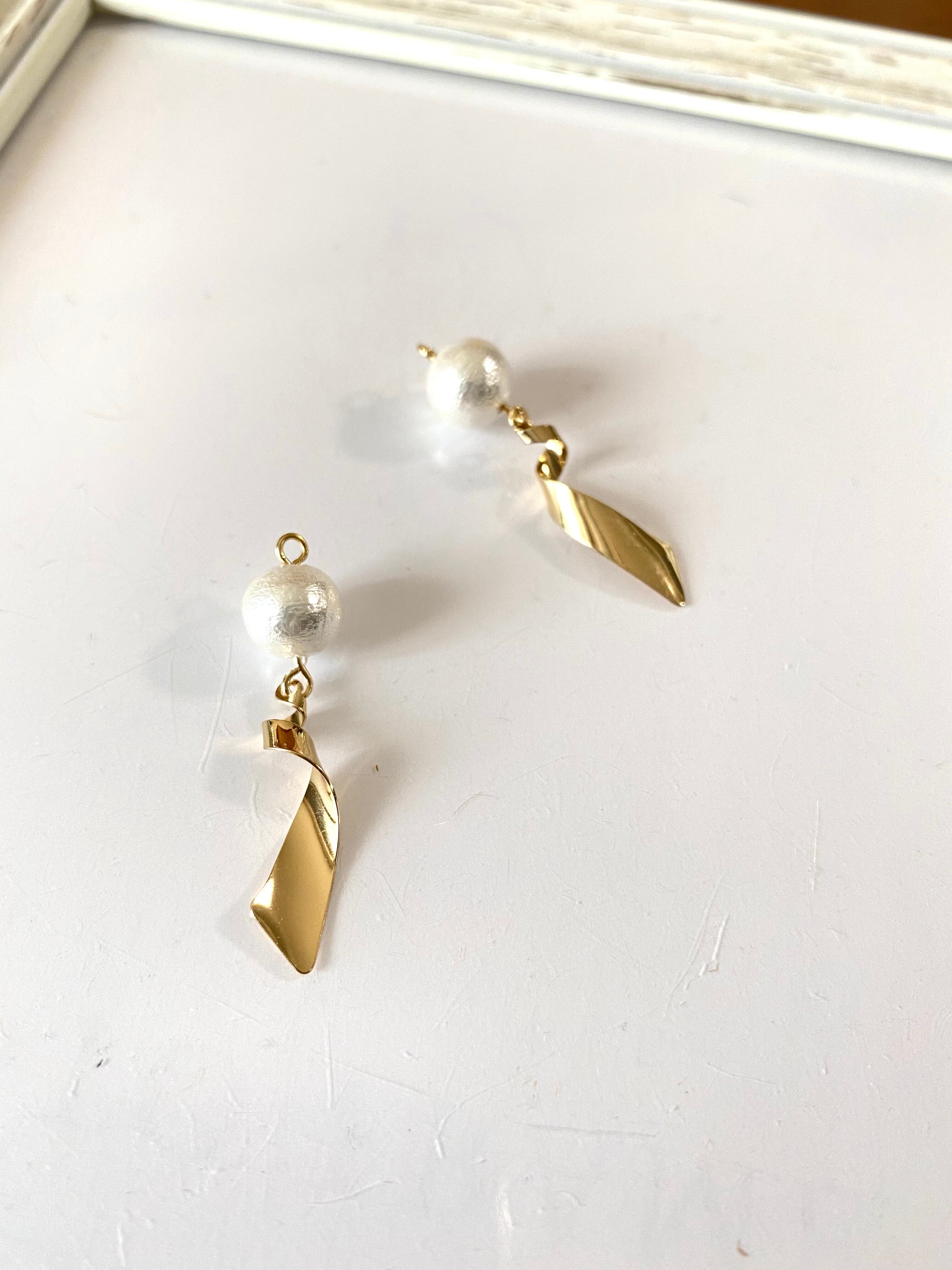 【ピアスorイヤリング】コットンパールとゴールドツイストチャーム