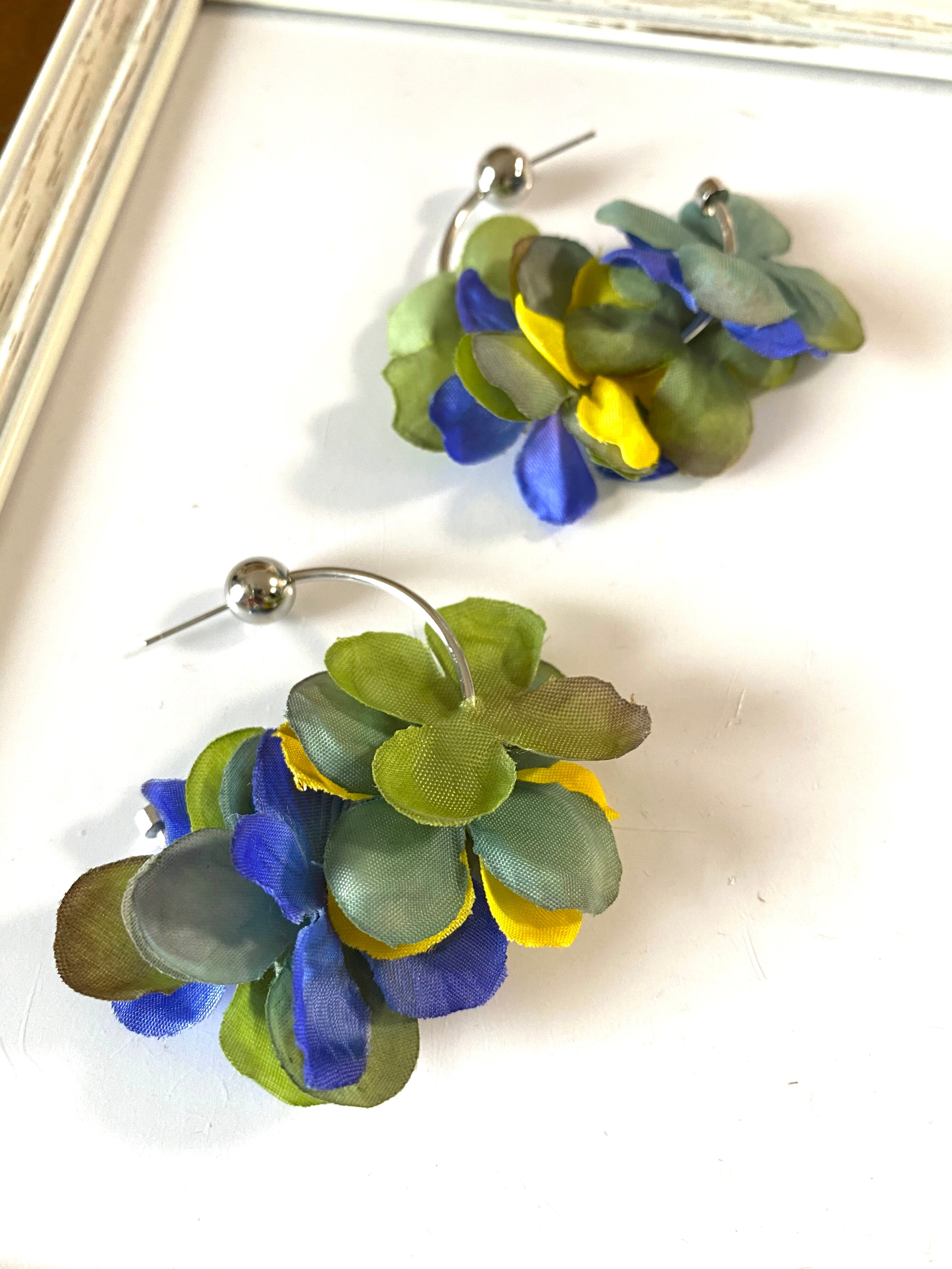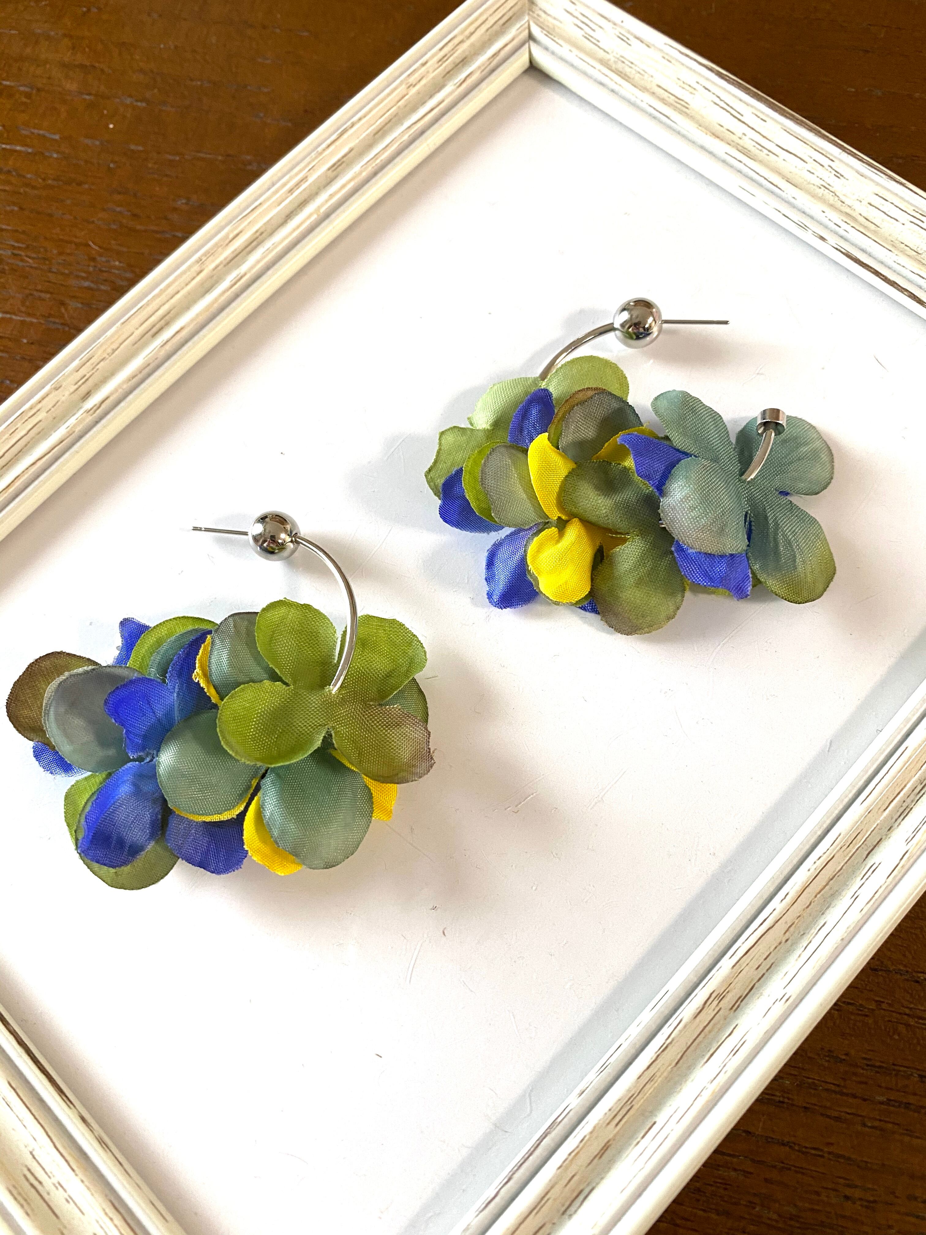 【ピアスorイヤリング】紫陽花ブルー✖️グリーン✖️イエロー
