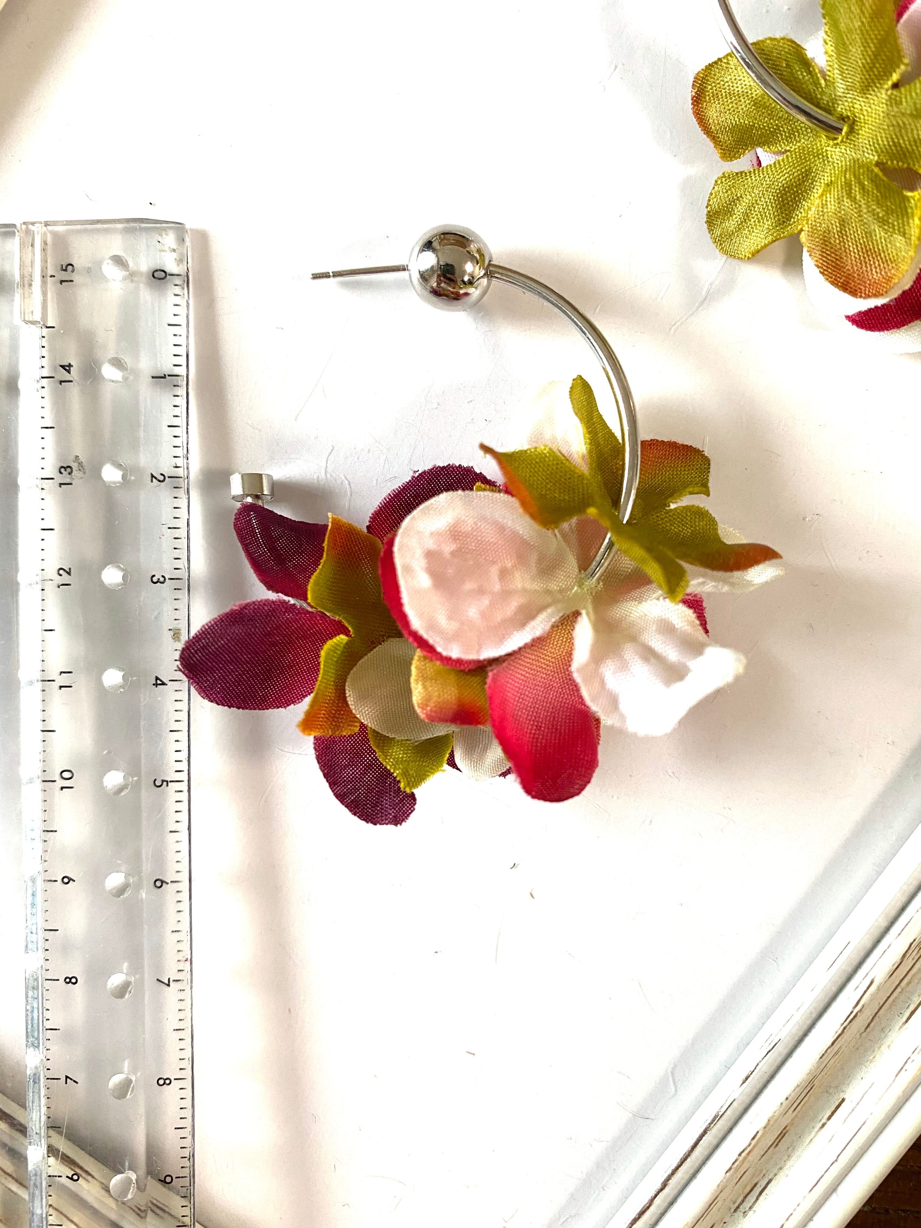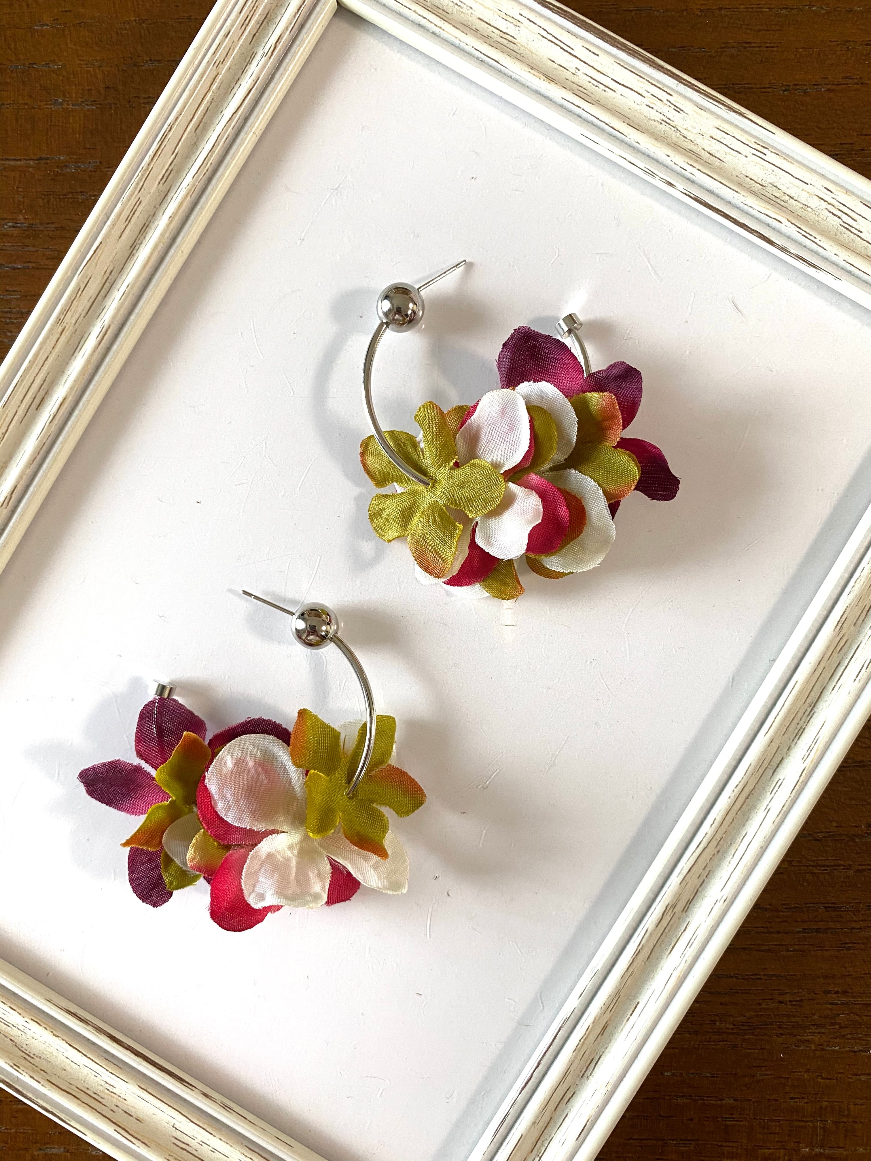 【ピアスorイヤリング】紫陽花レッド✖️グリーン✖️ホワイト