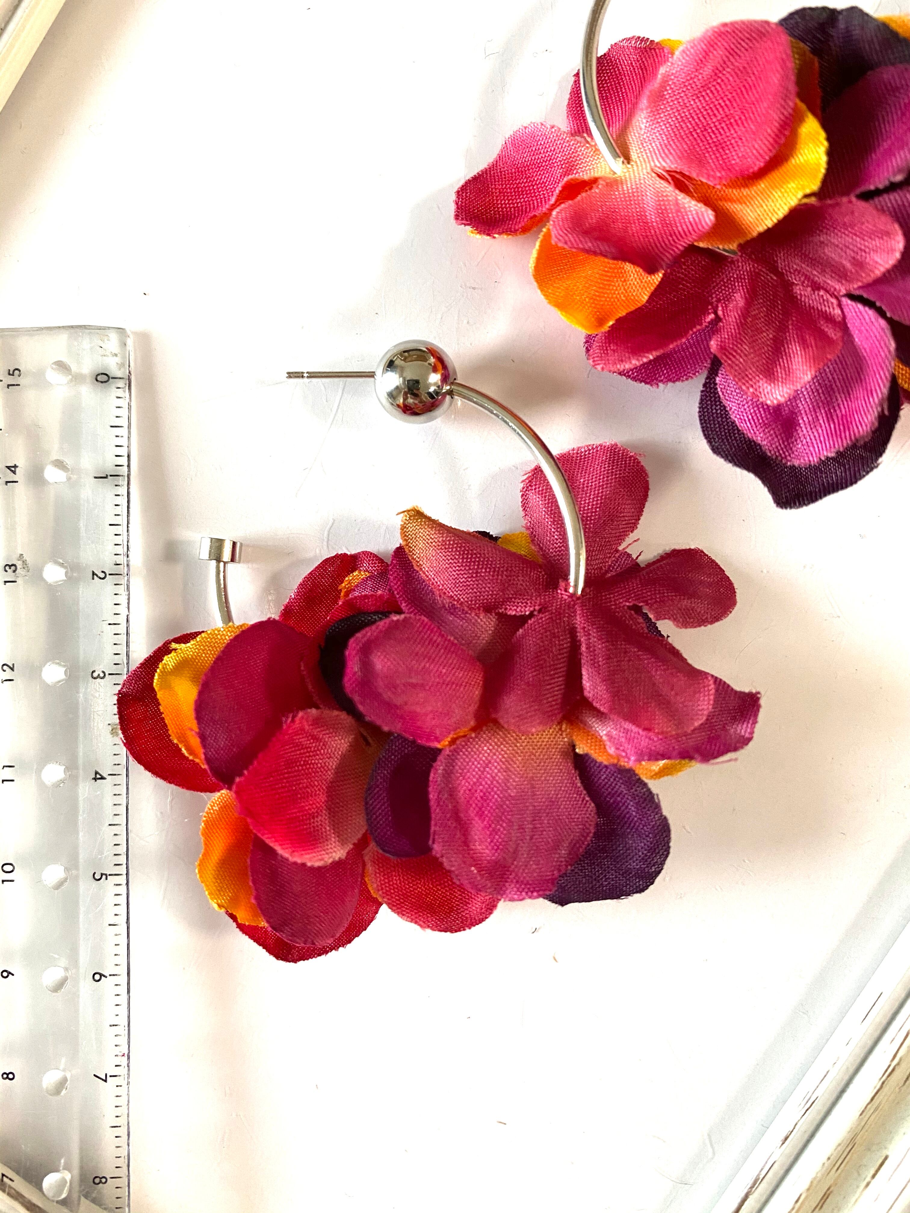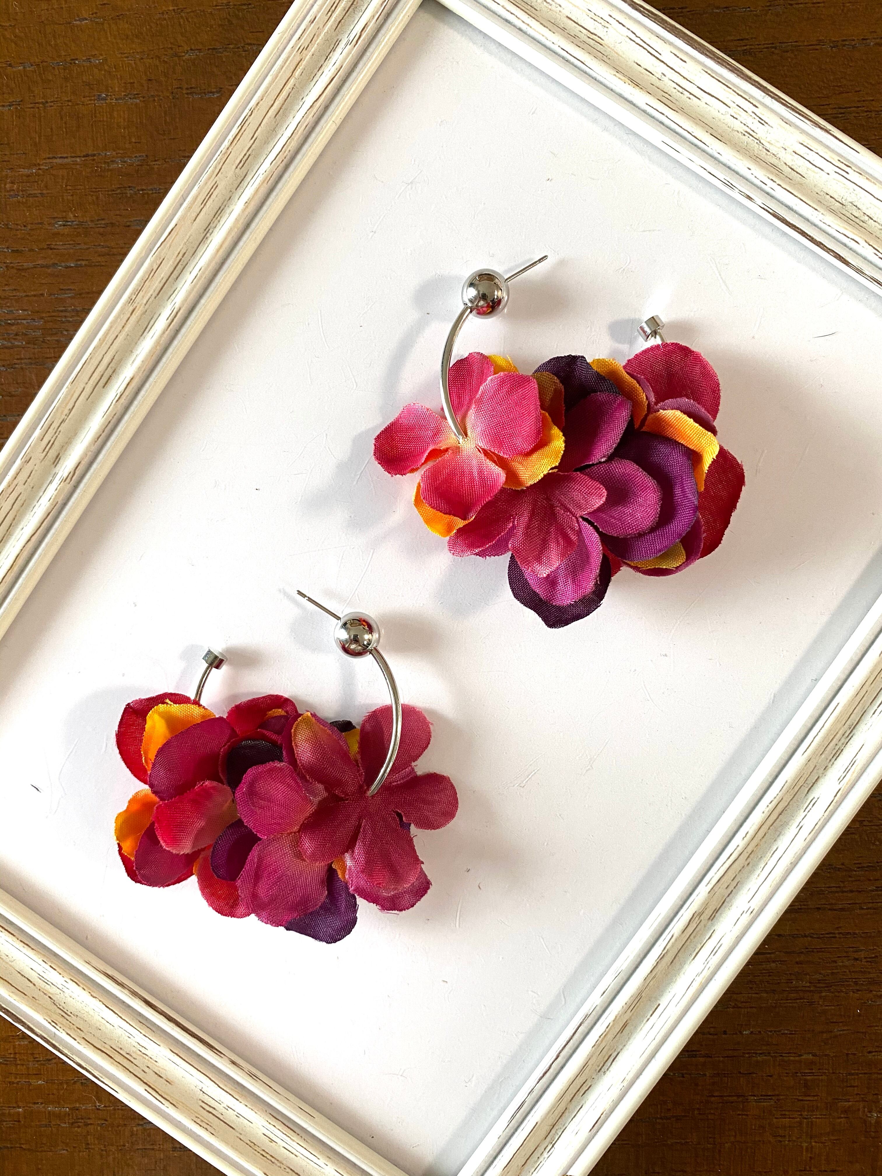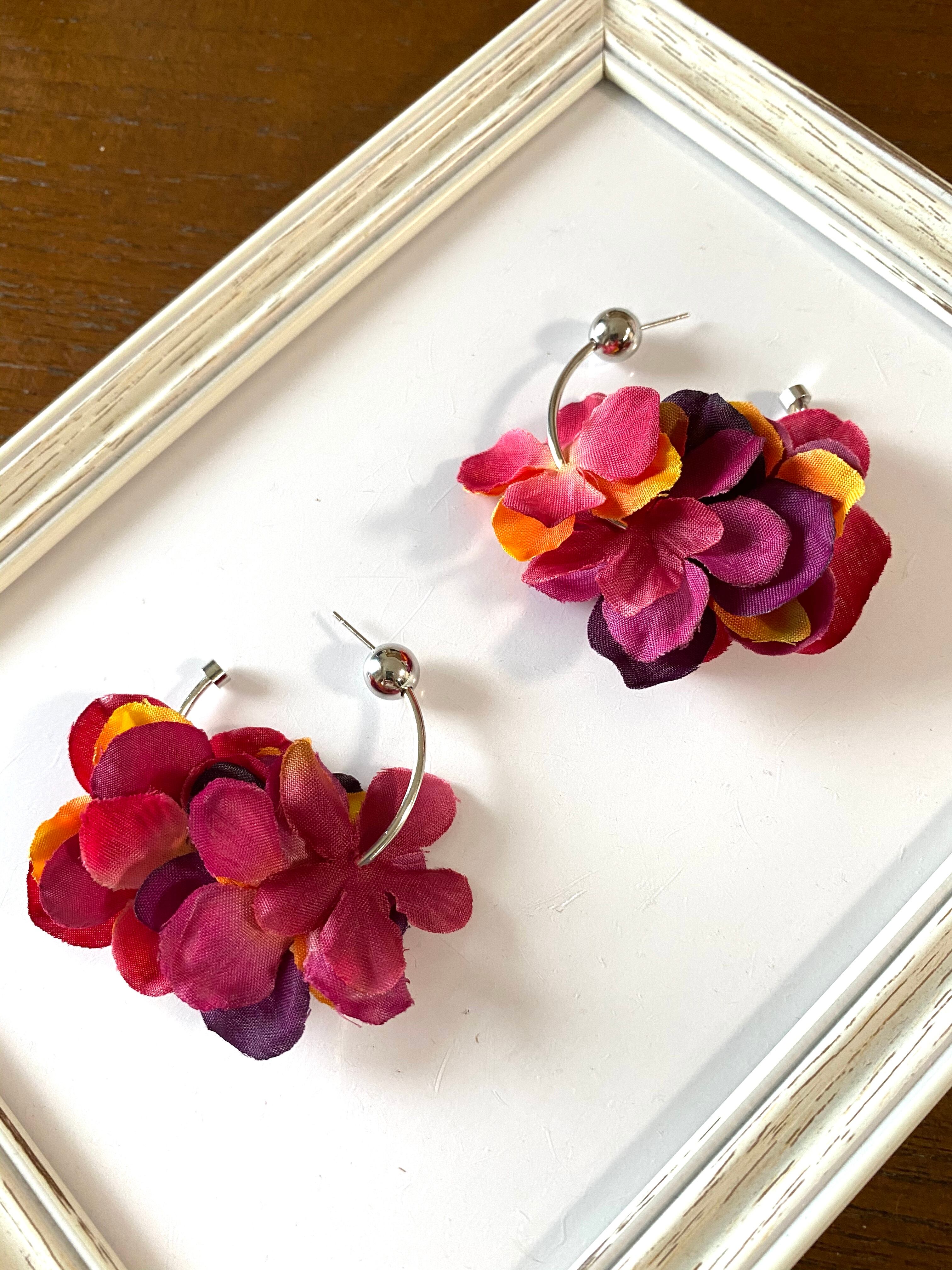 【ピアスorイヤリング】紫陽花ワインレッド✖️レッド✖️オレンジ