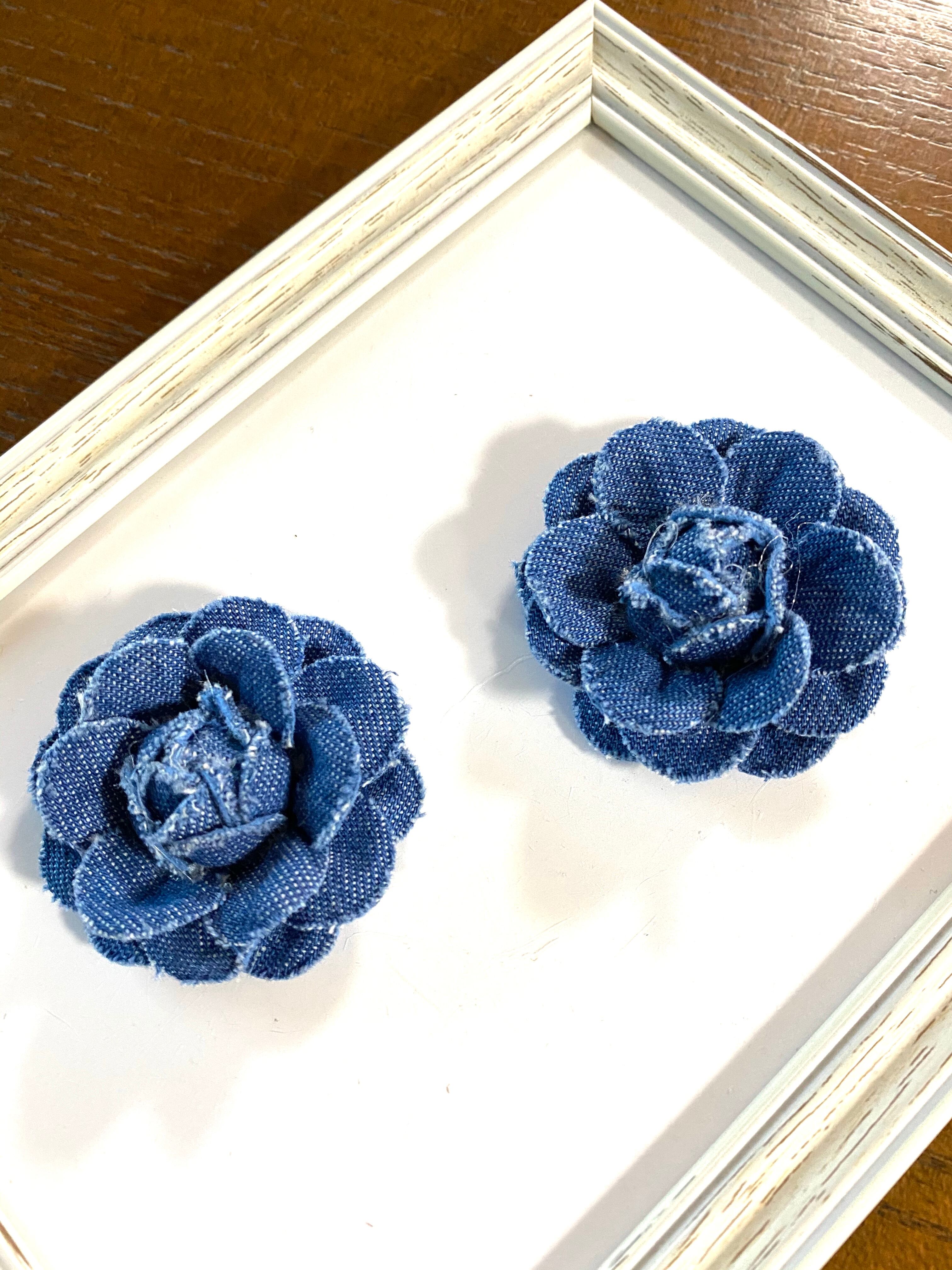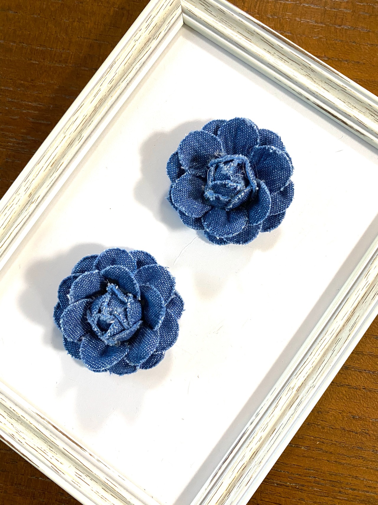 【ピアスorイヤリング】デニムの大きいお花(ブルー)