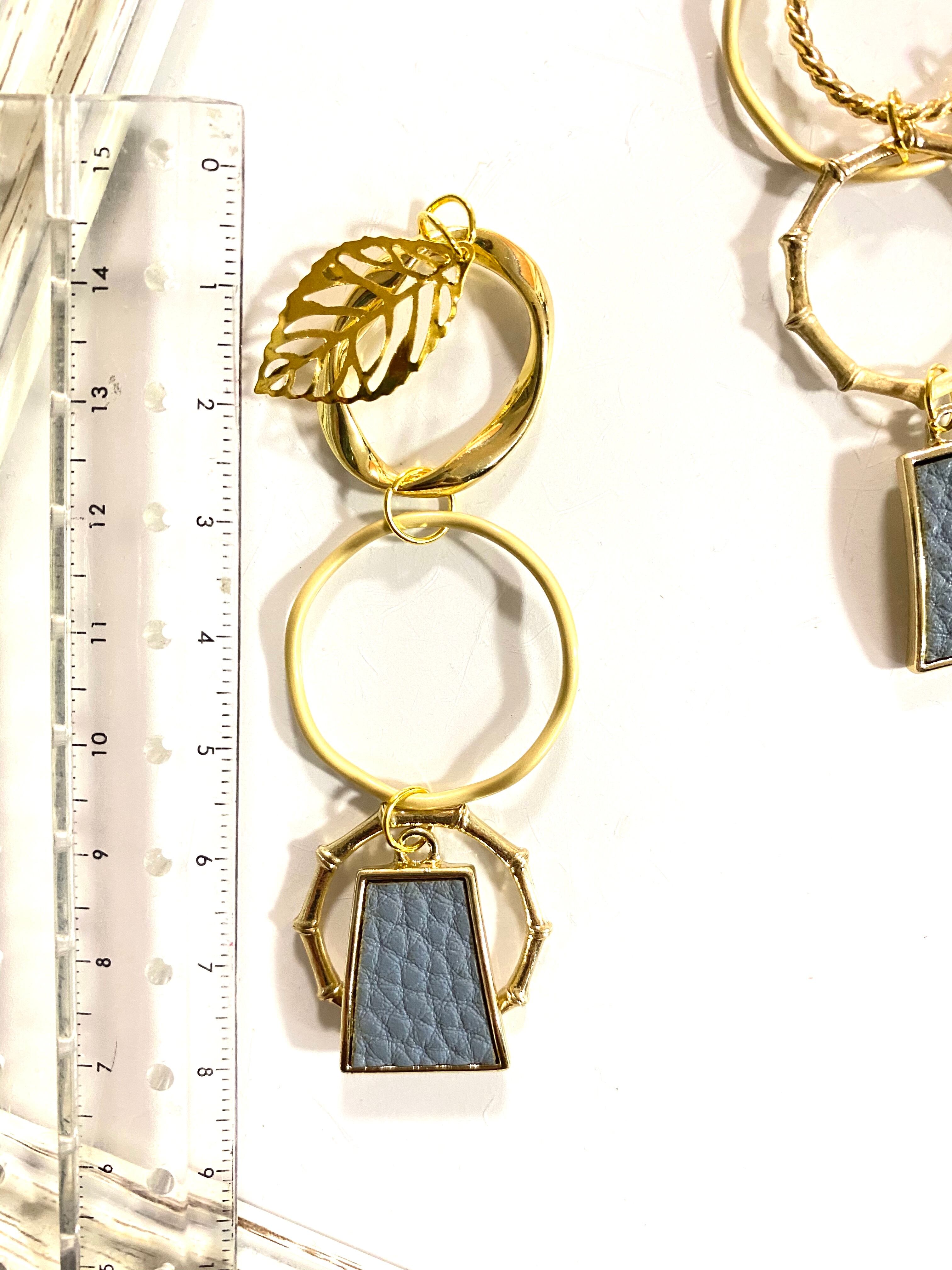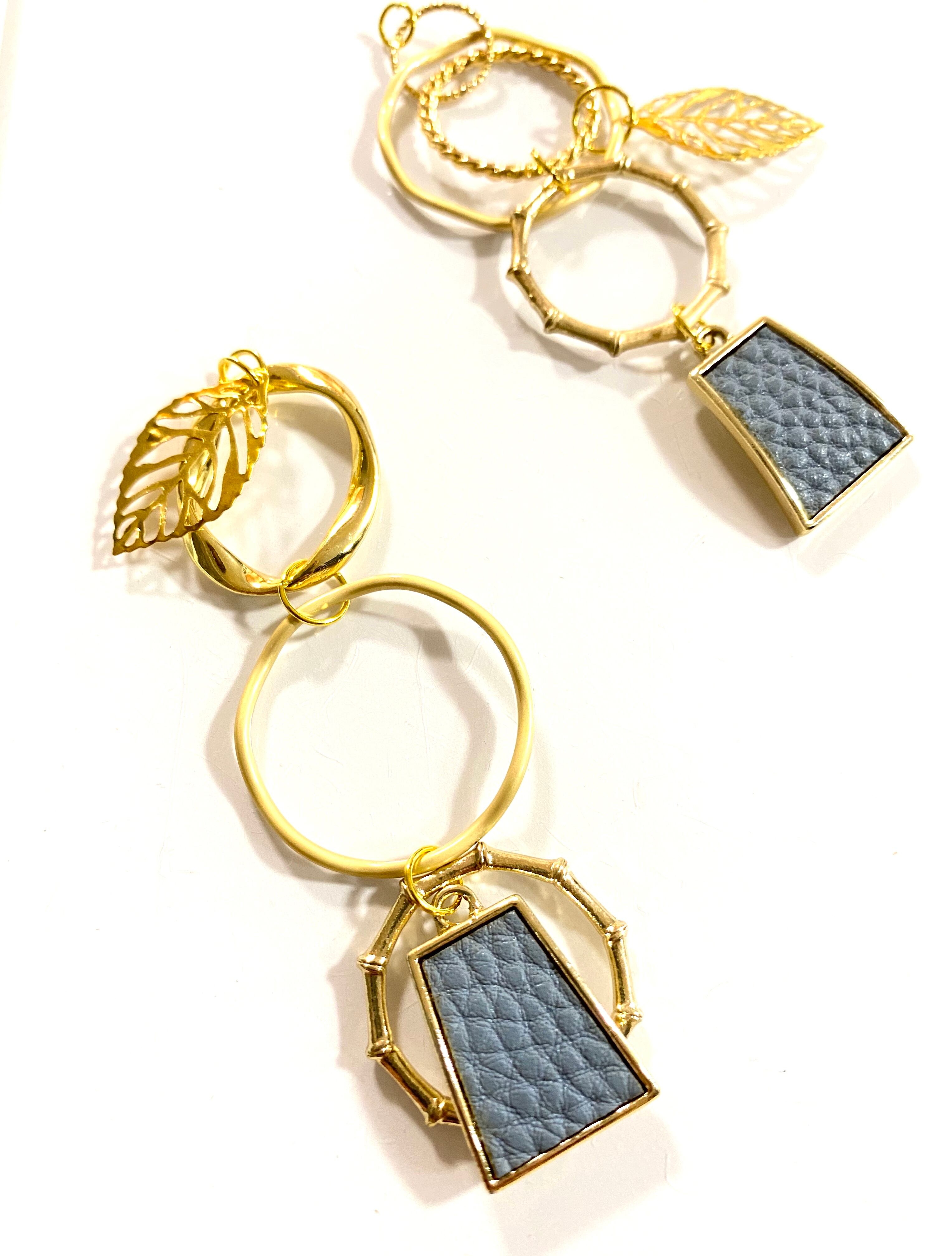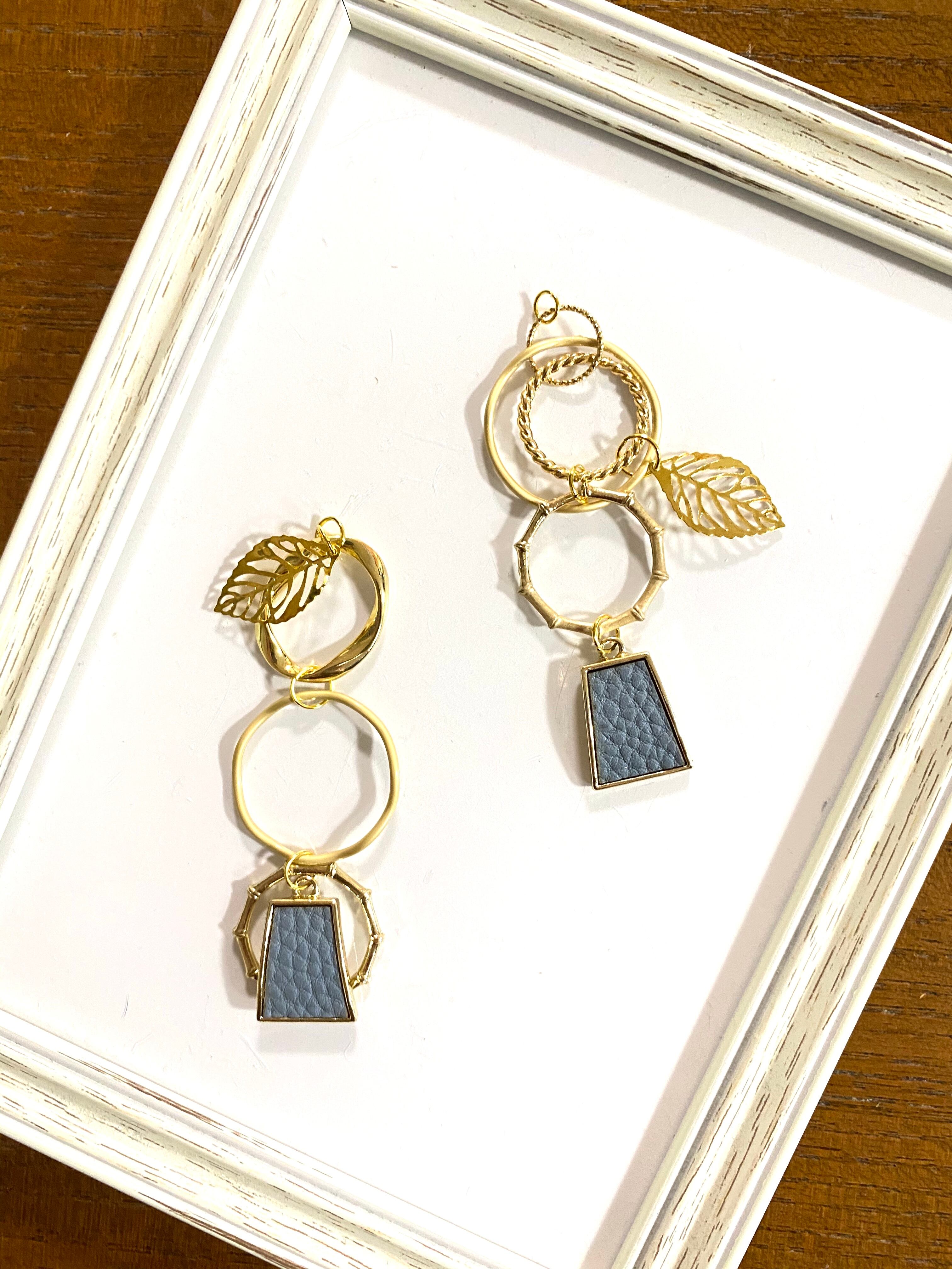 【ピアスorイヤリング】ブルーとゴールドリーフ