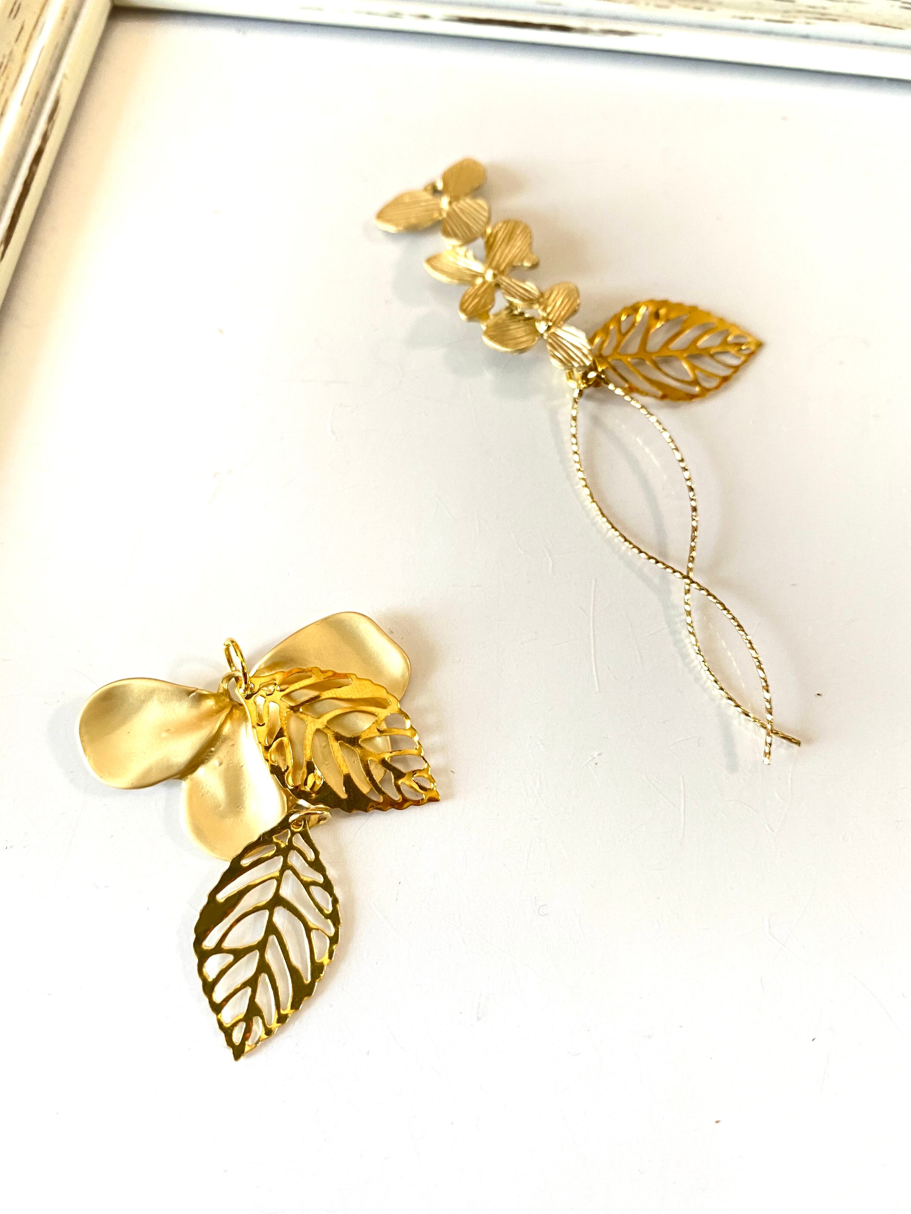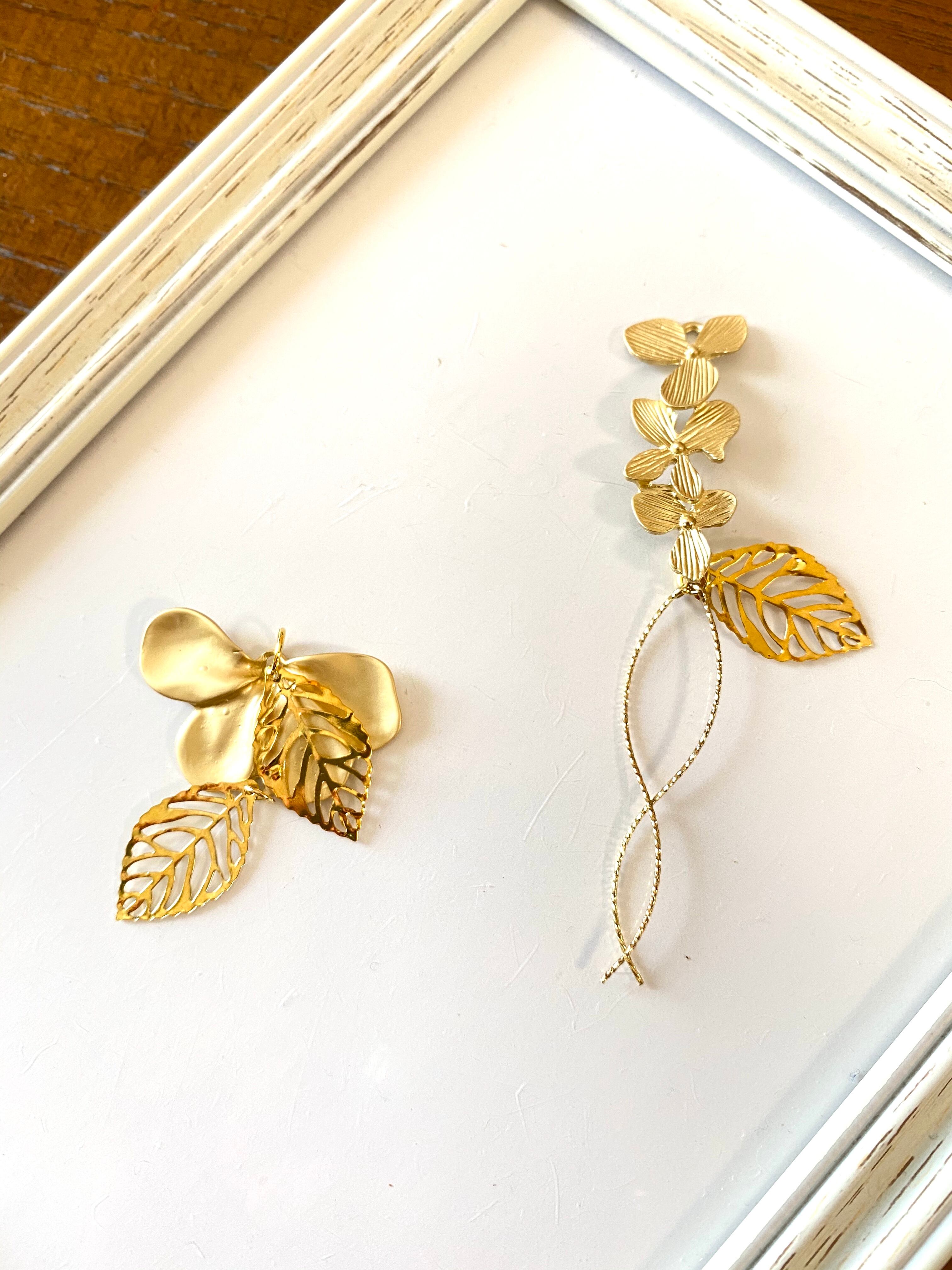 【ピアスorイヤリング】お花と葉のアシメ