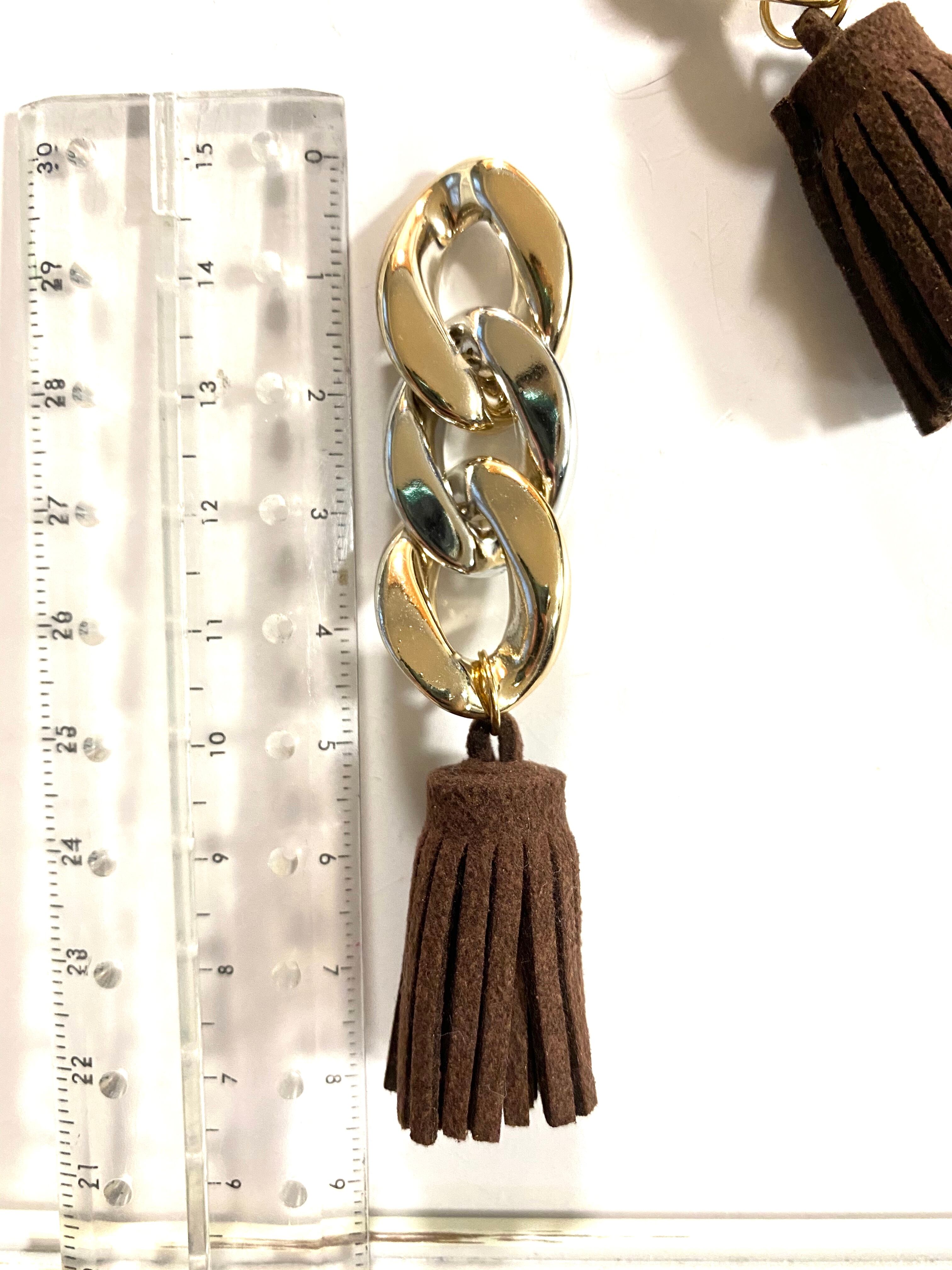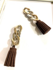 シンプルすぎるゴールドとシルバーの鎖とブラウンタッセル