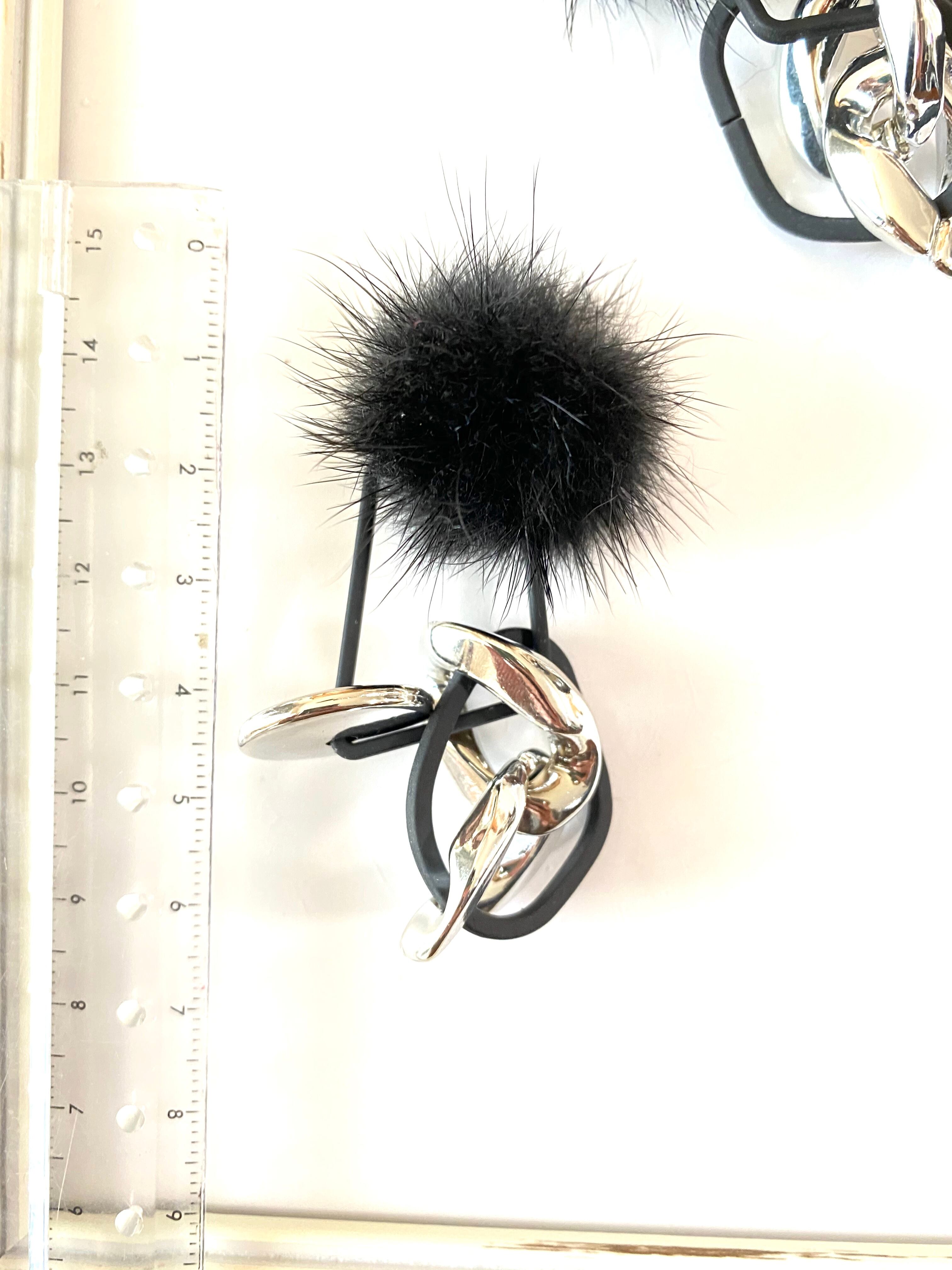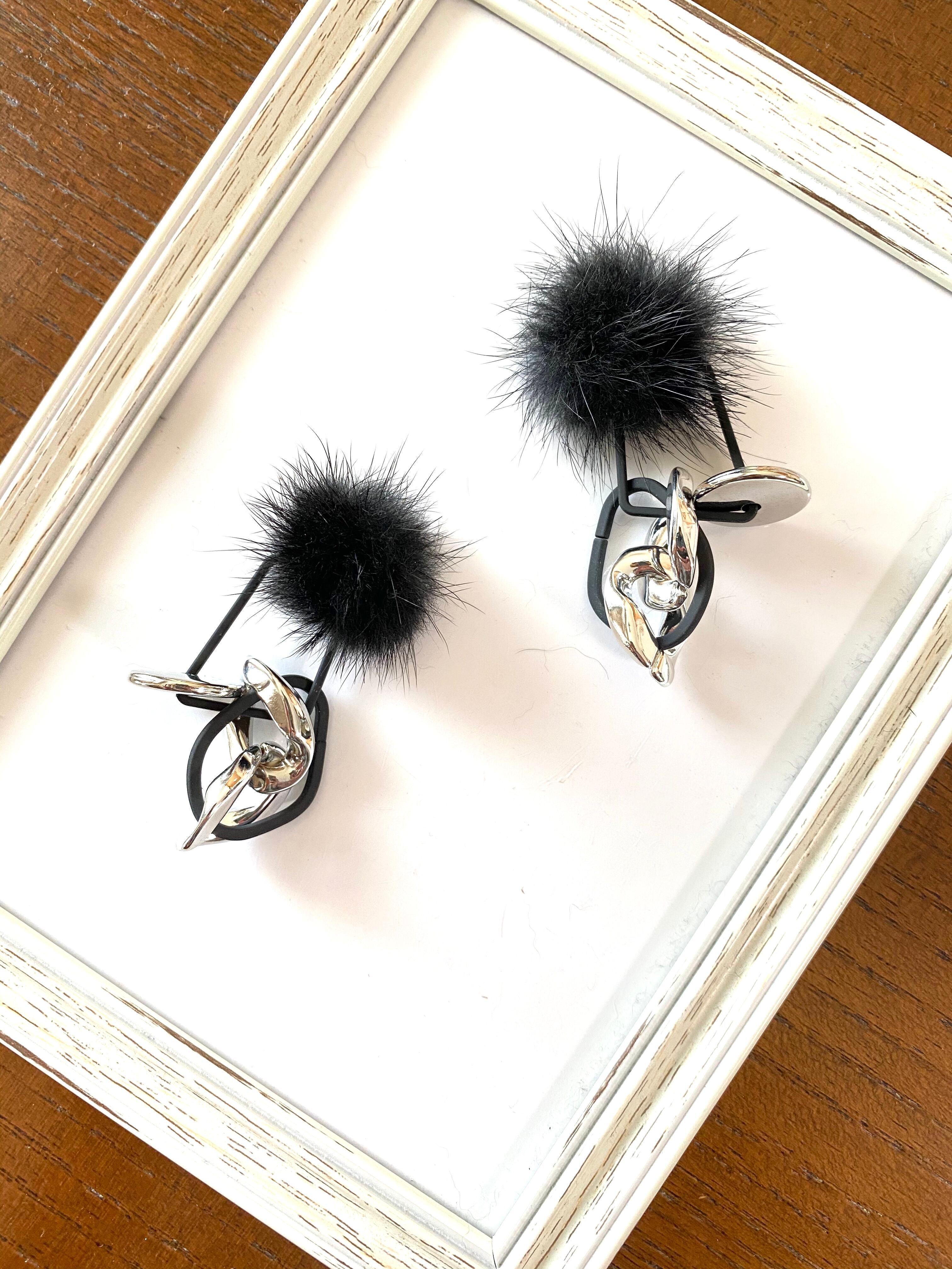 ふわふわで柔らかいファーとハードなパーツの組み合わせ。