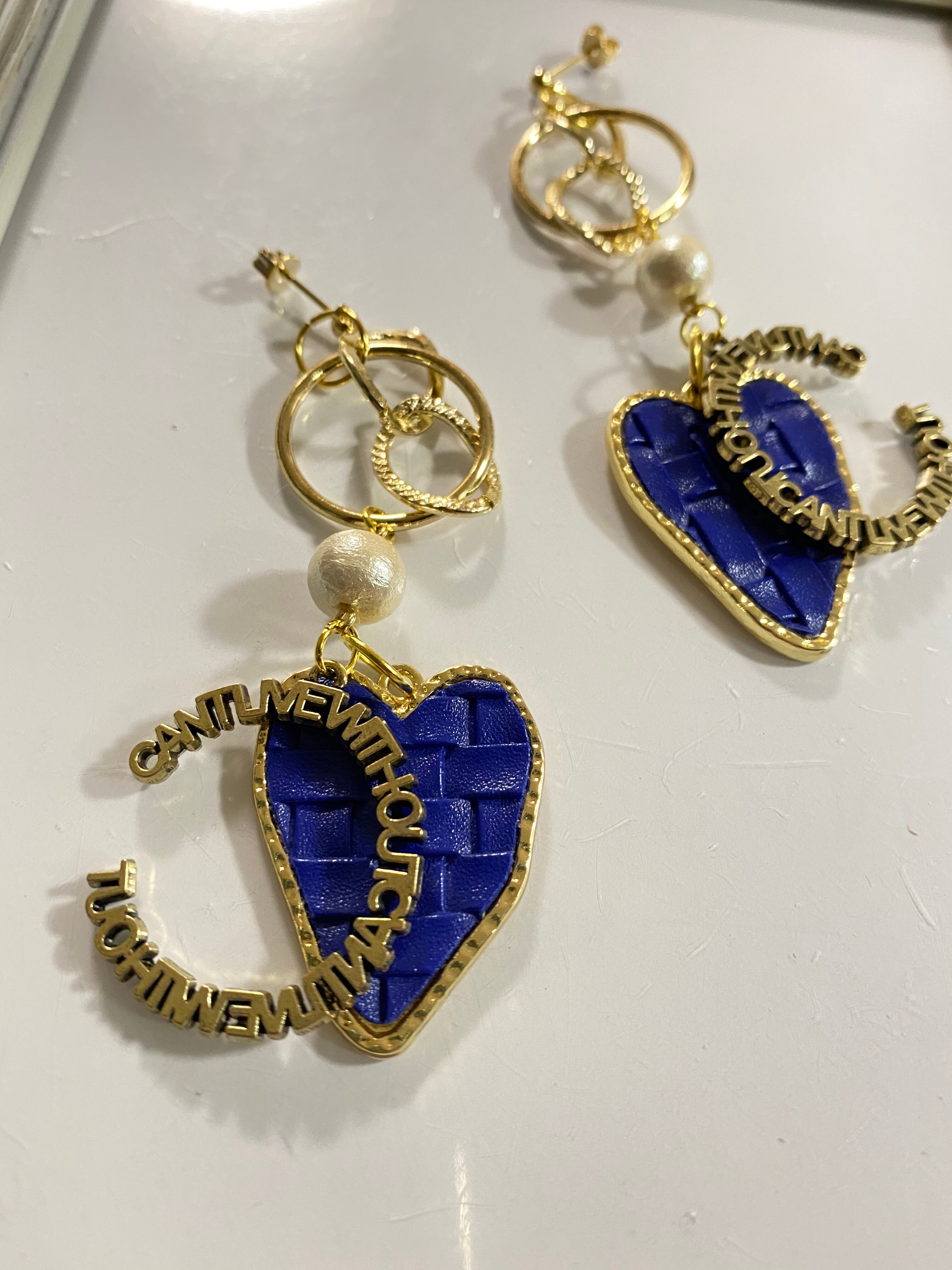 ブルーの大きなハートにアルファベットのサークルがかかりとてもおしゃれです(^^)