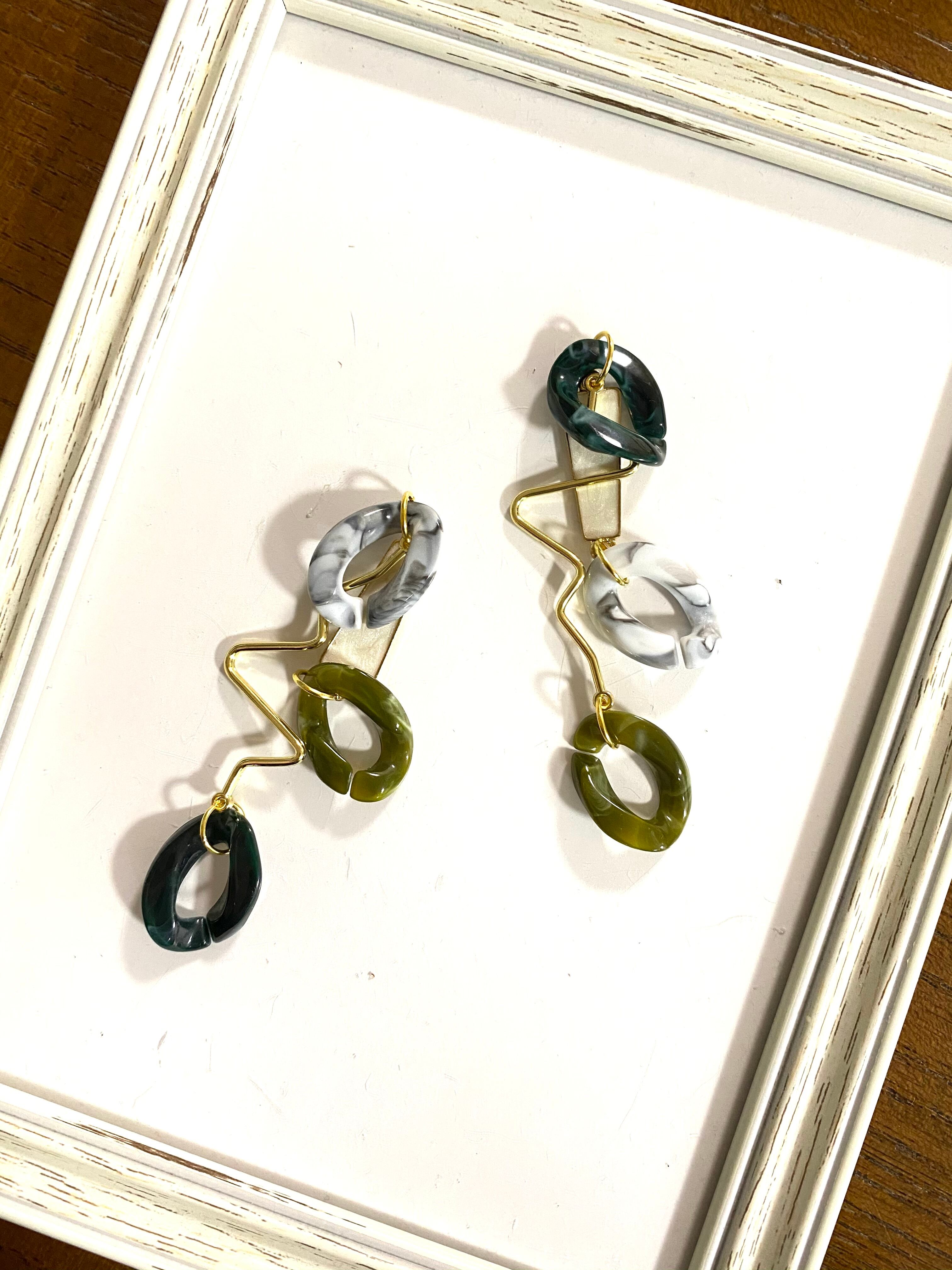 緑な鎖のアシメ【ピアスorイヤリング】