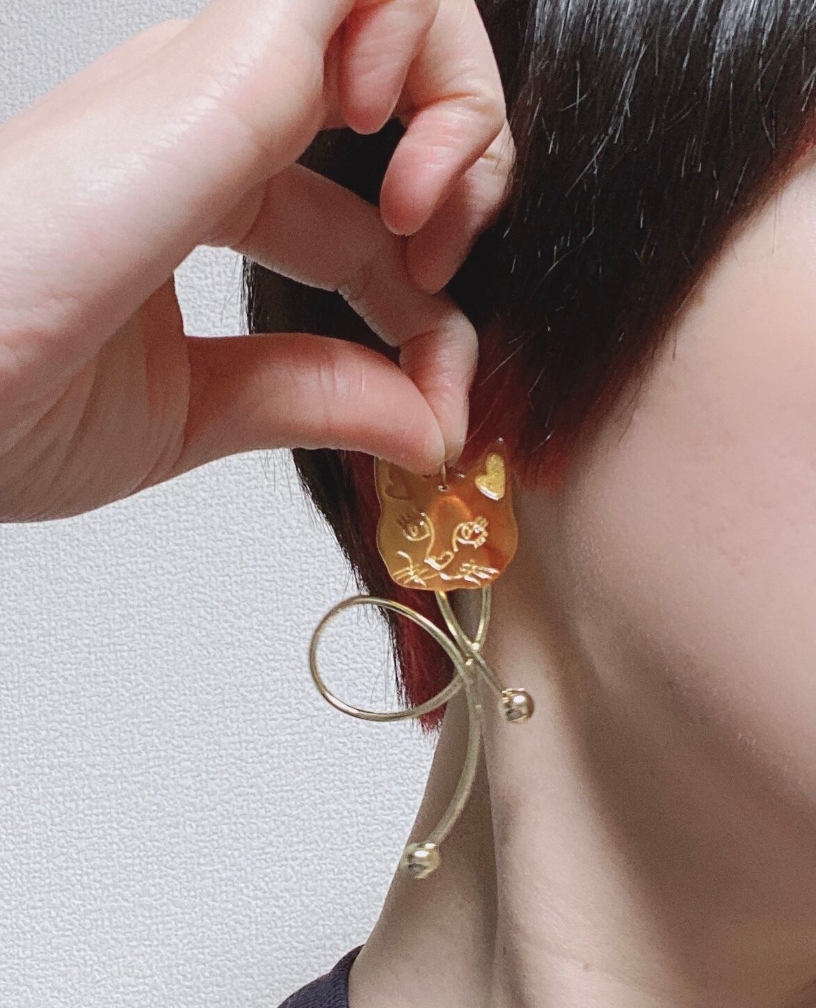 茶猫ちゃんとりぼん。【ピアスorイヤリング】